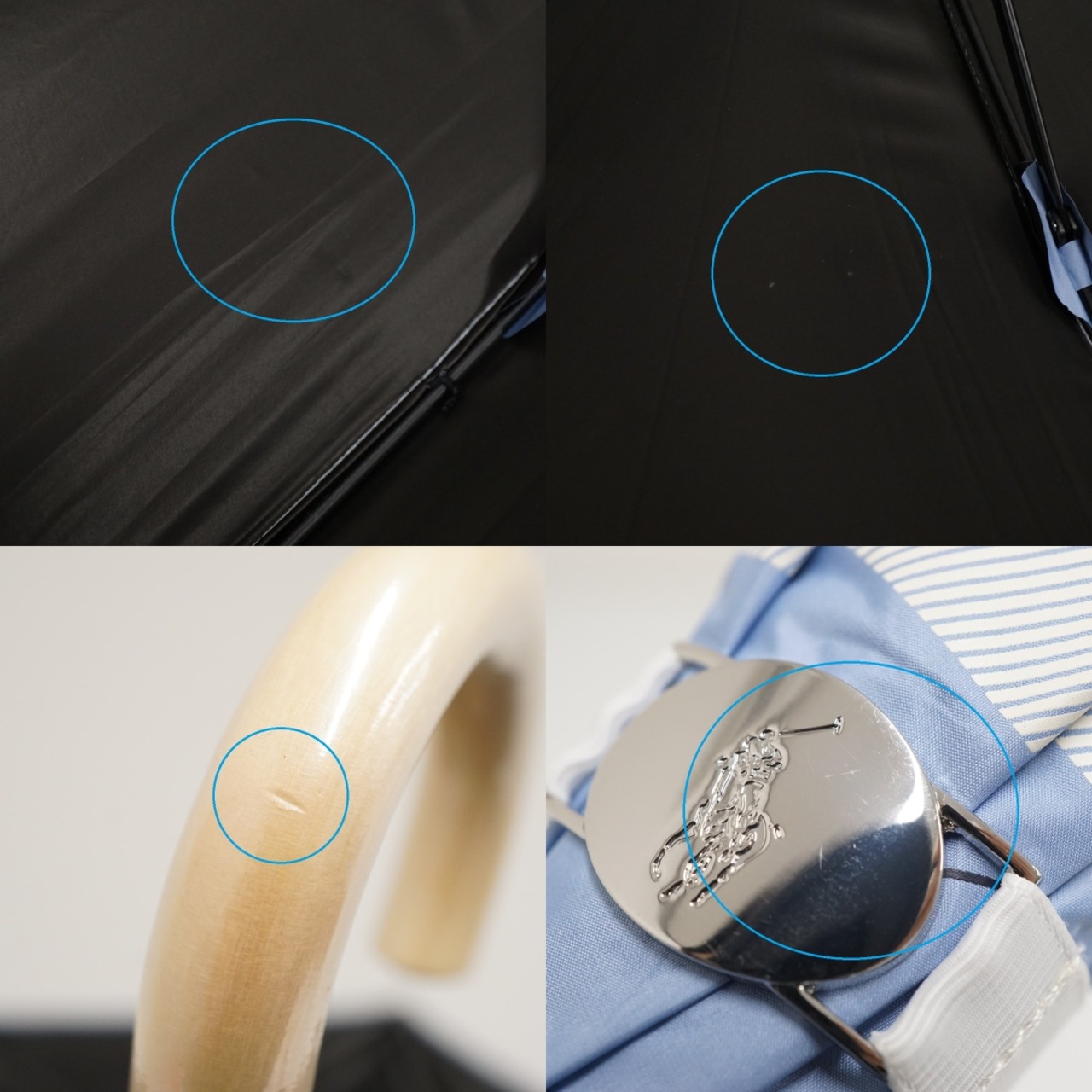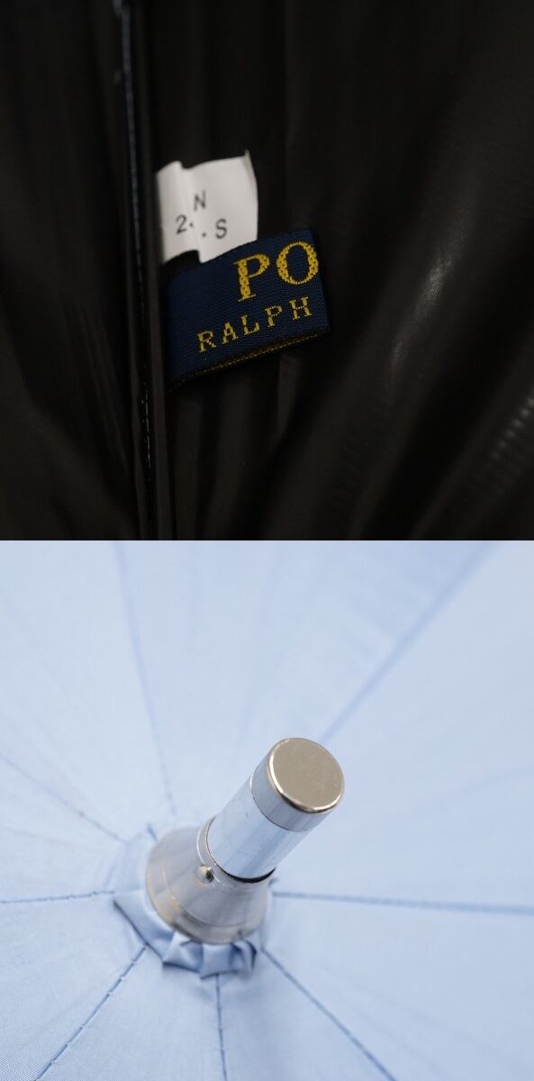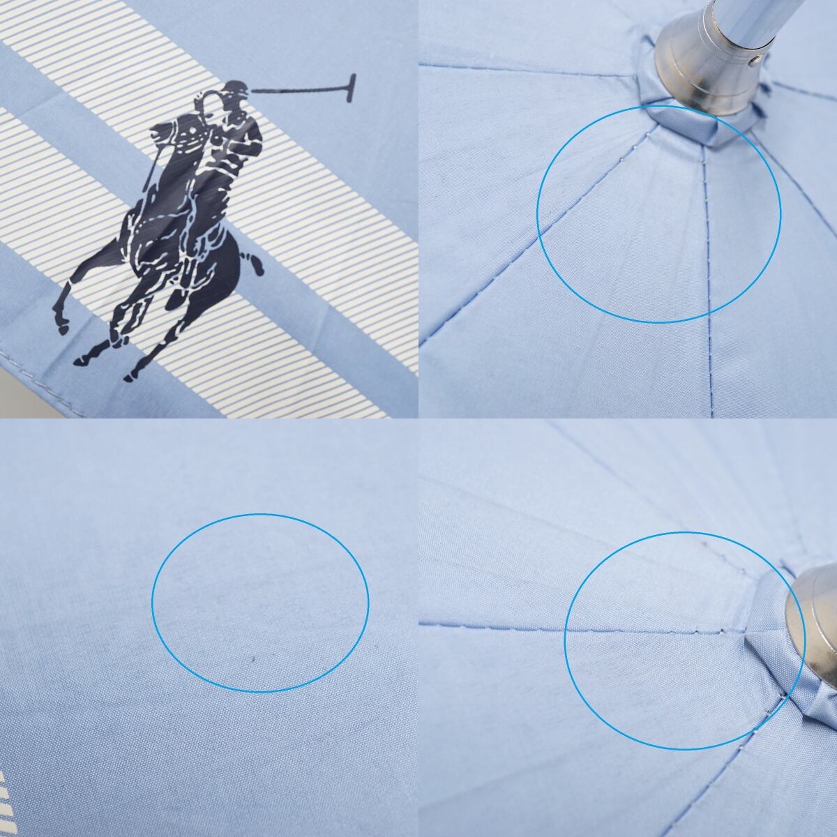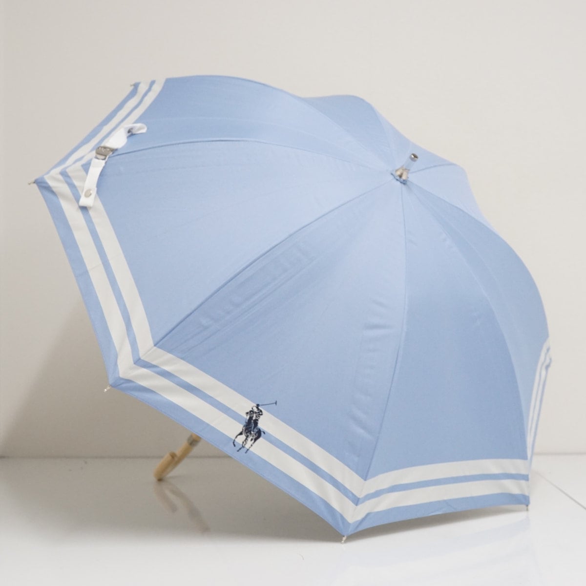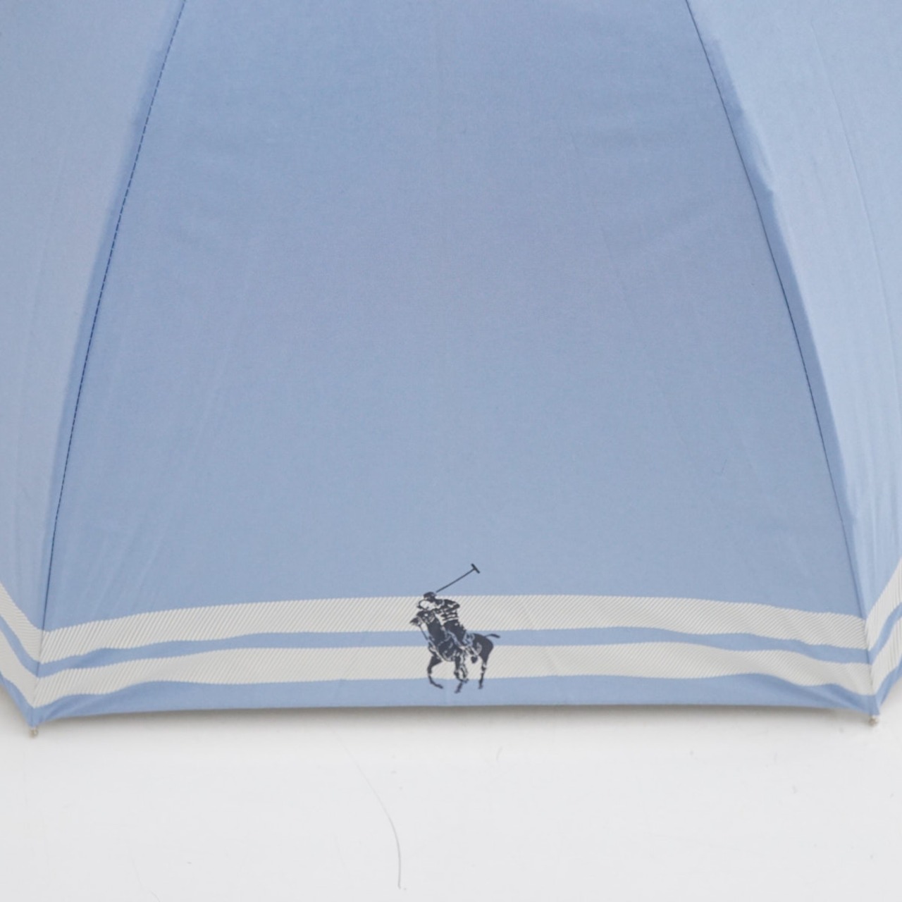 晴雨兼用日傘 POLO RALPH LAUREN ポロラルフローレン USED美品 ポロポニー ボーダー ブルー UV 遮光 47cm S3644