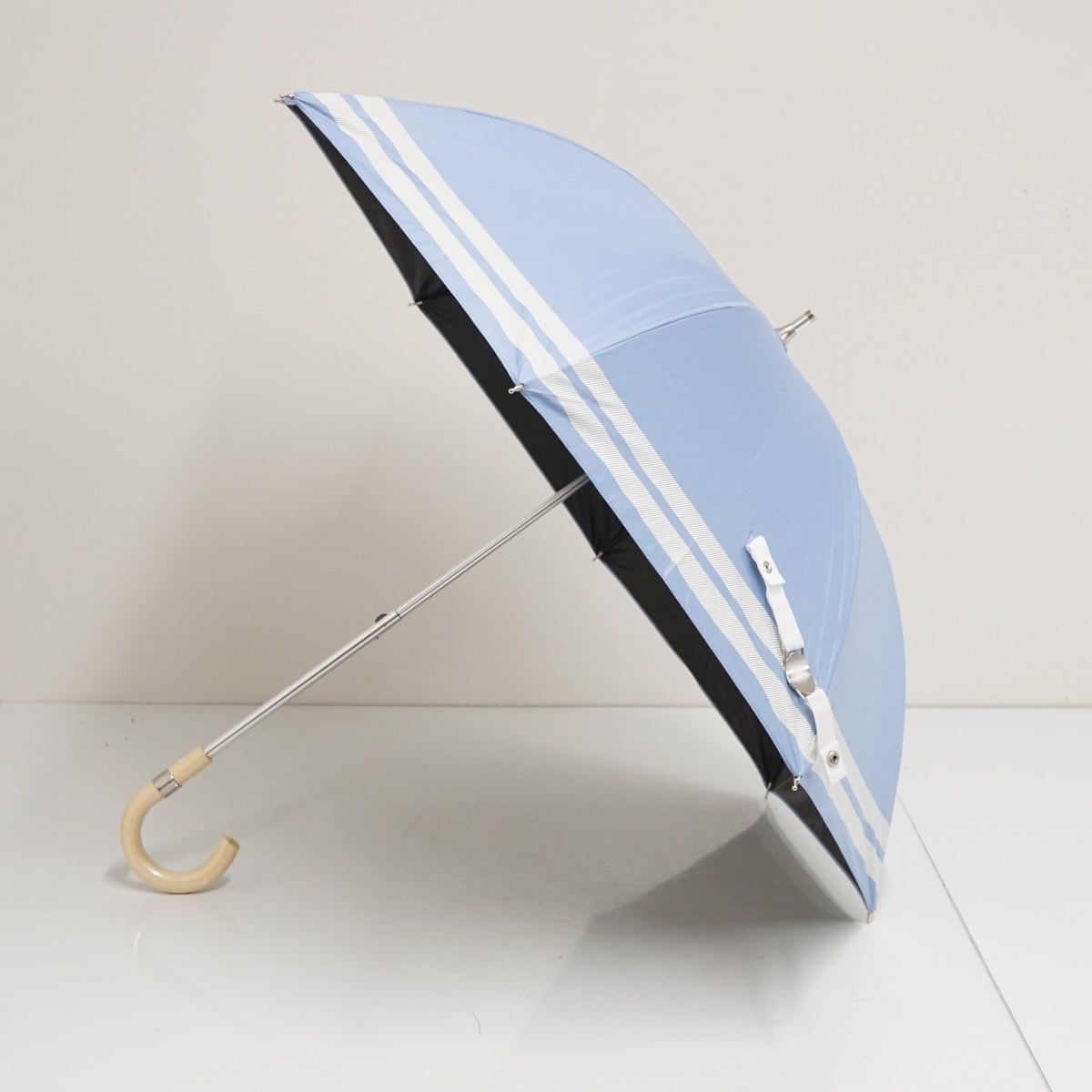 ブルーの生地にボーダーラインをデザインしたシンプルでおしゃれな晴雨兼用日傘です。