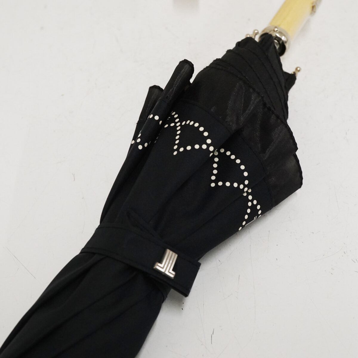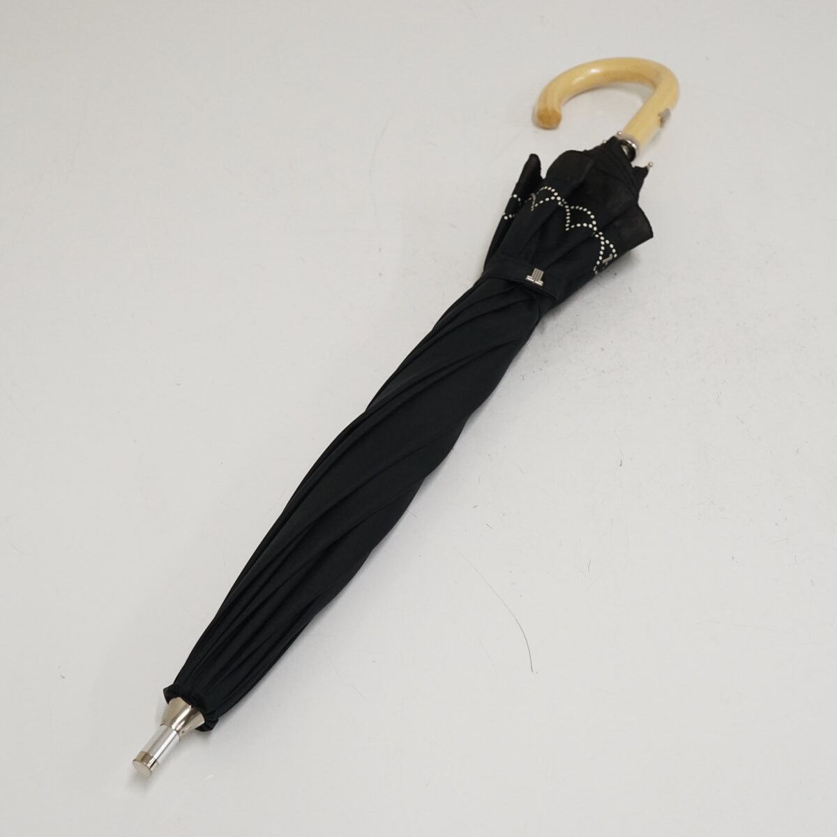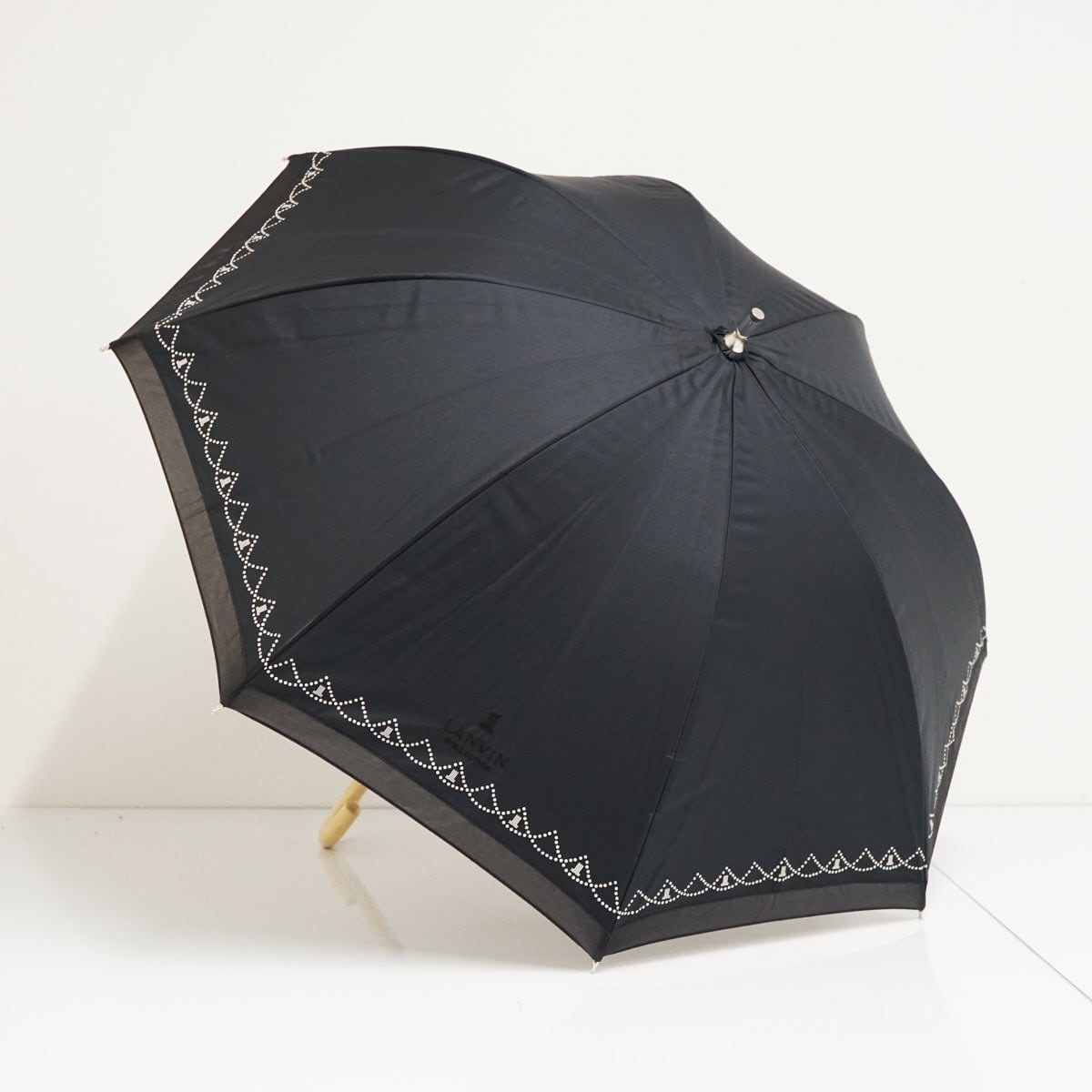 晴雨兼用日傘 LANVIN COLLECTION ランバンコレクション USED美品 ブランドロゴ ブラック 木製手元 ブラック 47cm S3646