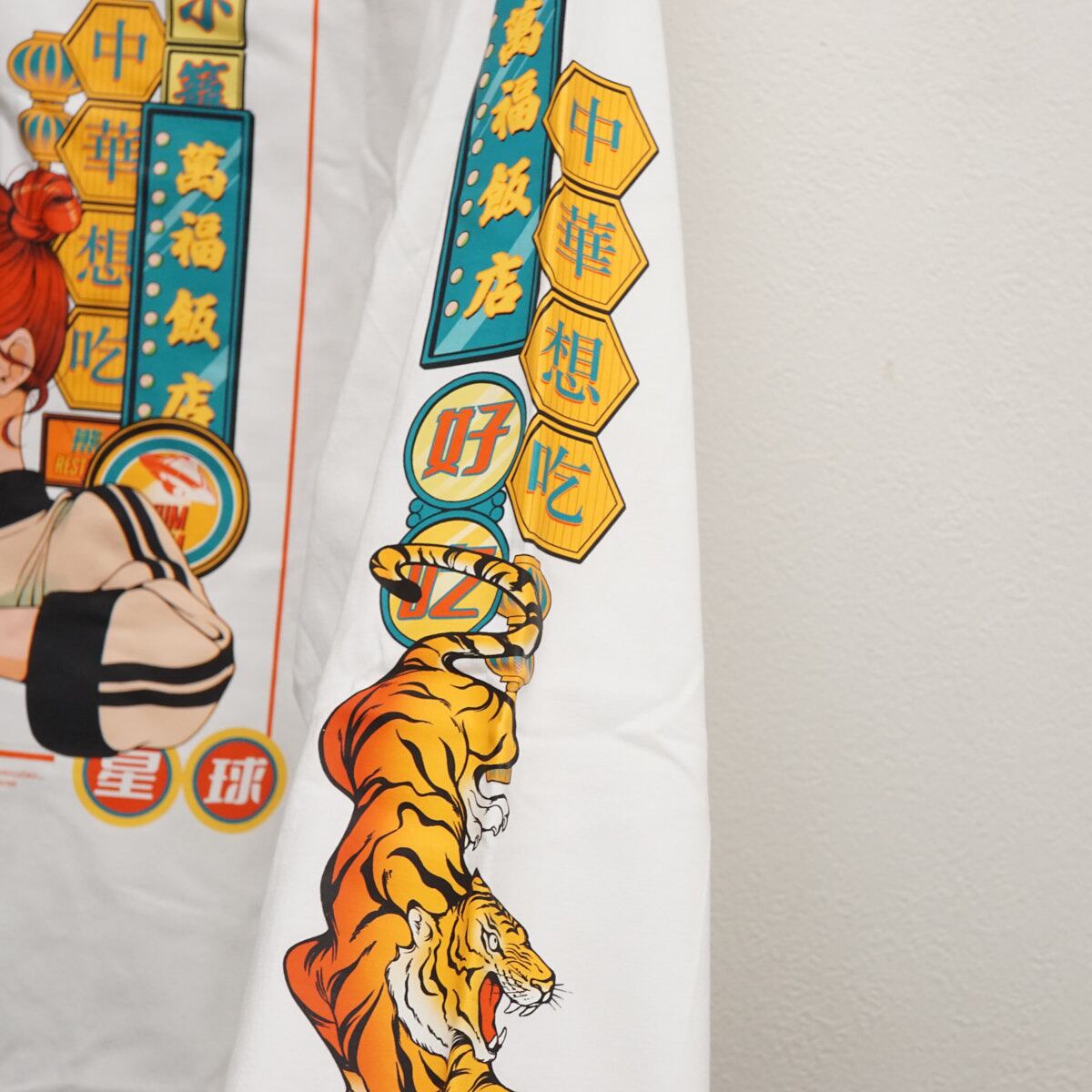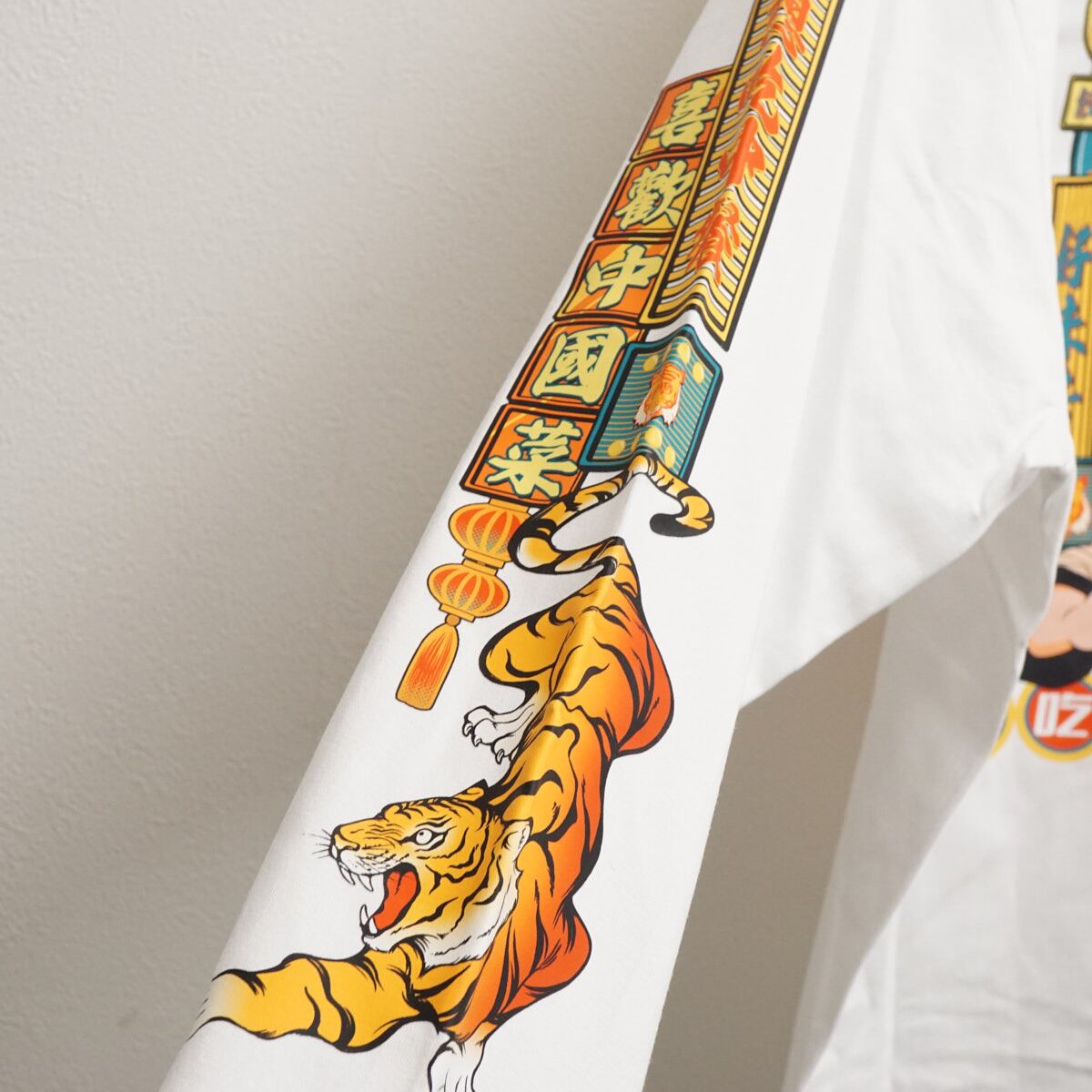 両袖にも虎や漢字モチーフを並べ、どの角度から見てもインパクト抜群の一着です!