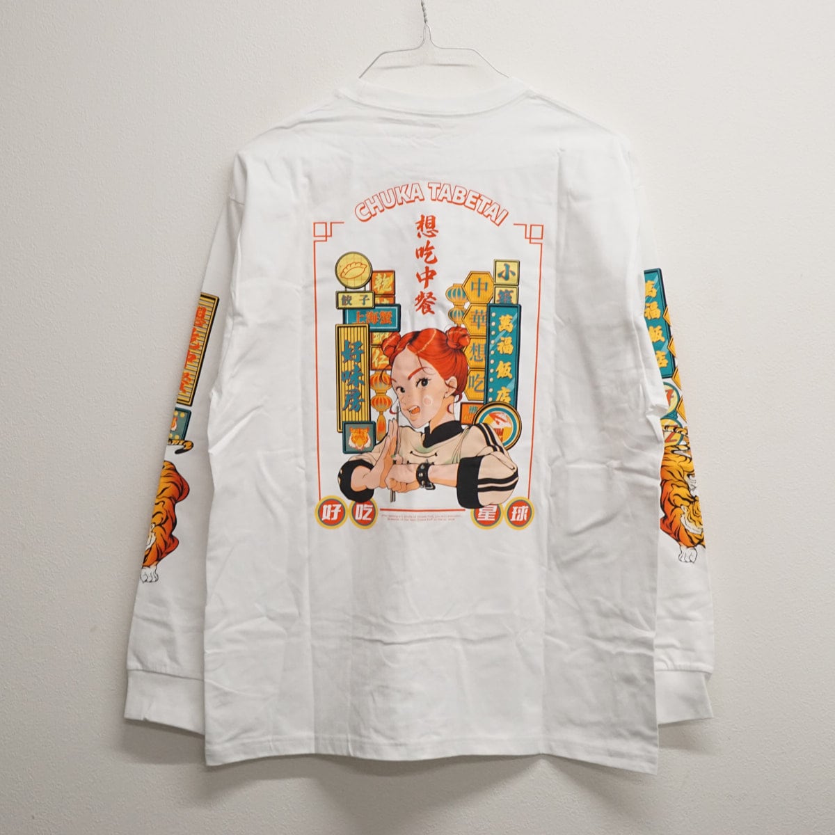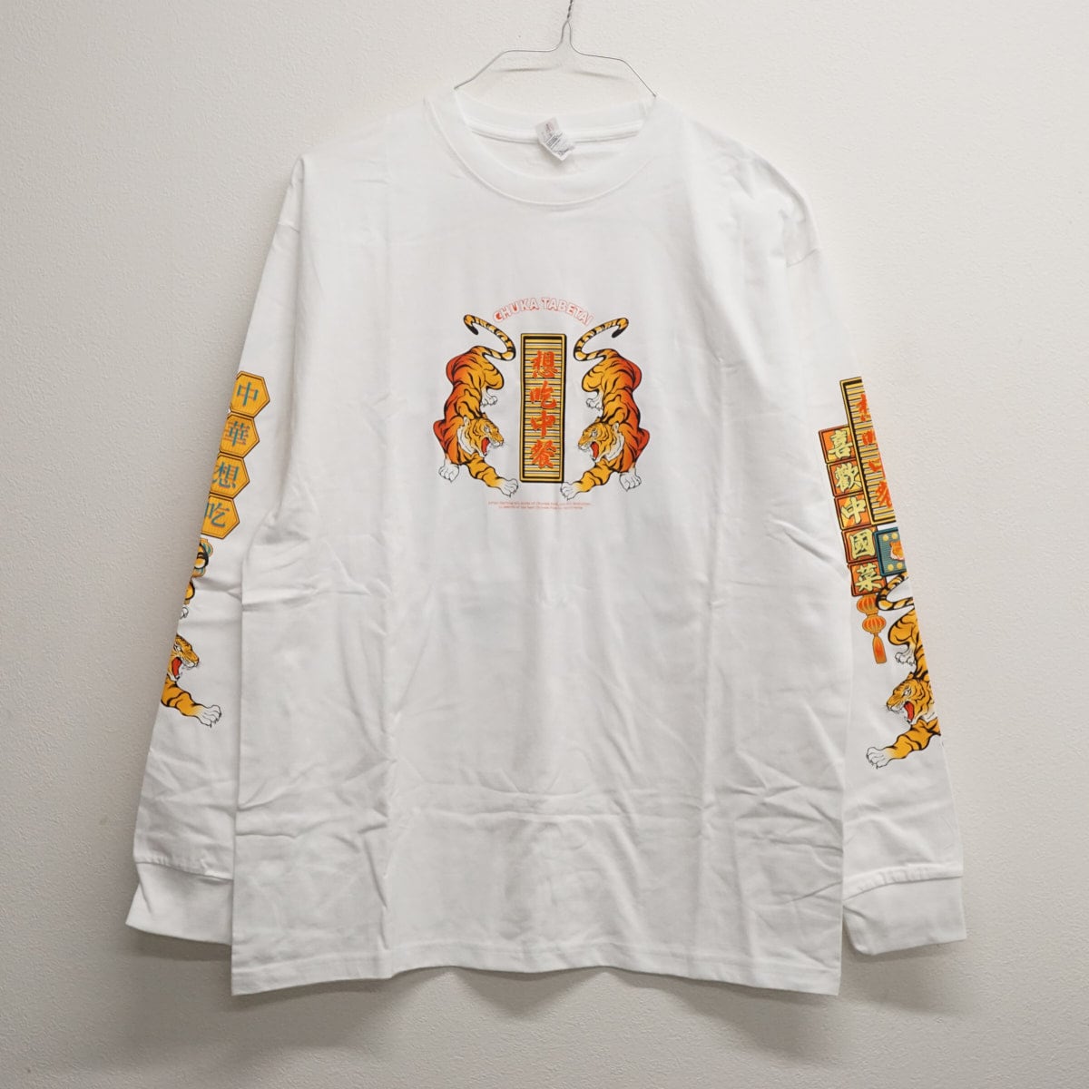 【新品】maniko×チュウカタベタイ 限定デザイン レトロポップ 想吃中餐 ホワイト 長袖Tシャツ 男女兼用 XLサイズ X9524
