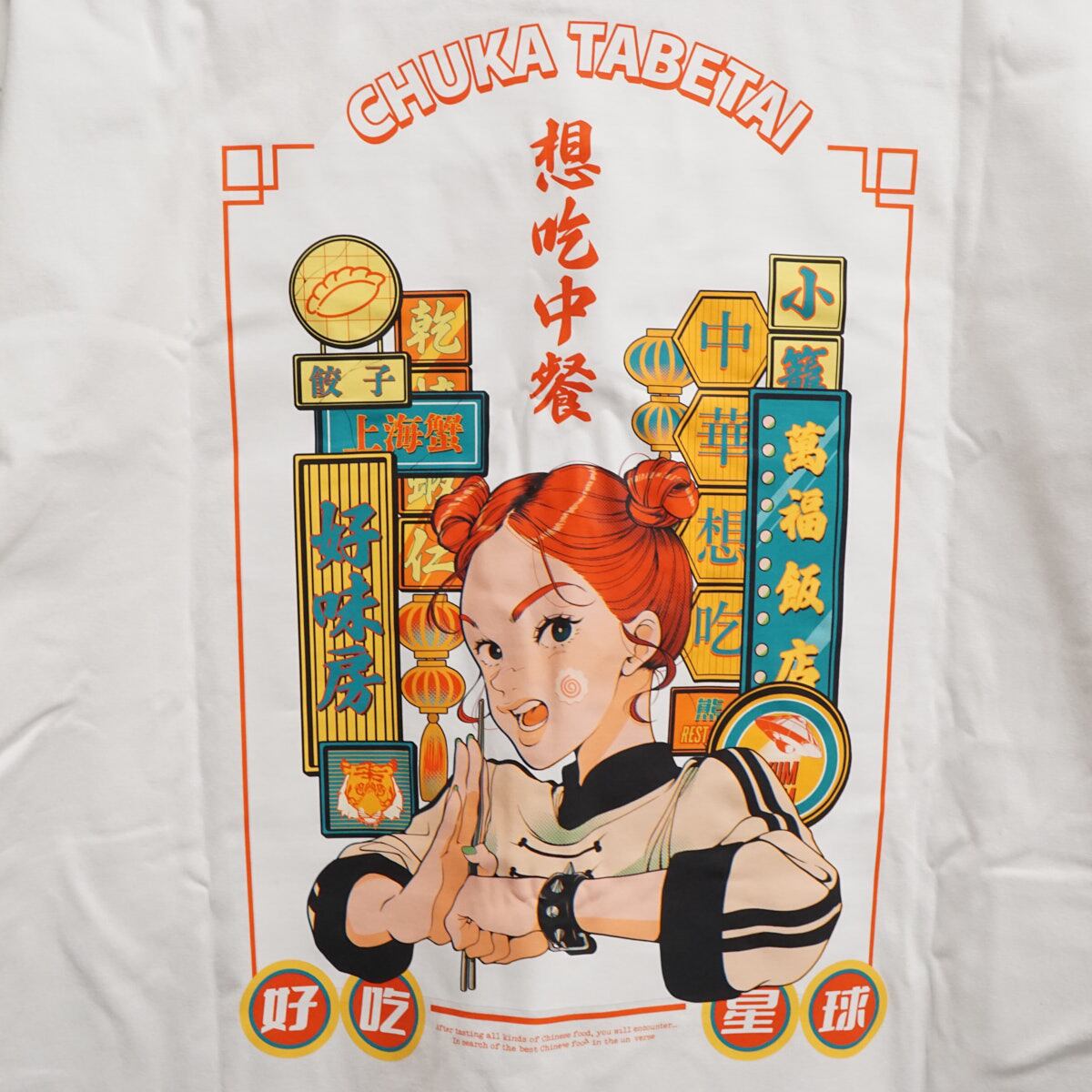 背面には「中華街」をテーマに、チャイナ服の女の子と様々なネオン看板が並んでいる「チュウカタベタイ」らしさ満載のイラスト。