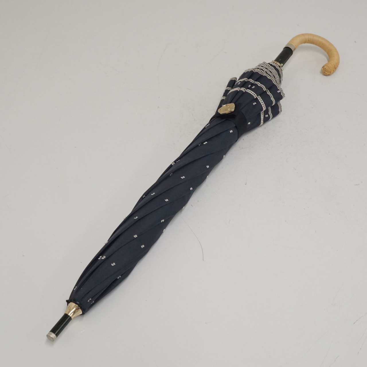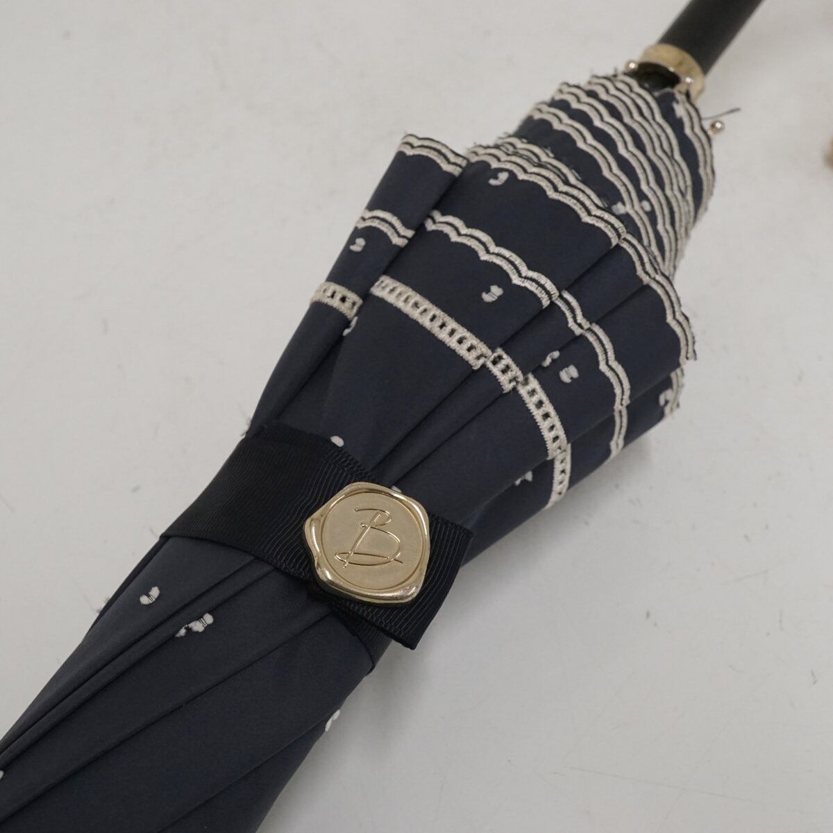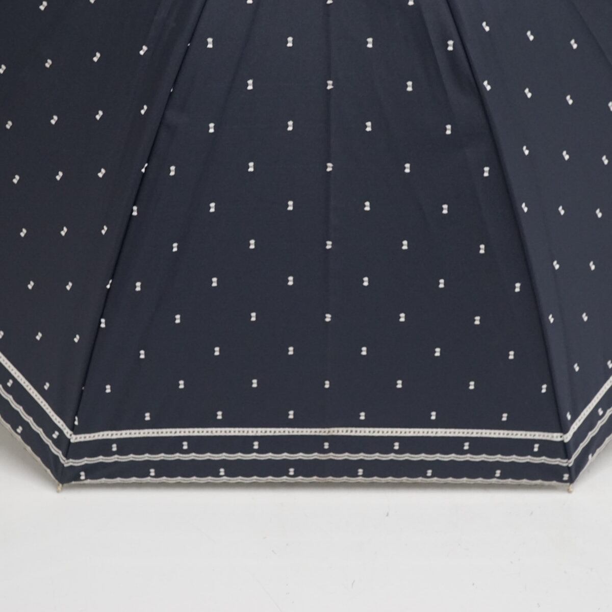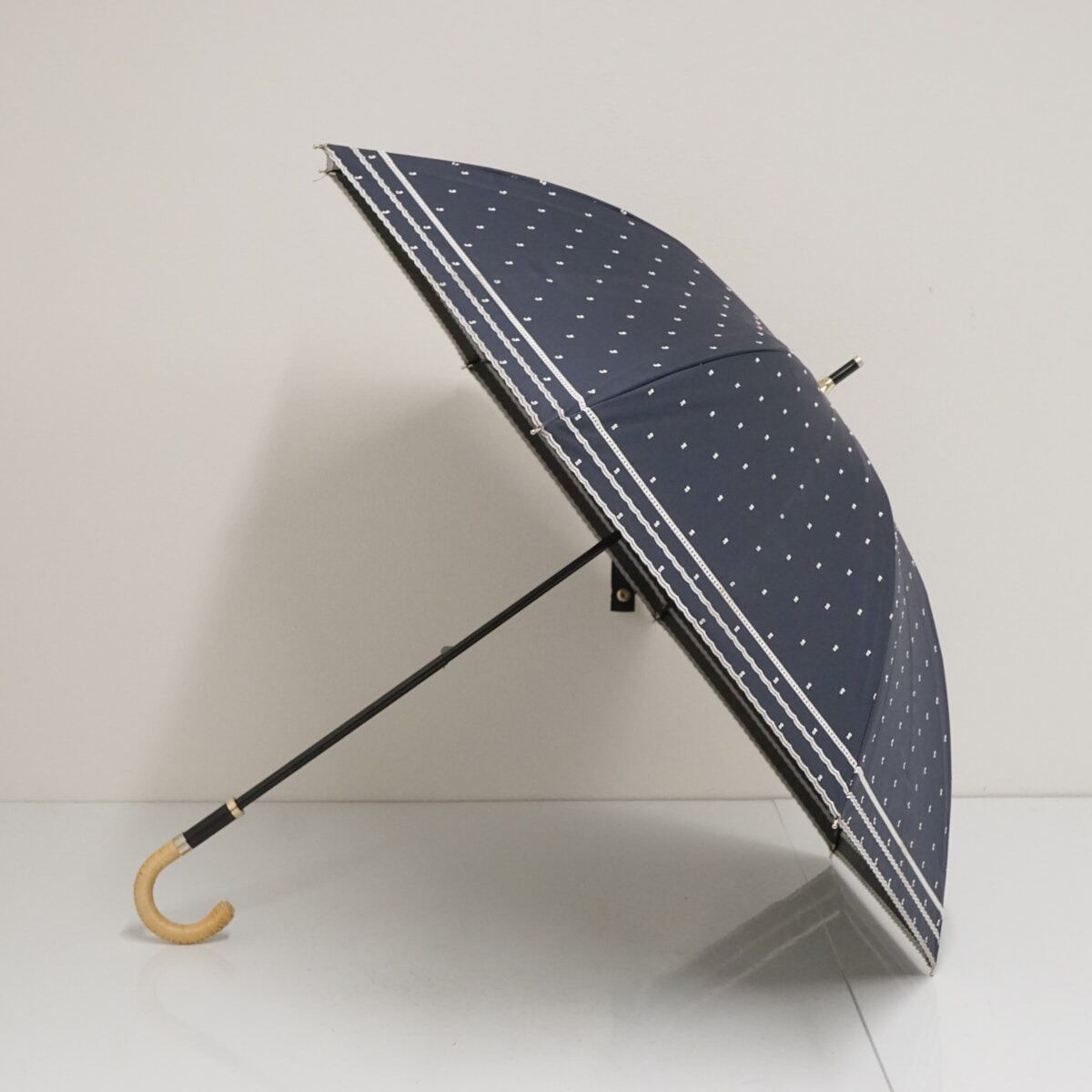 日傘 Beaurance ビューランス USED品 晴雨兼用 UV 遮光 遮熱 ドット ダークネイビー 籐手元 50cm S3657