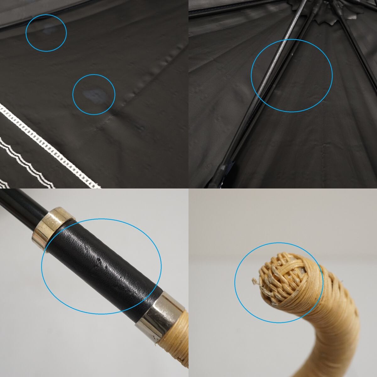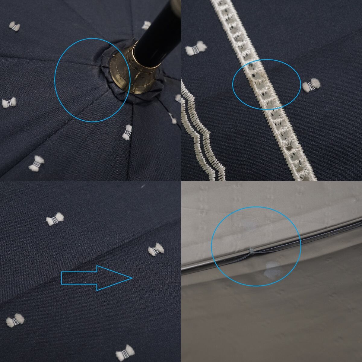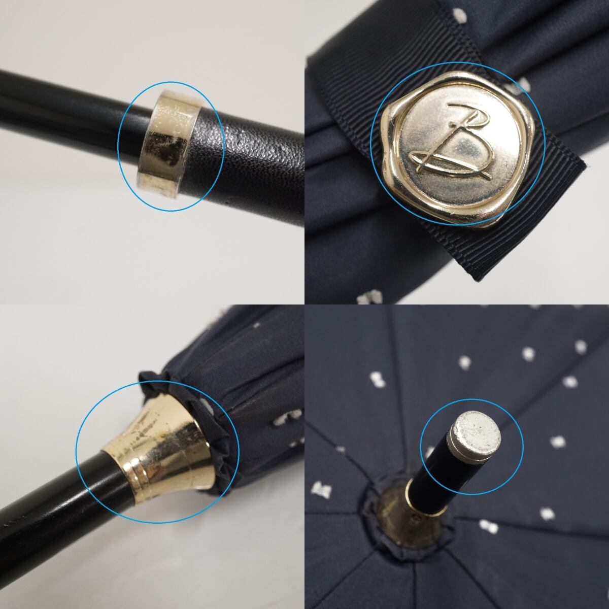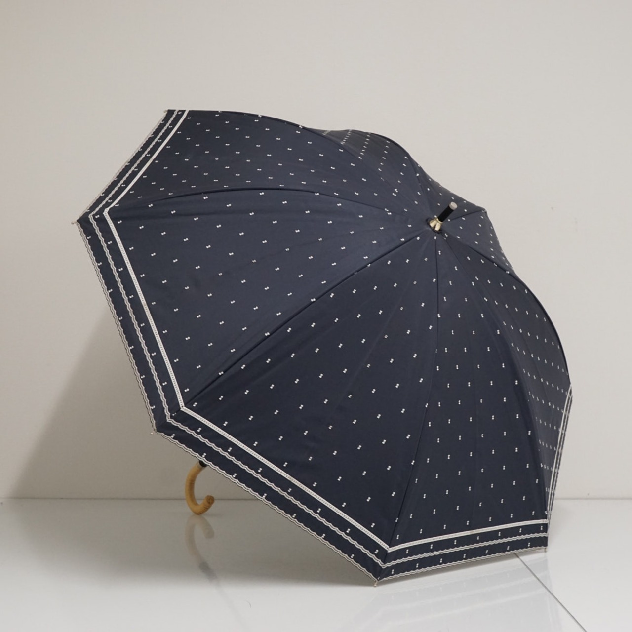 日傘 Beaurance ビューランス USED品 晴雨兼用 UV 遮光 遮熱 ドット ダークネイビー 籐手元 50cm S3657
