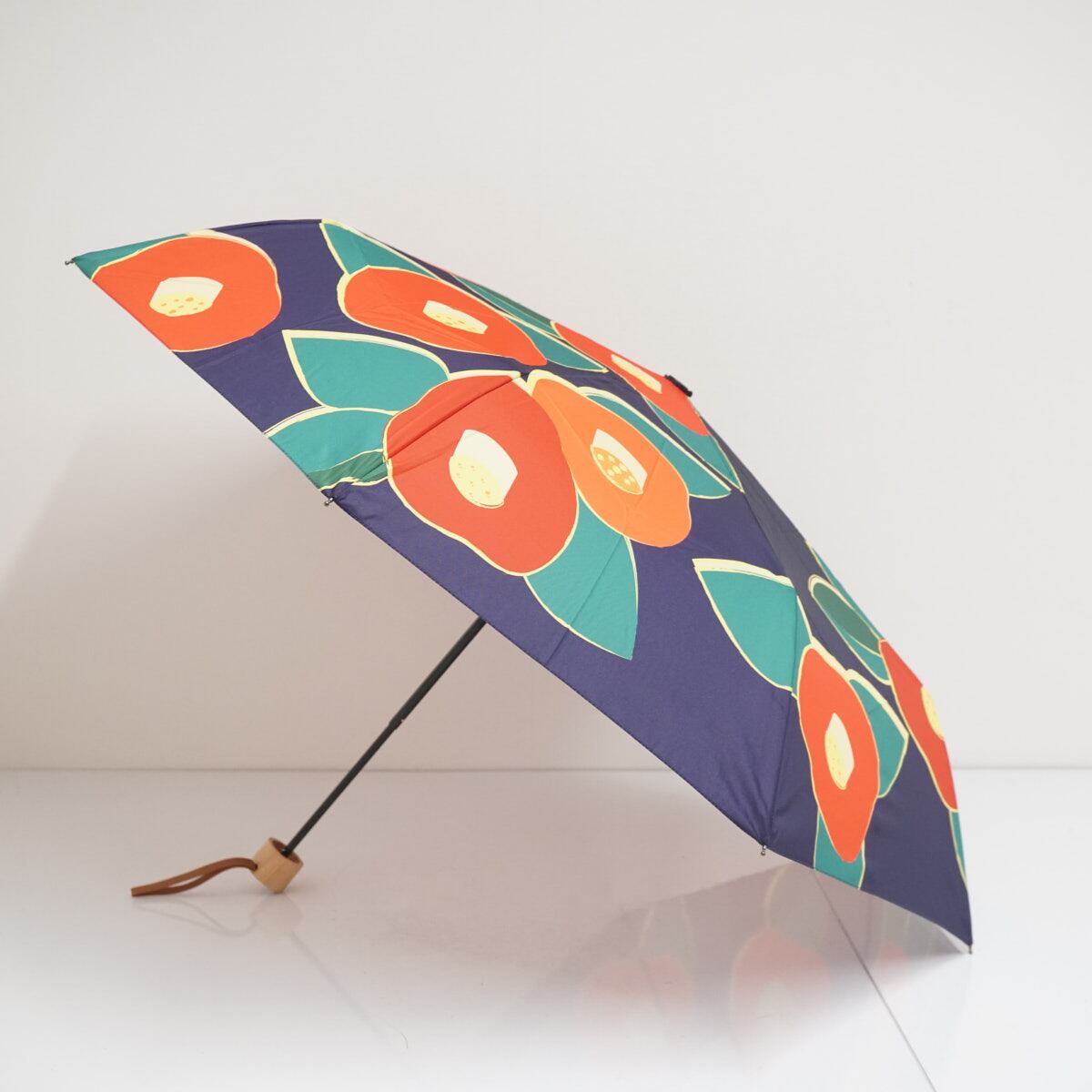 折りたたみ傘 HOKUSAI GRAPHIC 北斎グラフィック USED美品 三つ折り畳み傘 晴雨兼用 TSUBAKI ツバキ 紺青 55cm FA9255