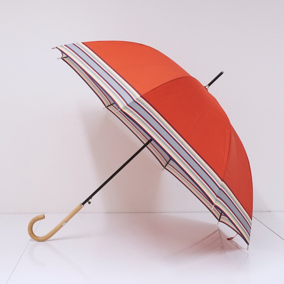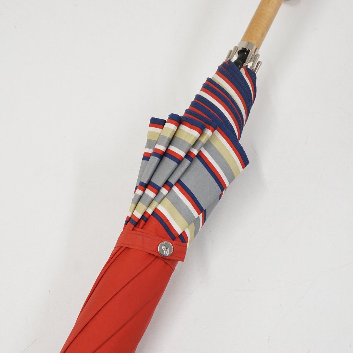 傘 Polo Ralph Lauren ポロラルフローレン USED美品 レッド レディース ボーダー ポロマーク 木製手元 60cm S3691