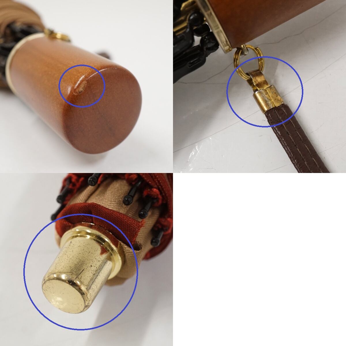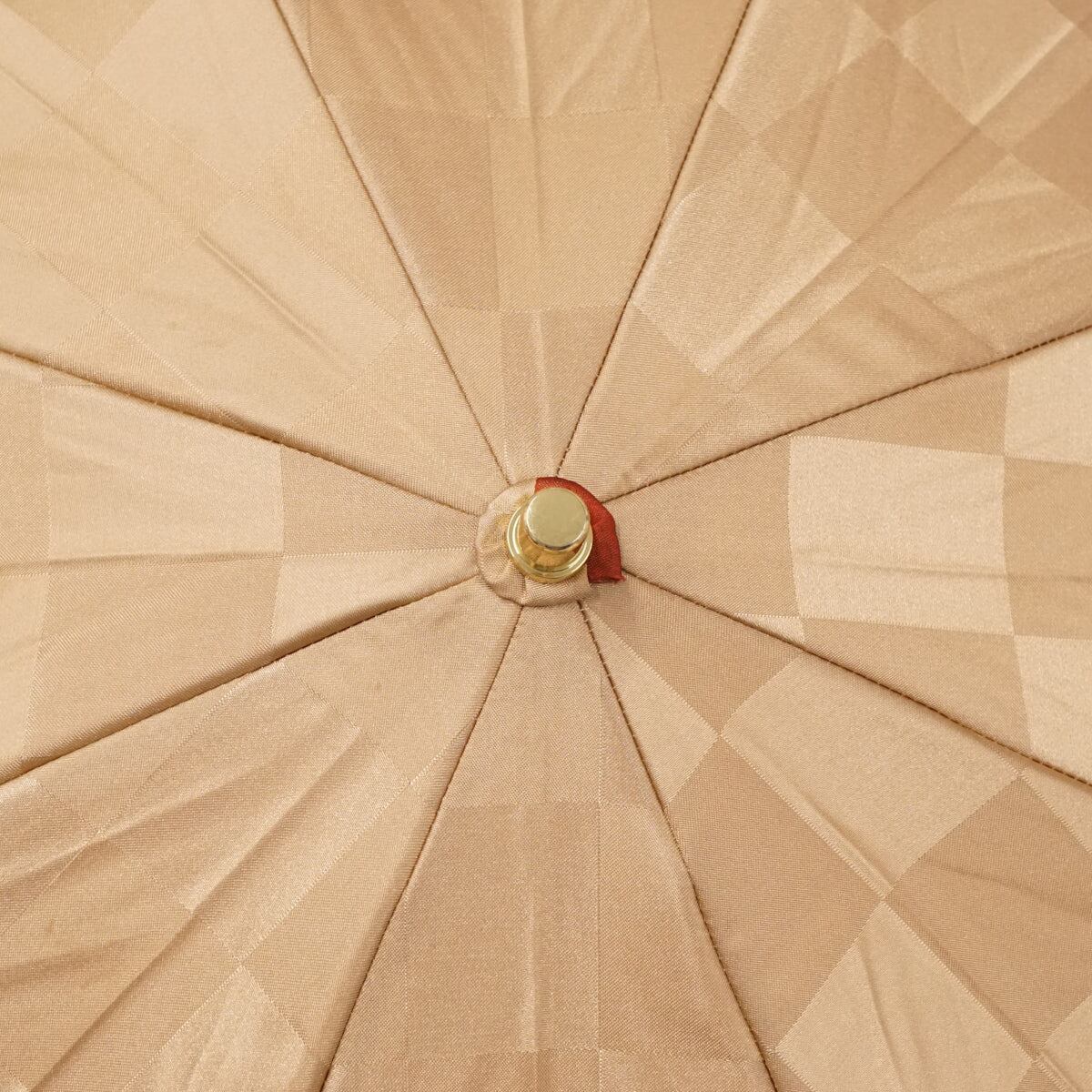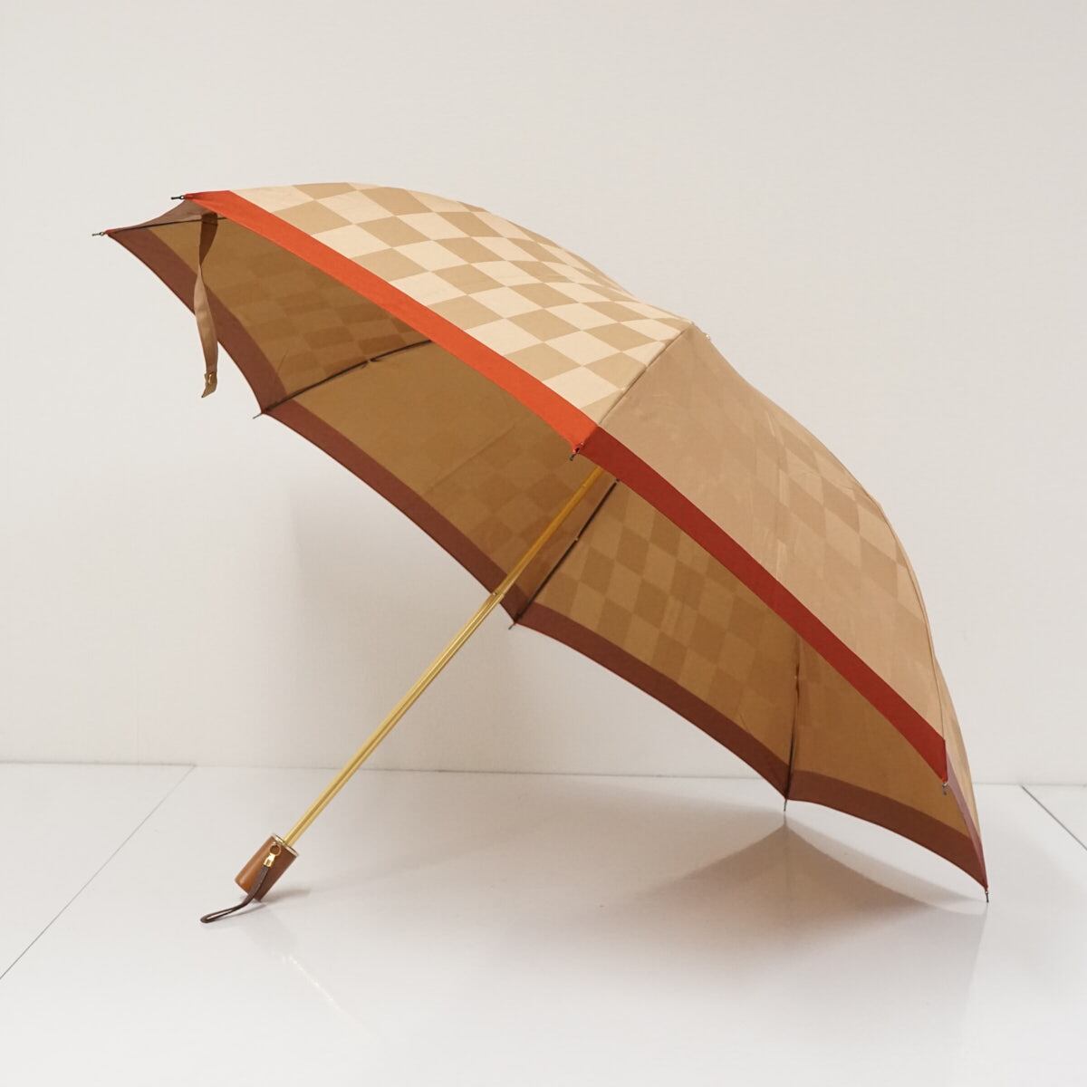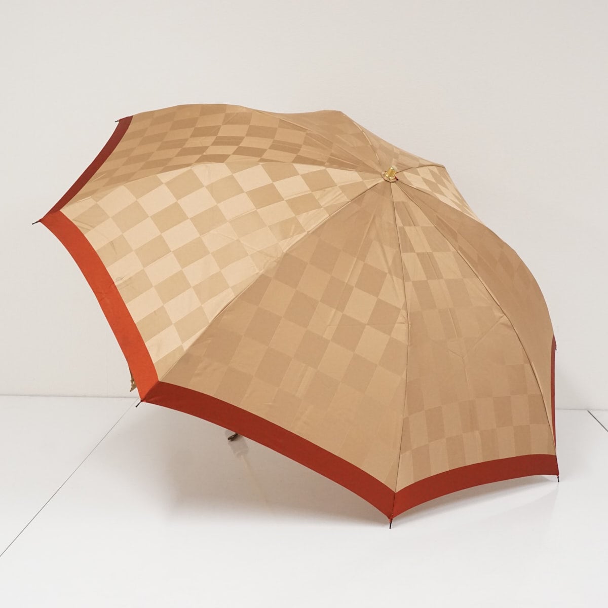 折りたたみ傘 GRACITO グラシト USED品 甲州織 ジャガード 市松模様 木製手元 ベージュ レッド 55cm FA9516