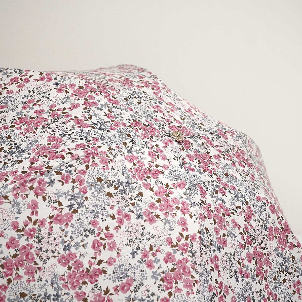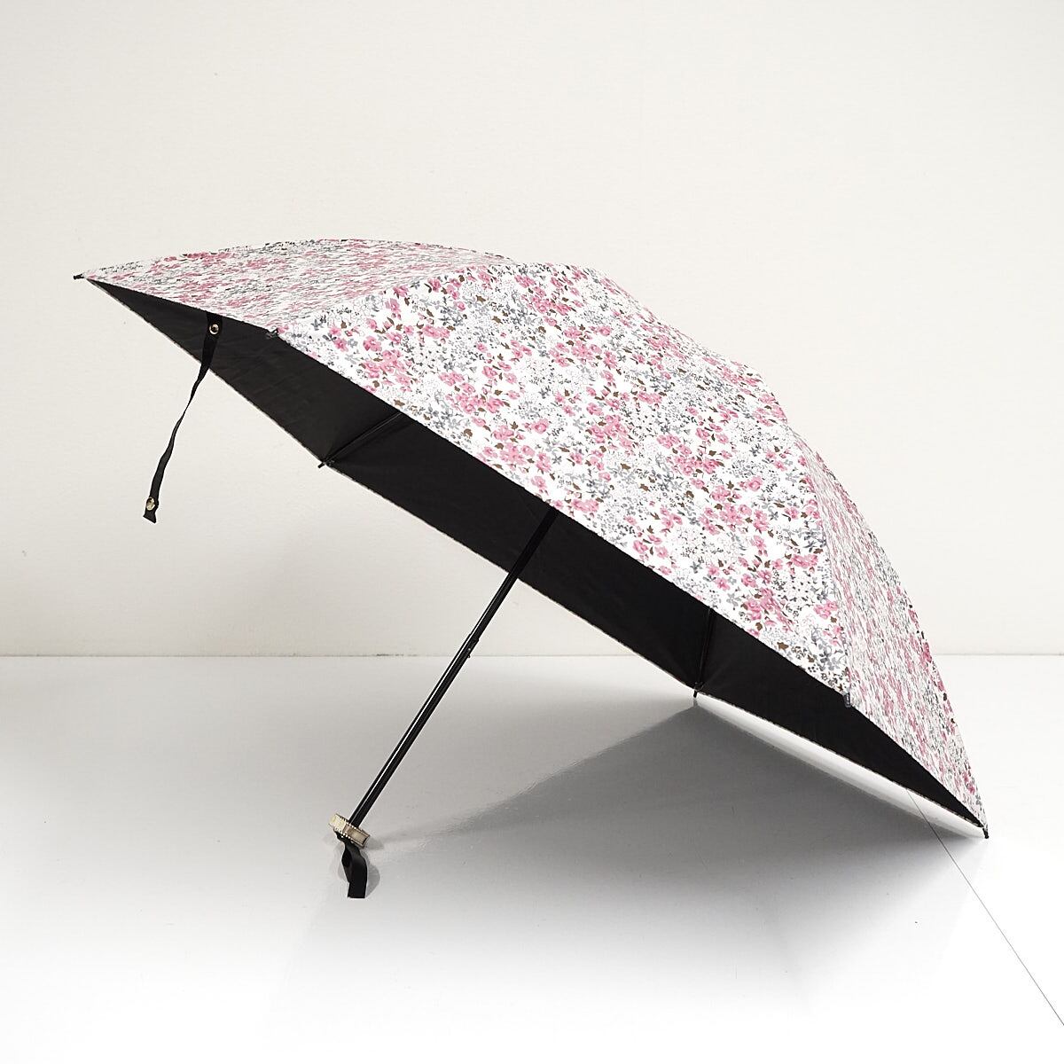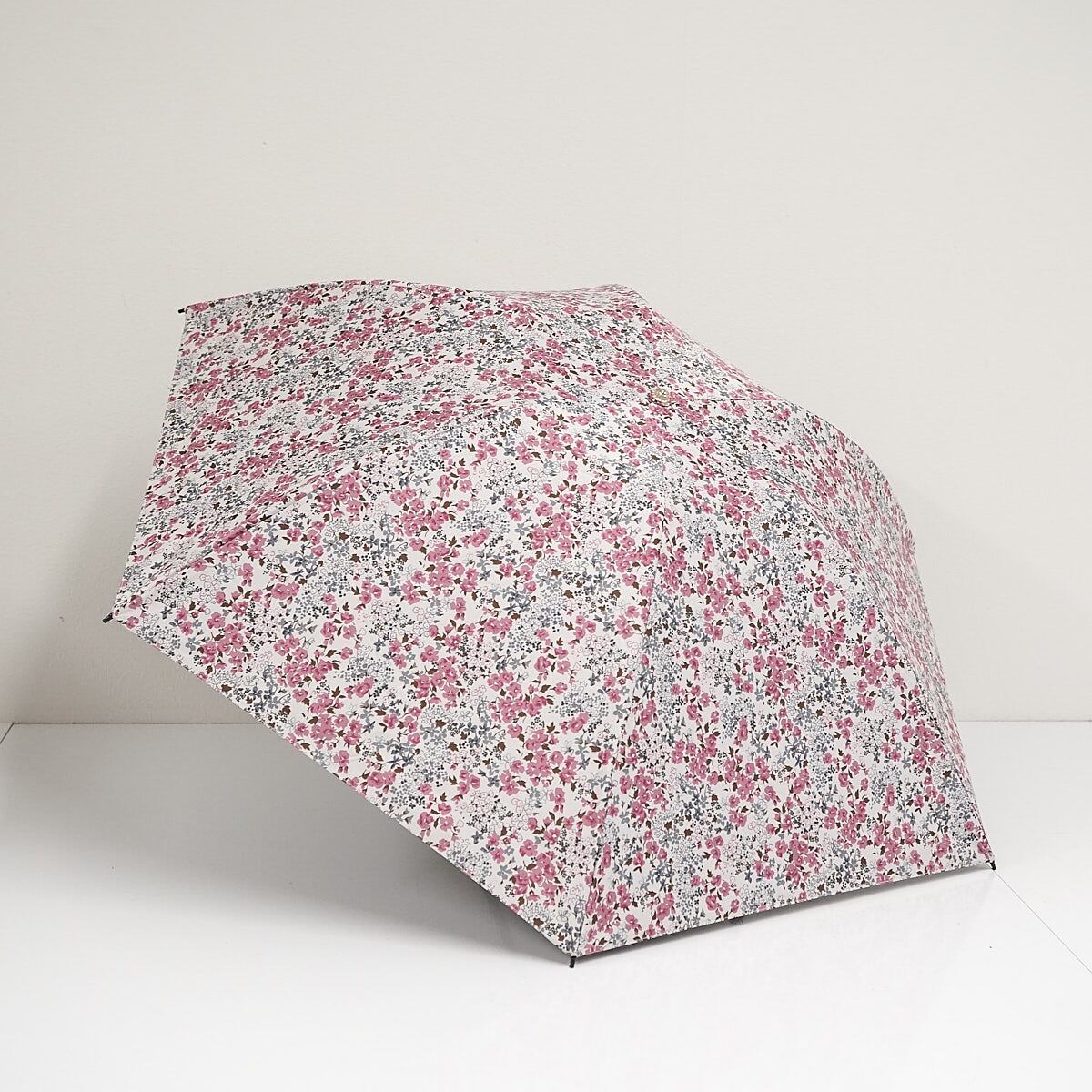 鮮やかな小花柄が目を引く、軽量でコンパクトな折りたたみパラソルです。