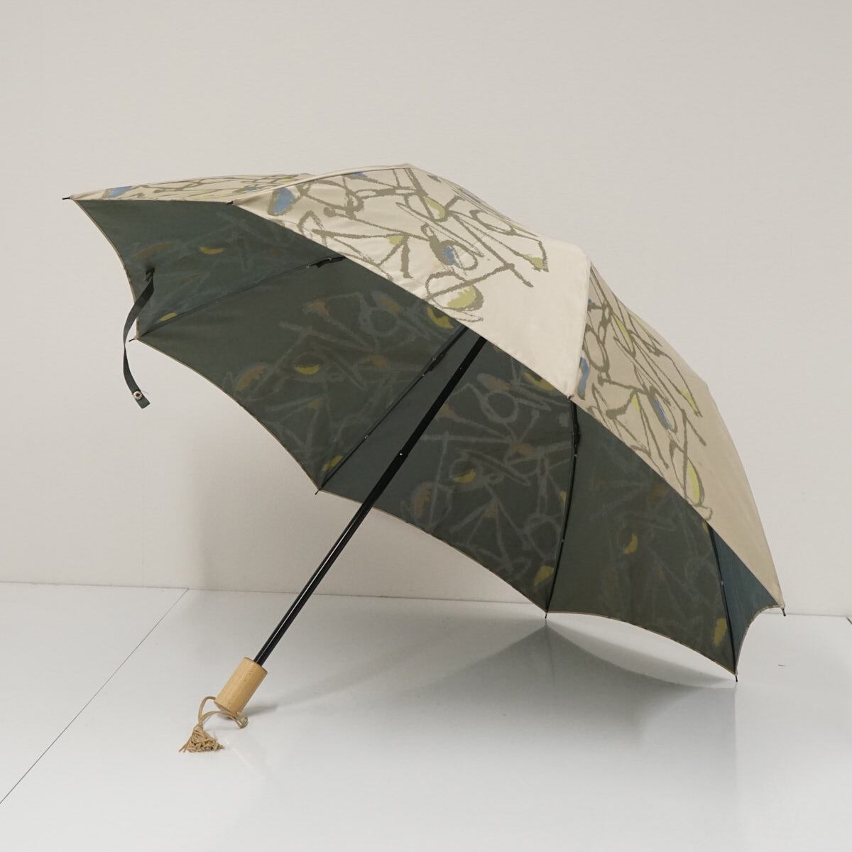 伝統技法“ほぐし織”の繊細なかすれを多色で表現し、北欧×和の世界観を楽しめる折りたたみの晴雨兼用傘です。