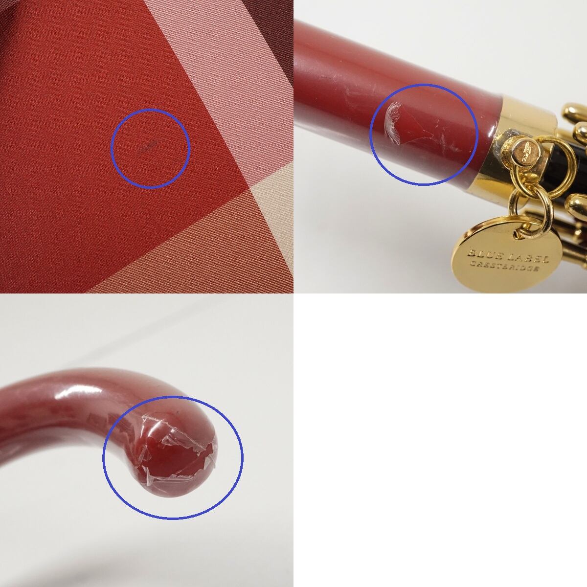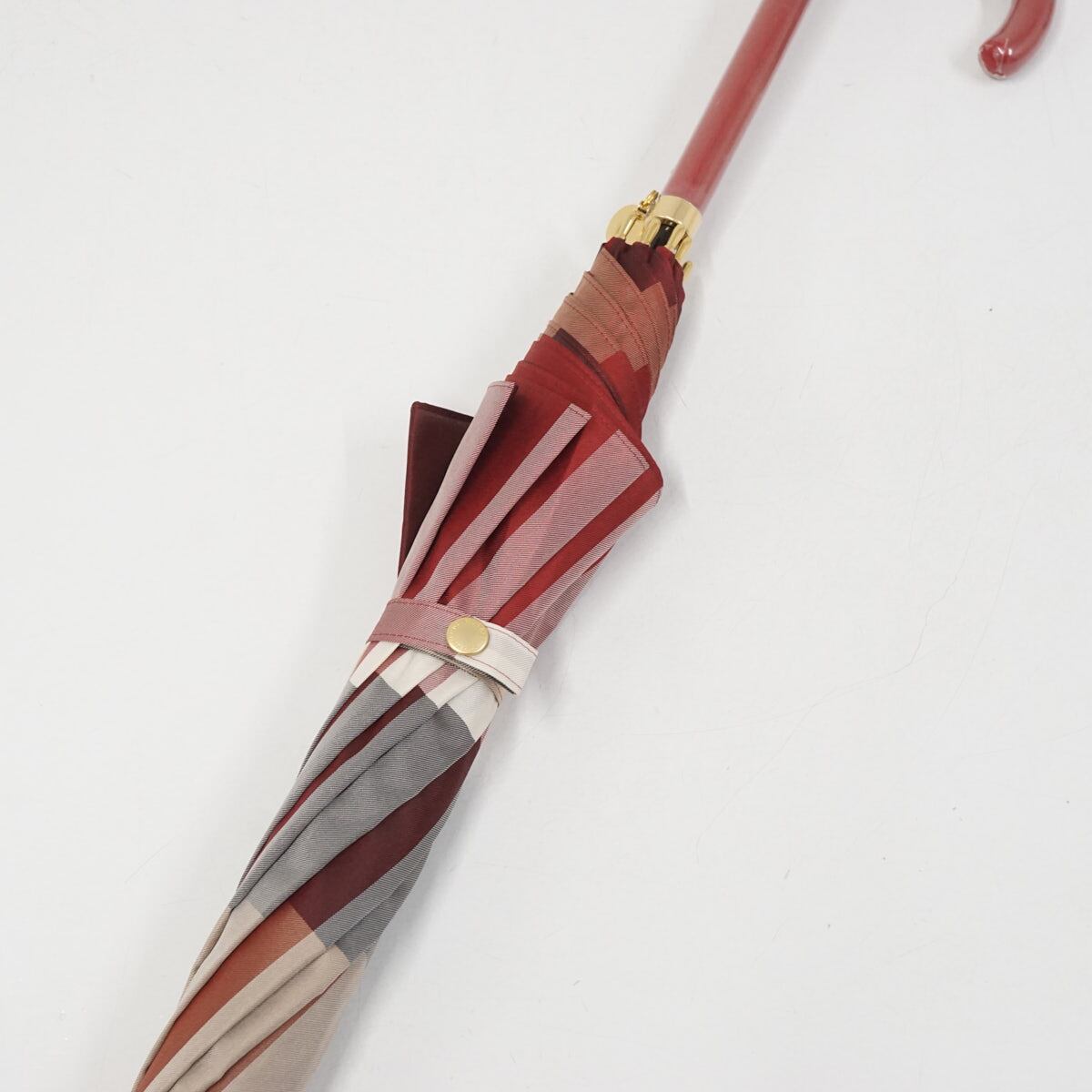 傘 BLUE LABEL CRESTBRIDGE ブルーレーベル クレストブリッジ USED美品 レッド チェック グラス骨 60cm S3715
