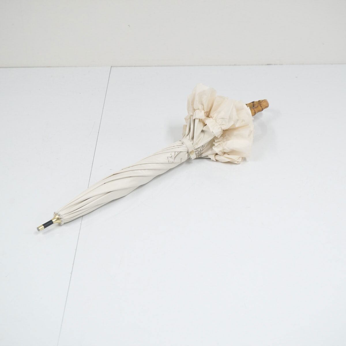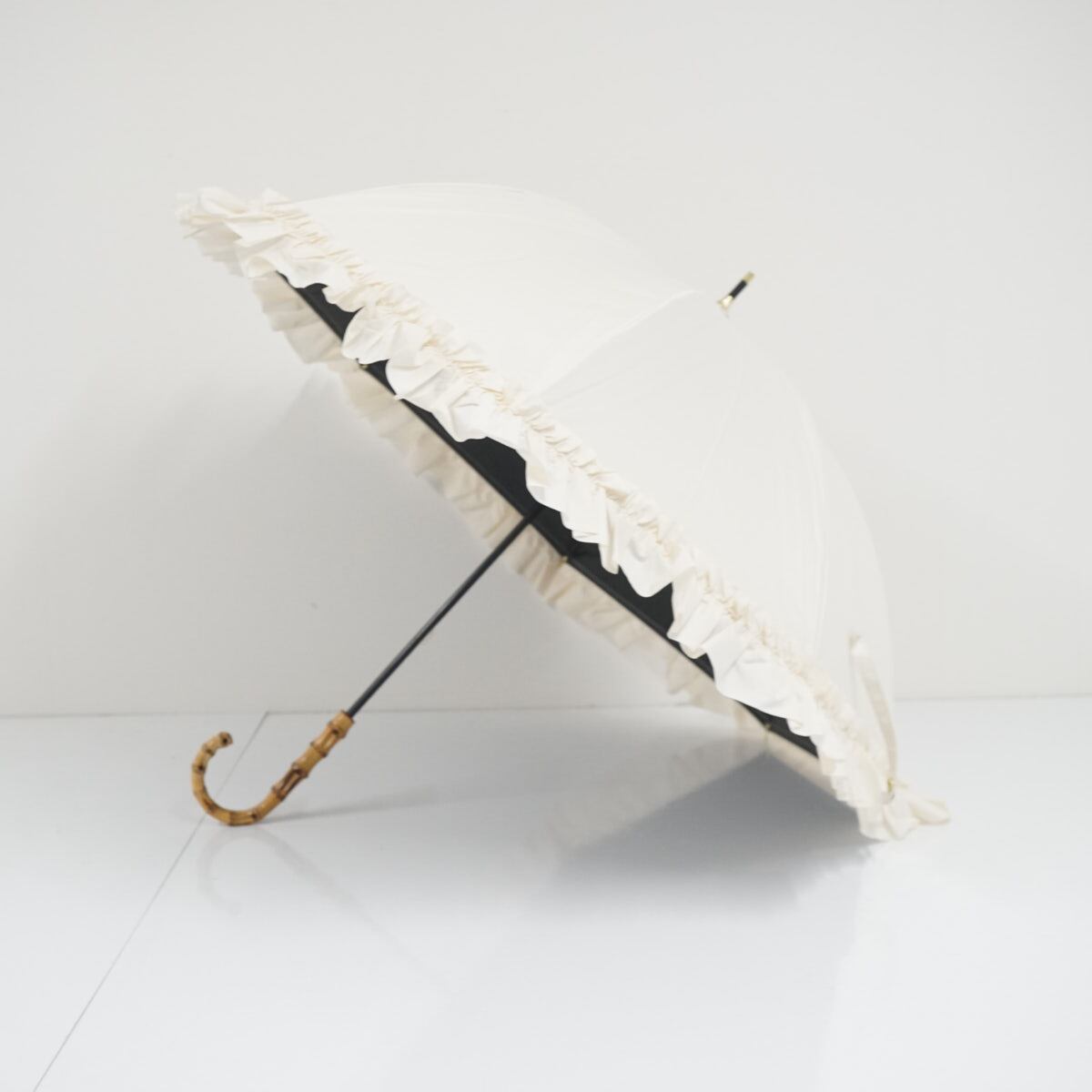 日傘 Maison de FLEUR メゾンドフルール USED美品 晴雨兼用 ボリュームフリル 寒竹手元 UV 遮光 オフホワイト ロリータ 47cm A3676