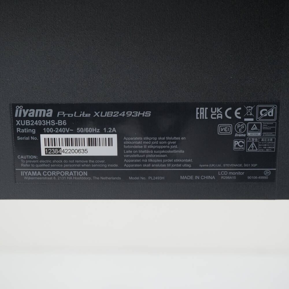 iiyama ProLite XUB2493HS-B6 液晶ディスプレイ USED美品 イイヤマ フルHD 1920×1080 IPS方式パネル 100Hz対応 完動品 EX0020