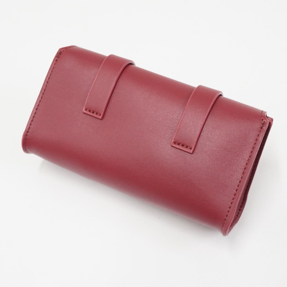 イギリスの伝統的な通学カバン「サッチェルバッグ」をモチーフにした、メガネケースとしても使える赤のマルチポーチ。