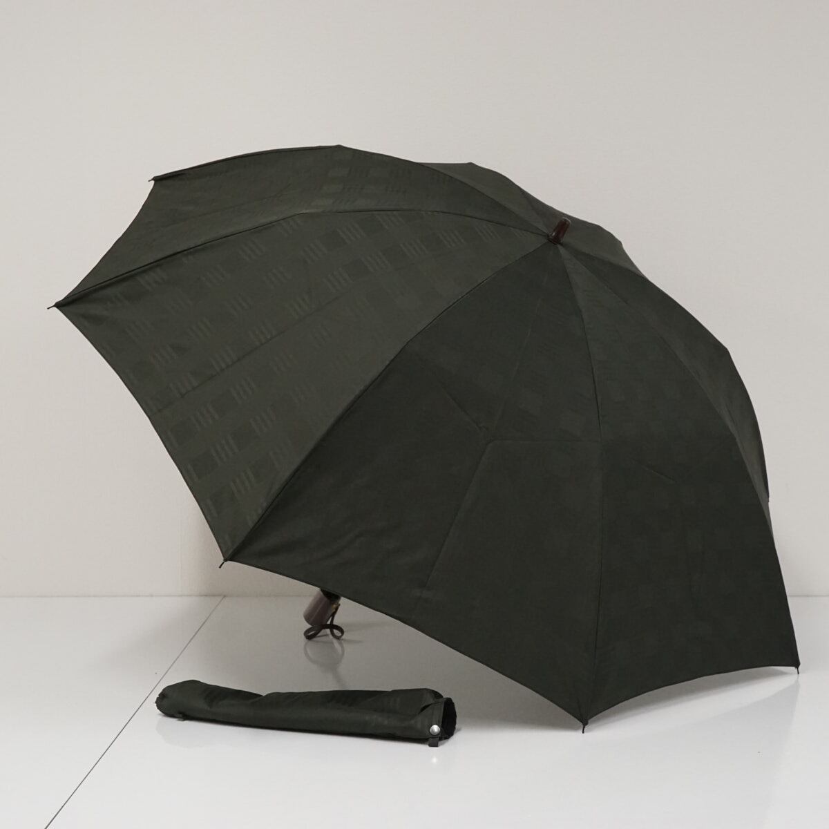 折りたたみ傘 前原光榮商店 USED品 カーキ 高級 日本製 トンボ洋傘 収納袋付き 58cm FS9552