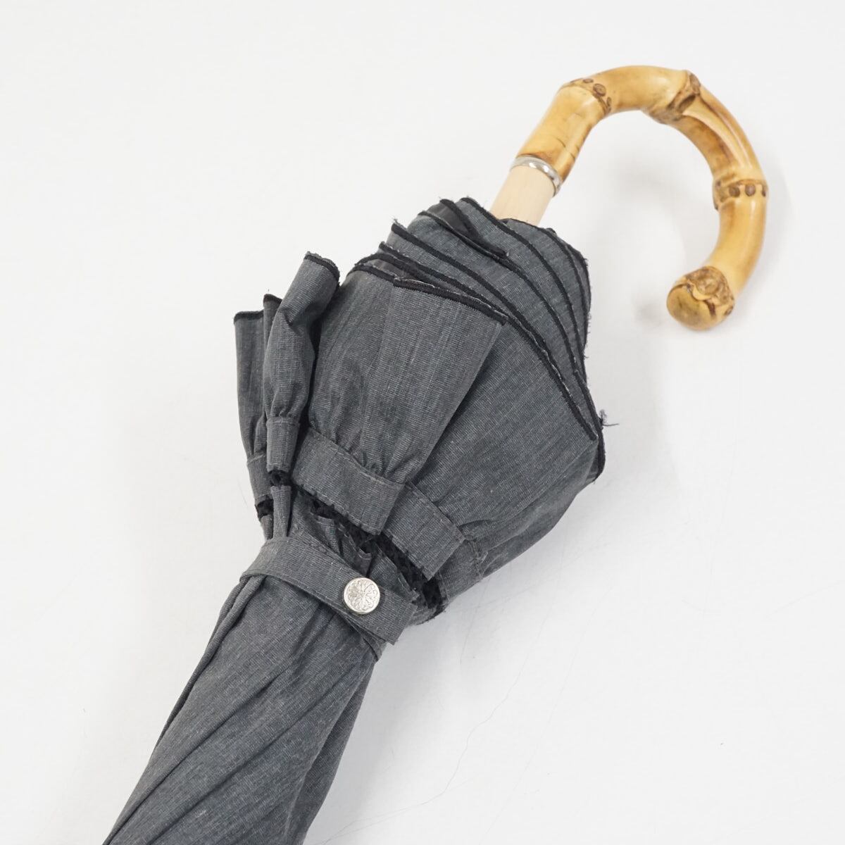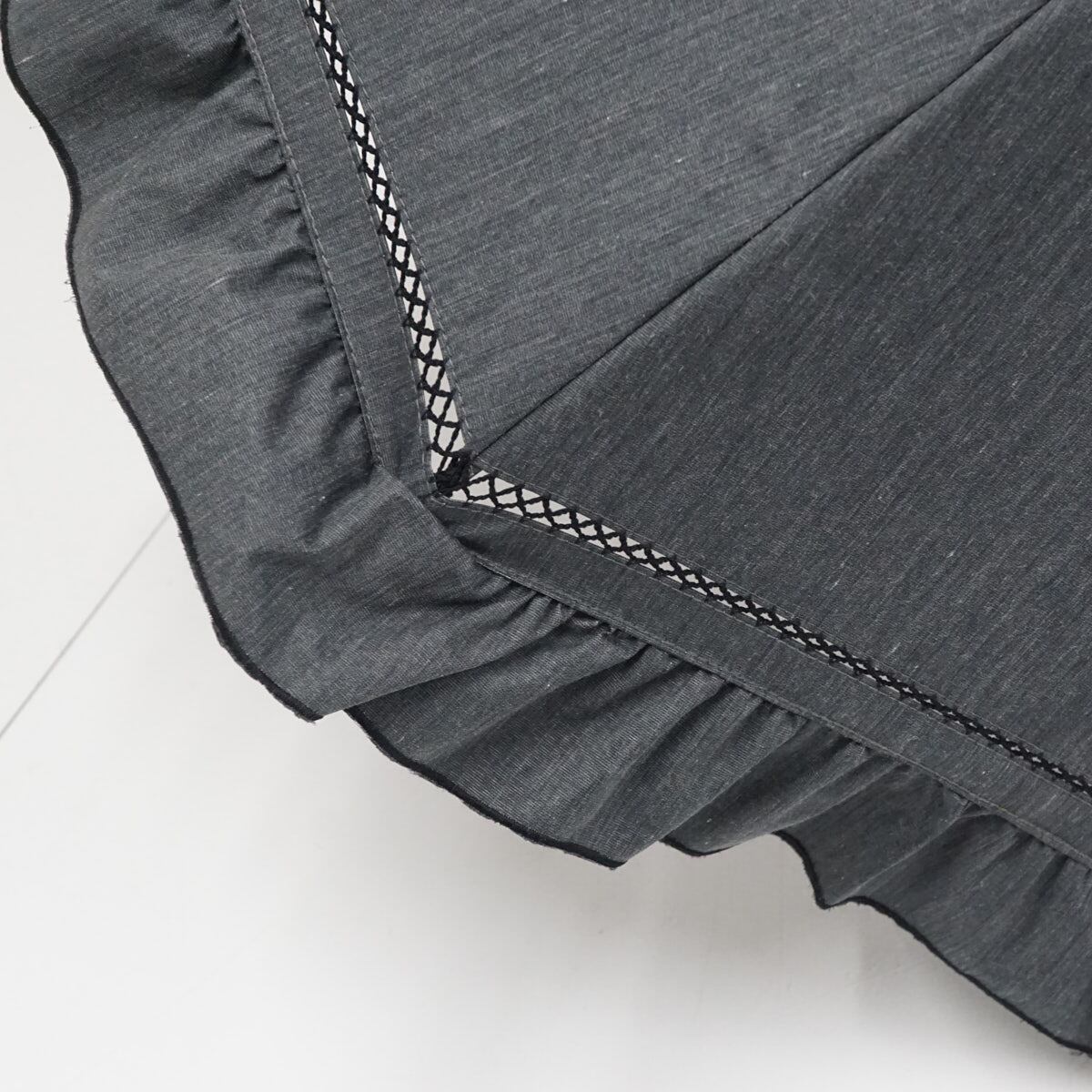 グレーのデニム風生地が大人かわいいパラソルです。