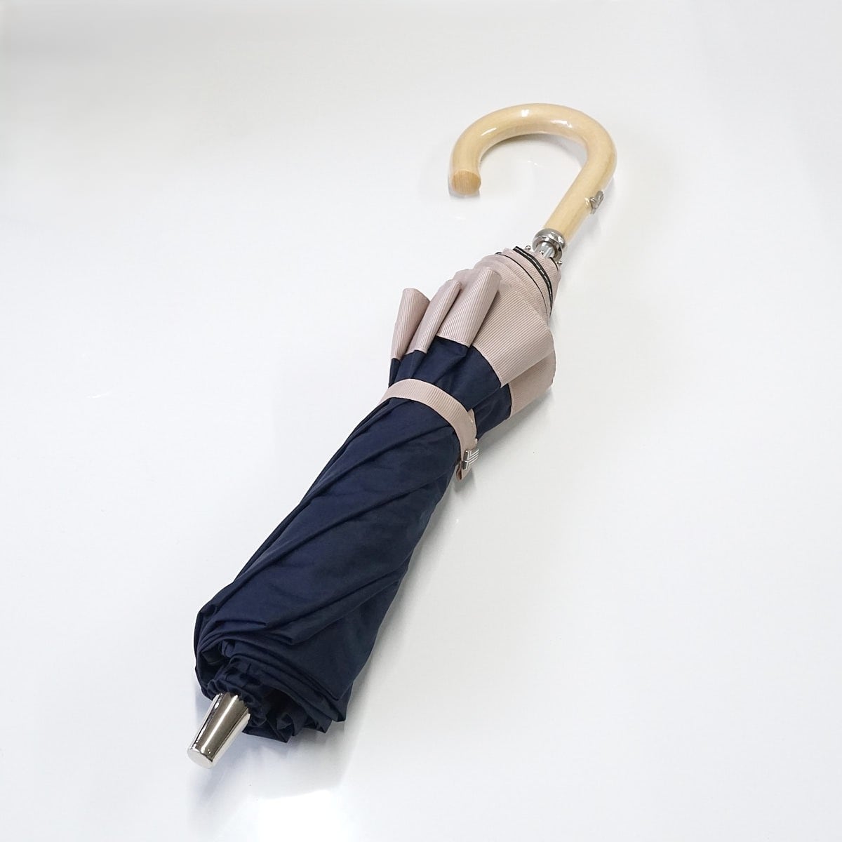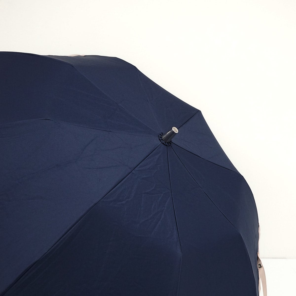 グログランリボンを外周にめぐらせ、クラシカルな折りたたみパラソルです。