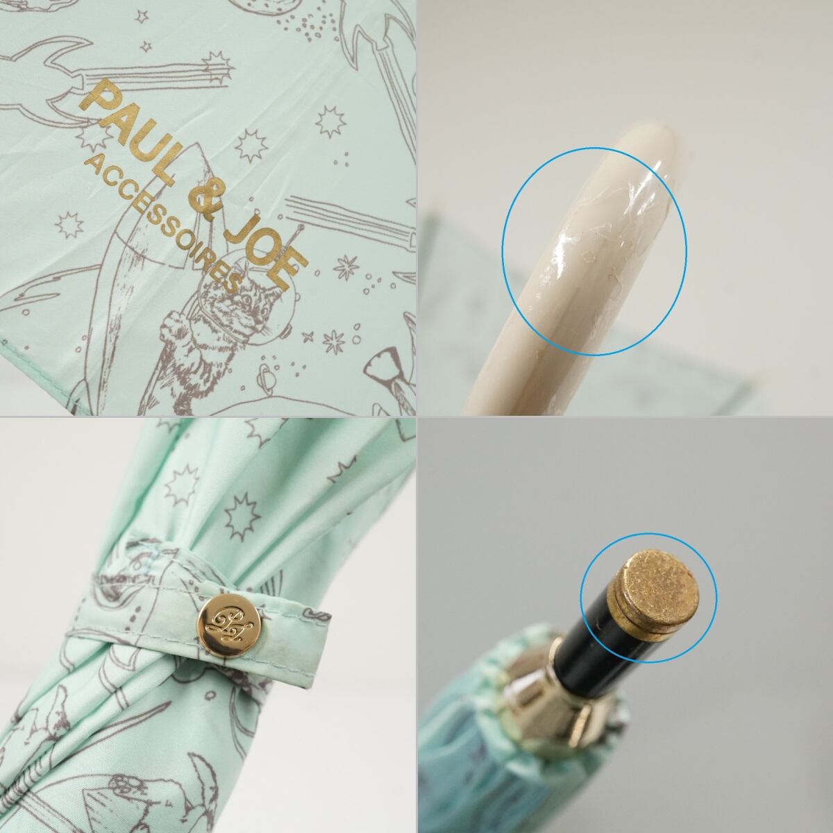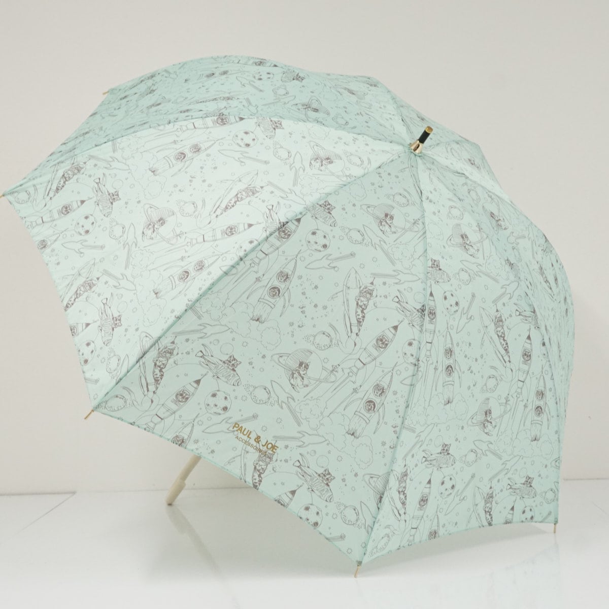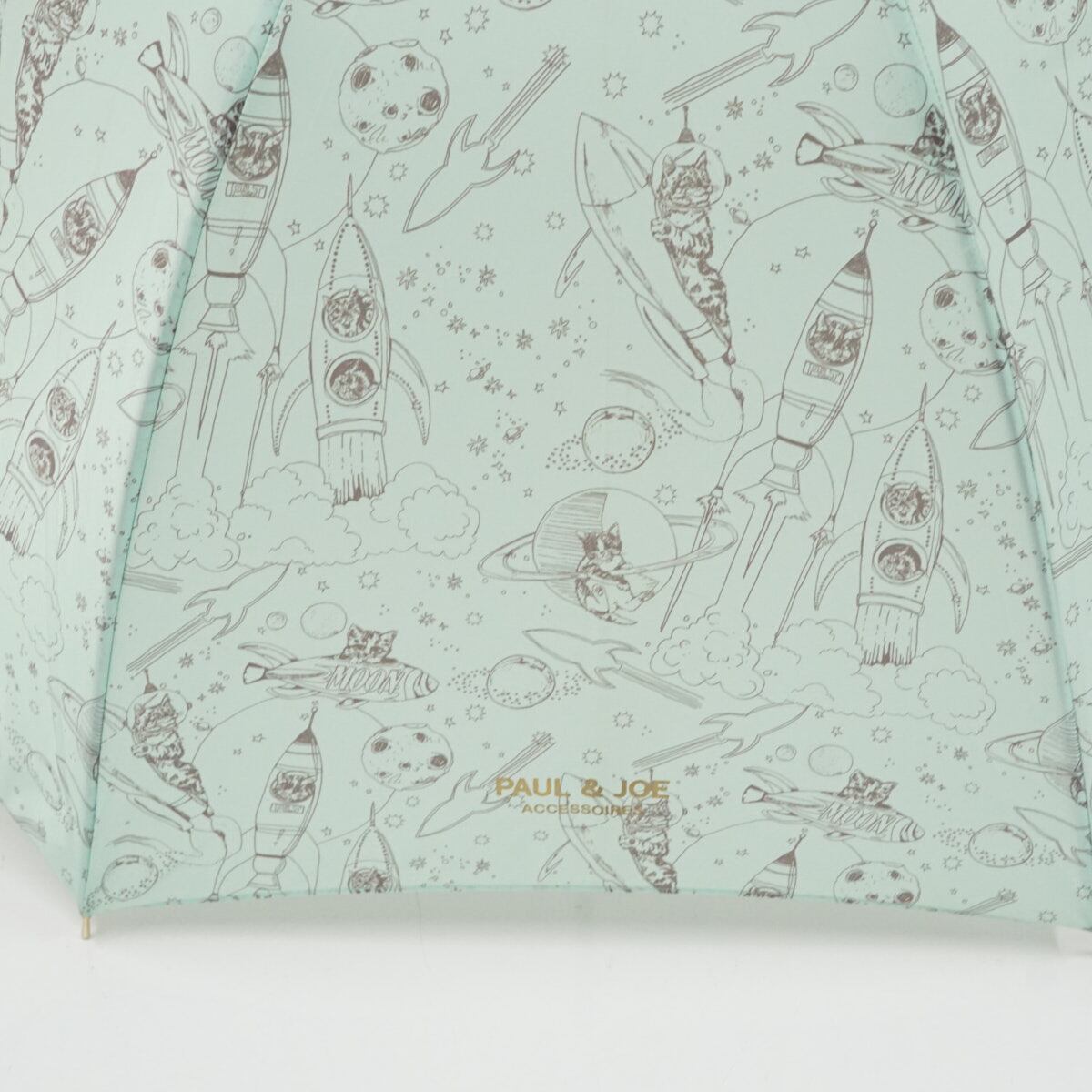 傘 PAUL&JOE ACCESSOIRES ポールアンドジョー アクセソワ USED美品 猫 ネコ グリーン ロケット 60cm A3769