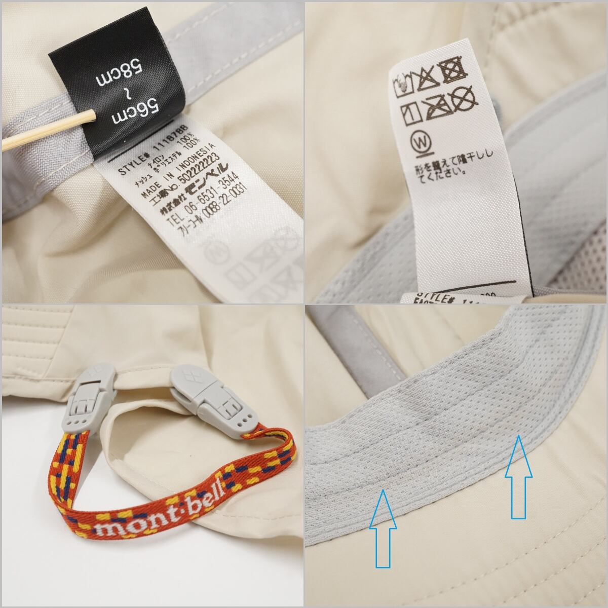 mont-bell モンベル シェードハット USED美品 男女兼用 Mサイズ アイボリー メッシュ アウトドア 紫外線対策 X9592