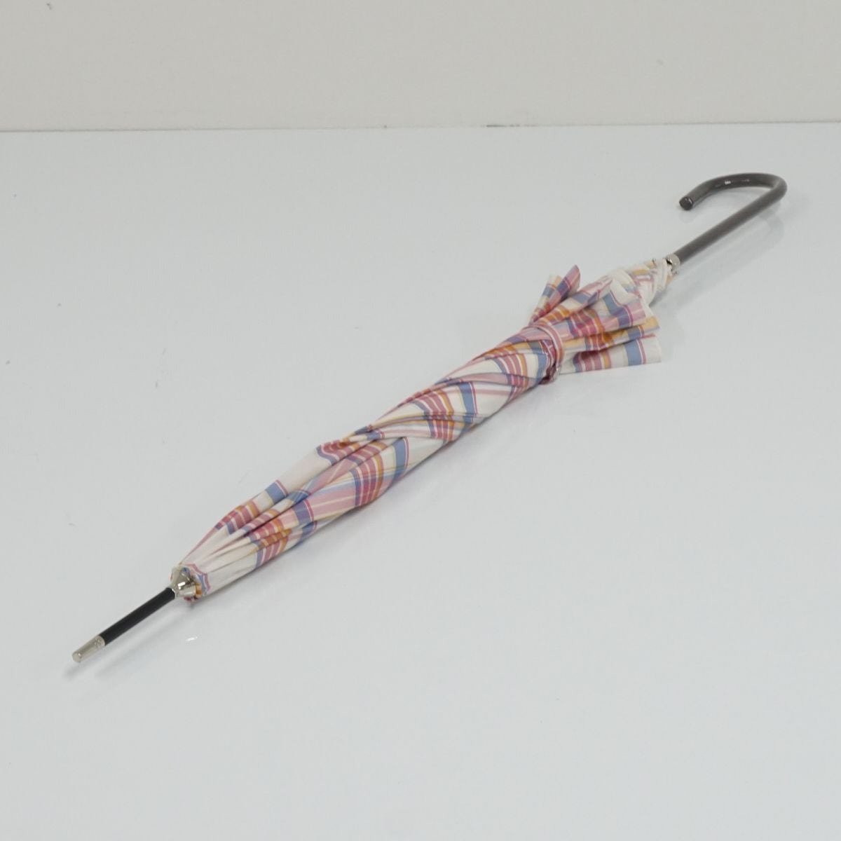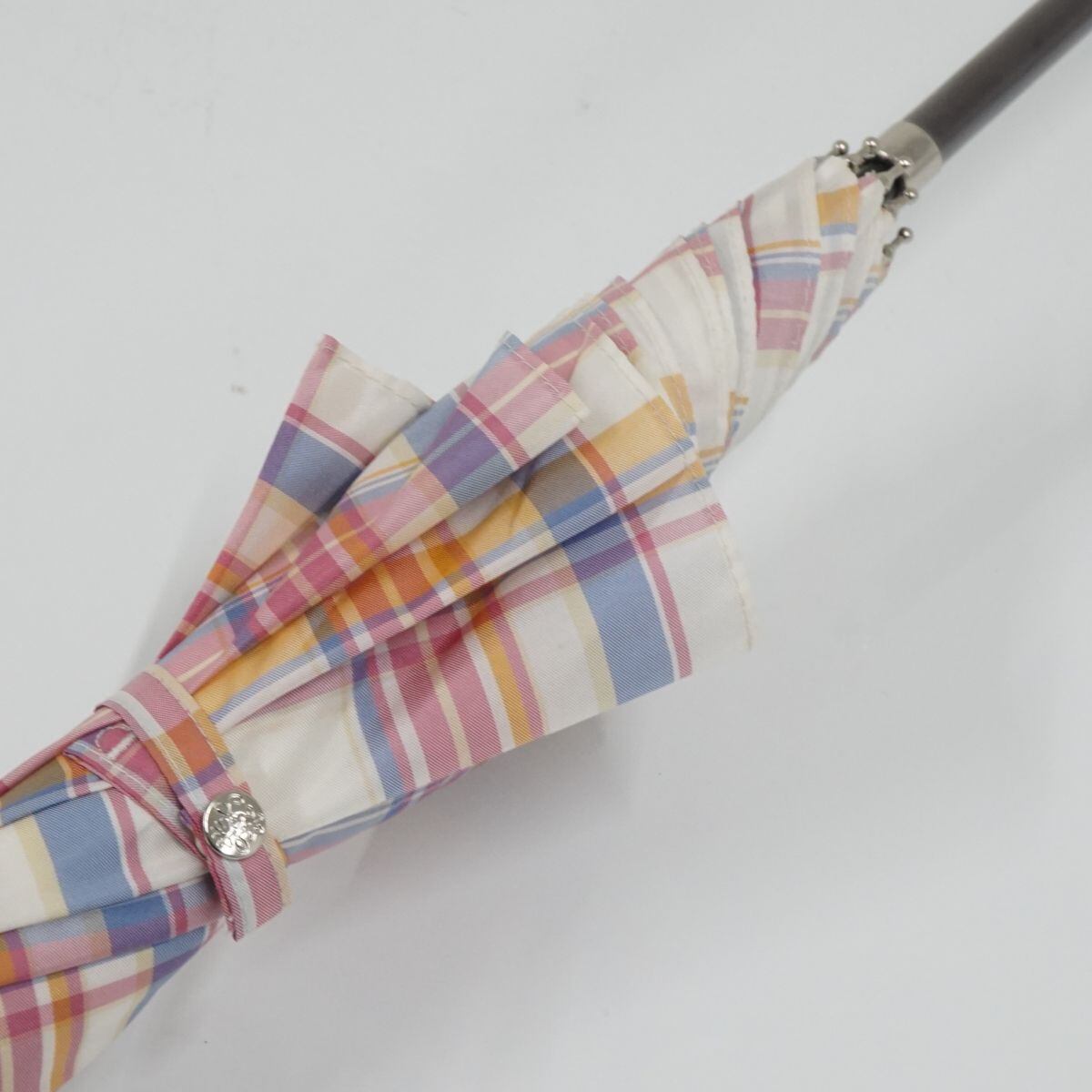 because ビコーズ 傘 USED美品 チェック レザー手元 55cm BT8016