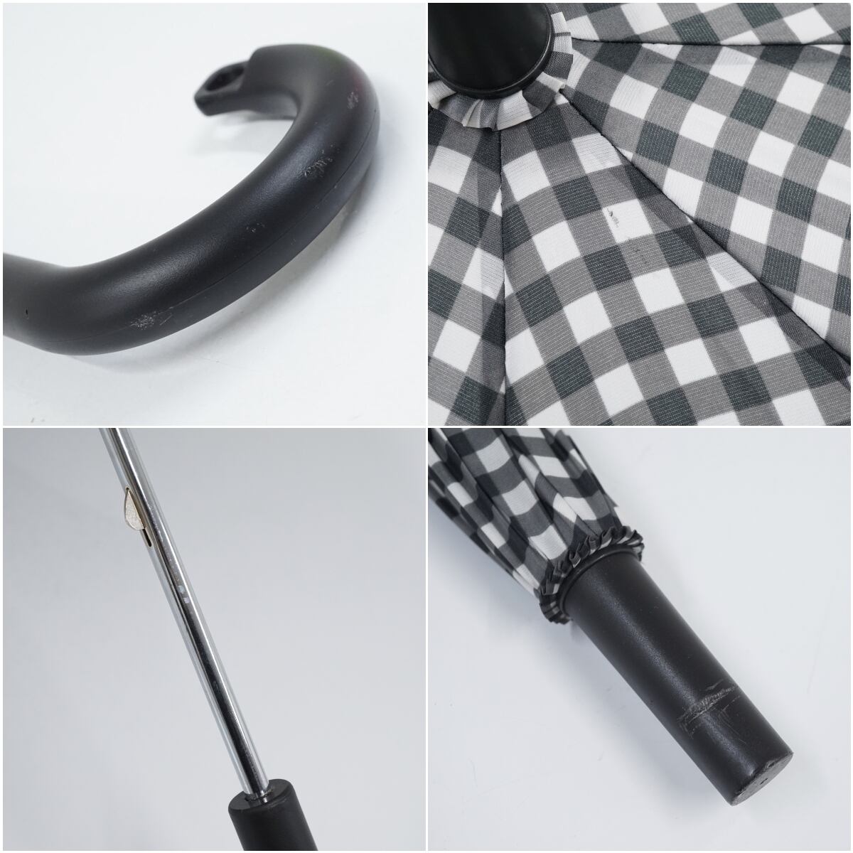 MUJI 無印良品 傘 USED美品 しるしのつけられる傘 ギンガムチェック 白 黒 グラス骨 男女兼用 左利き兼用 60cm M02