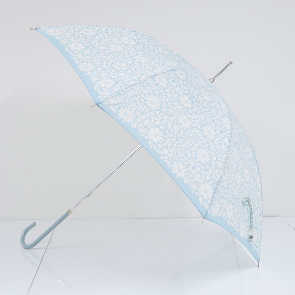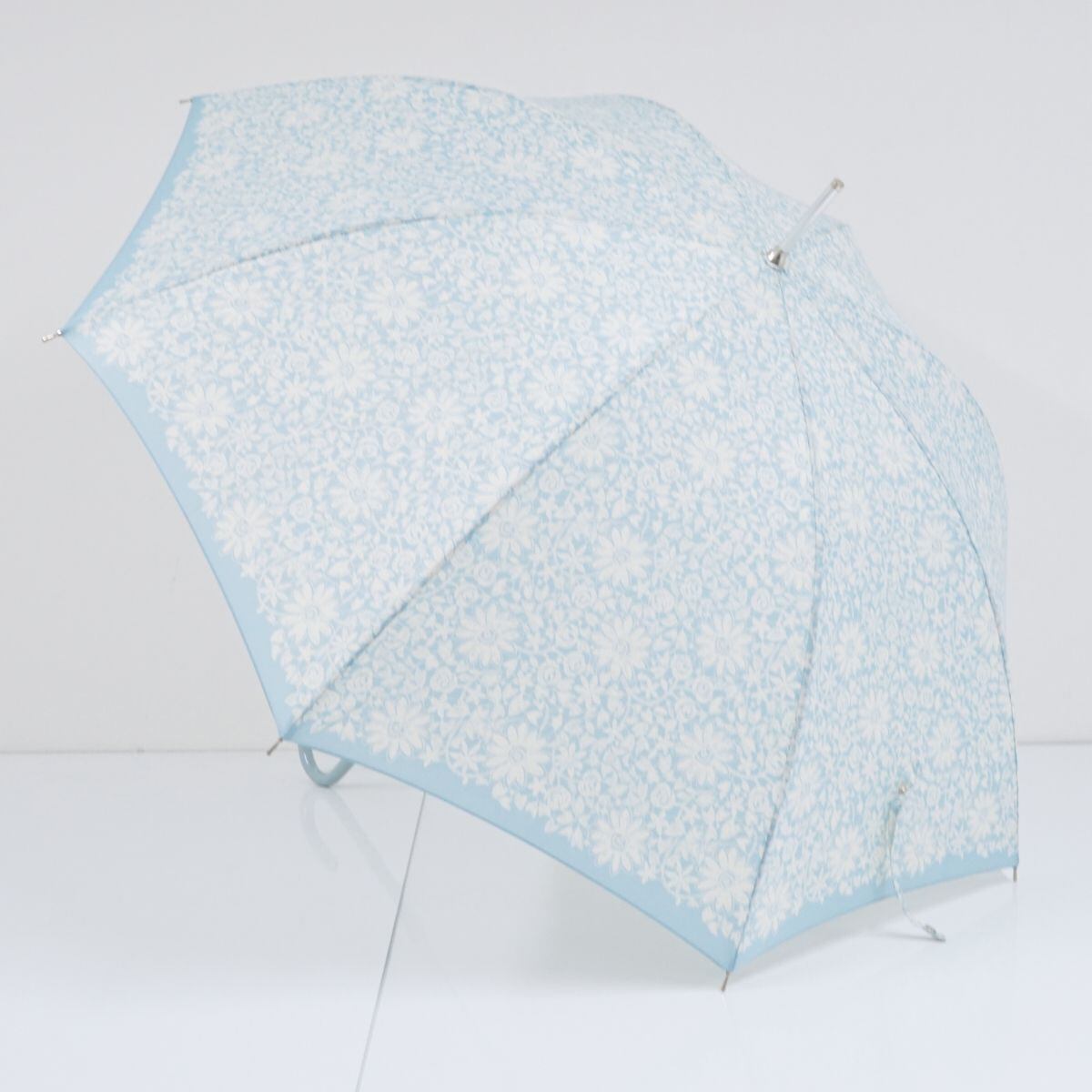 NINA RICCI ニナリッチ 傘 USED美品 フラワープリント 花 グラスファイバーフレーム ブルー 60cm T A9786