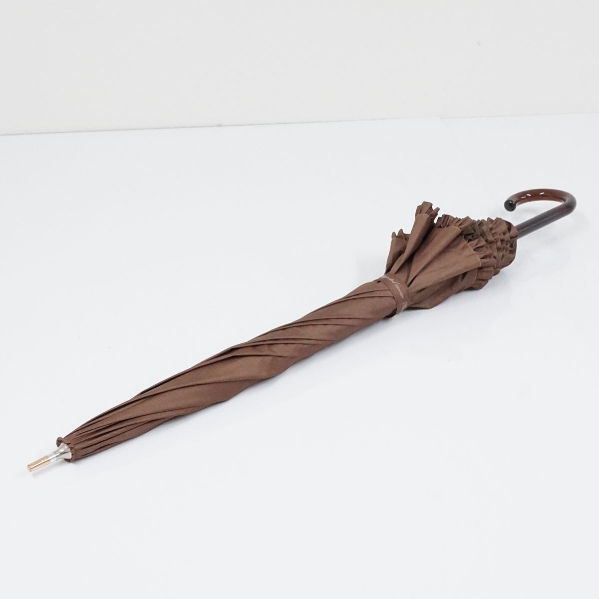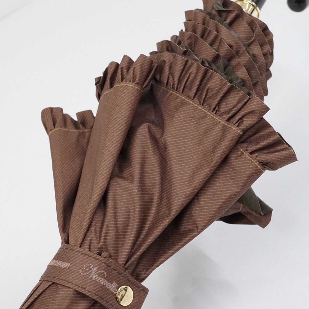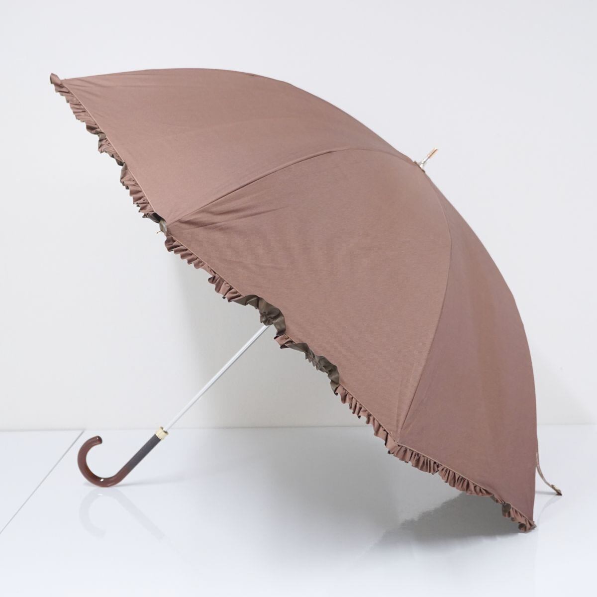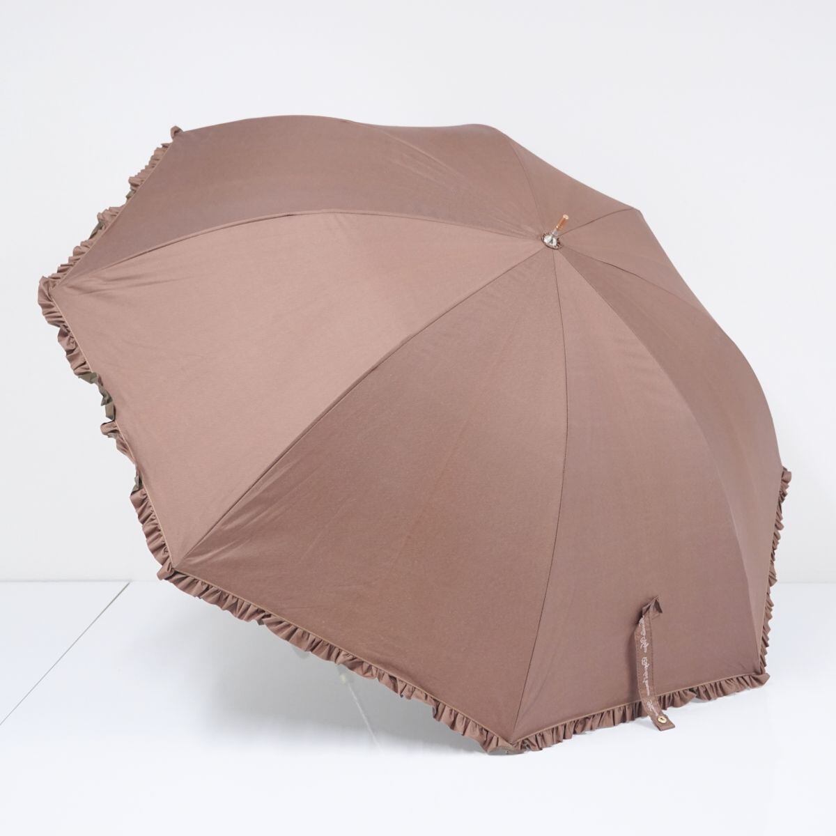 傘 MOONBAT ムーンバット KOKoTi ココチ USED美品 ツイル風×フリル UV遮蔽・遮光 ブラウン カーボン骨 60cm T S9870