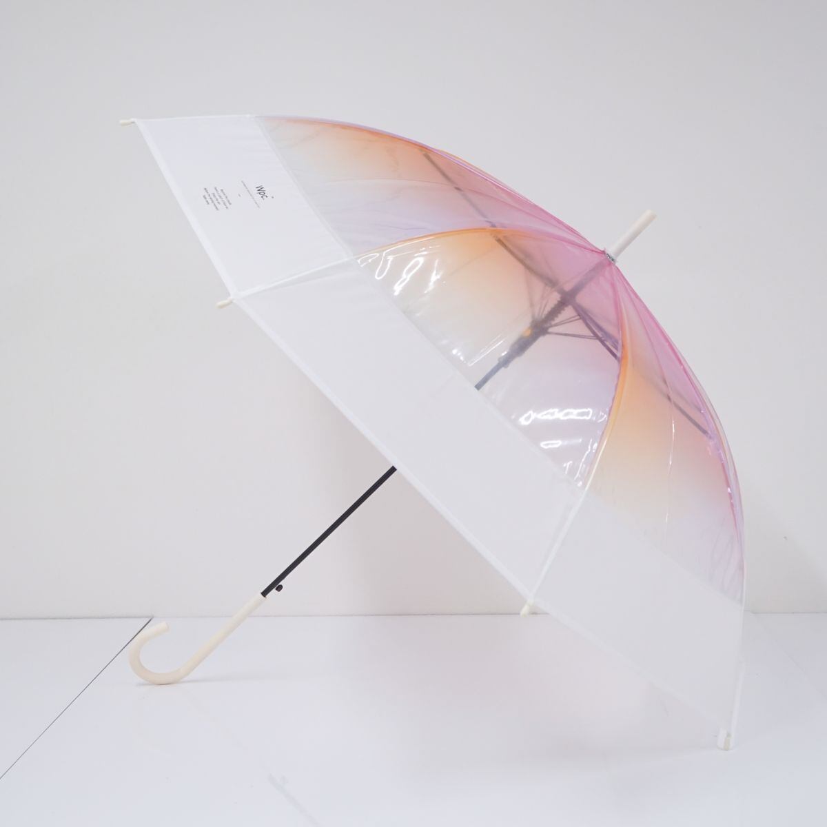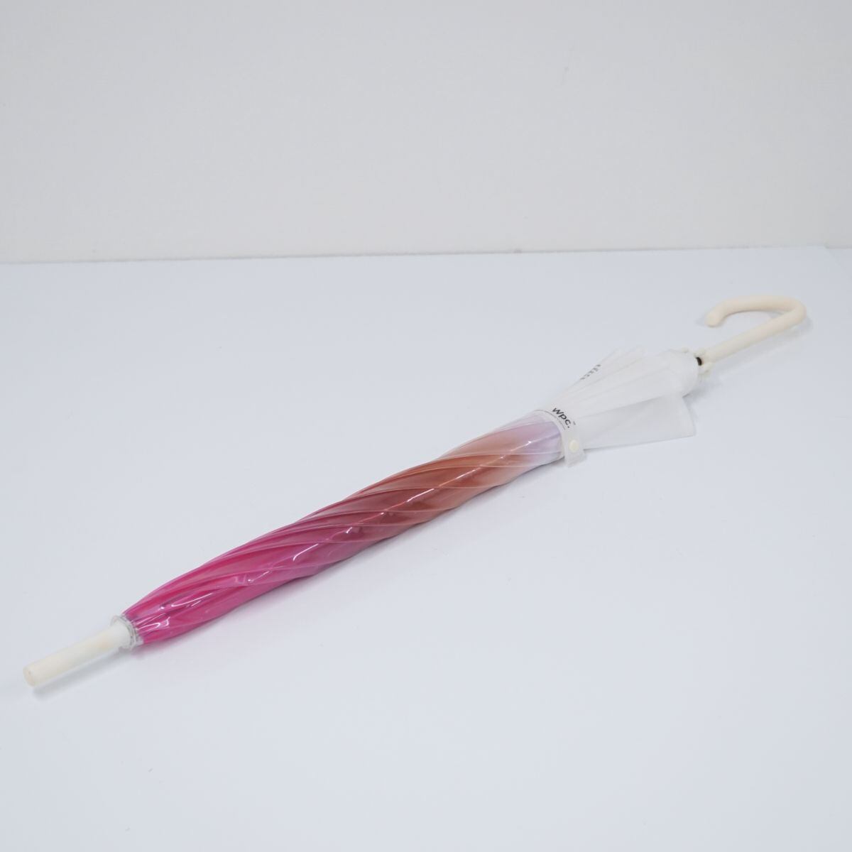 傘 Wpc. ワールドパーティー USED美品 切り継ぎグラデーション マット ピンク ジャンプ ビニール 60cm T B9867