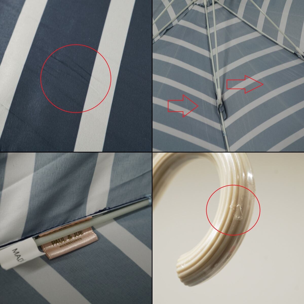 傘 PAUL&JOE ACCESSOIRES ポールアンドジョー アクセソワ USED美品 ボーダー ネイビー ネコ ヌネット 60cm A3353