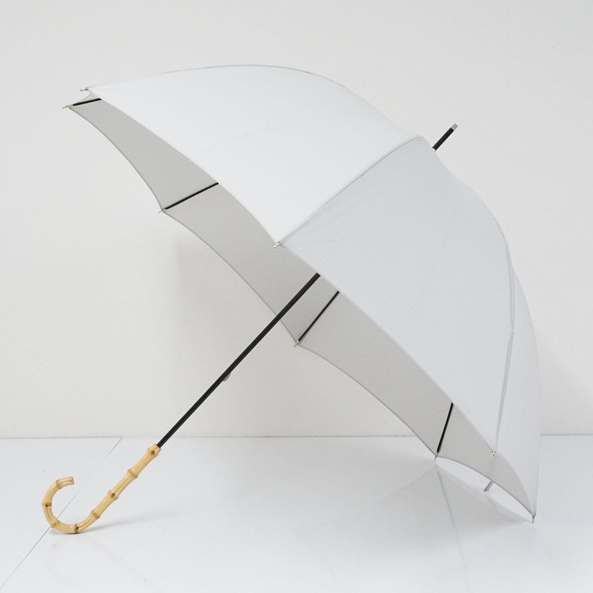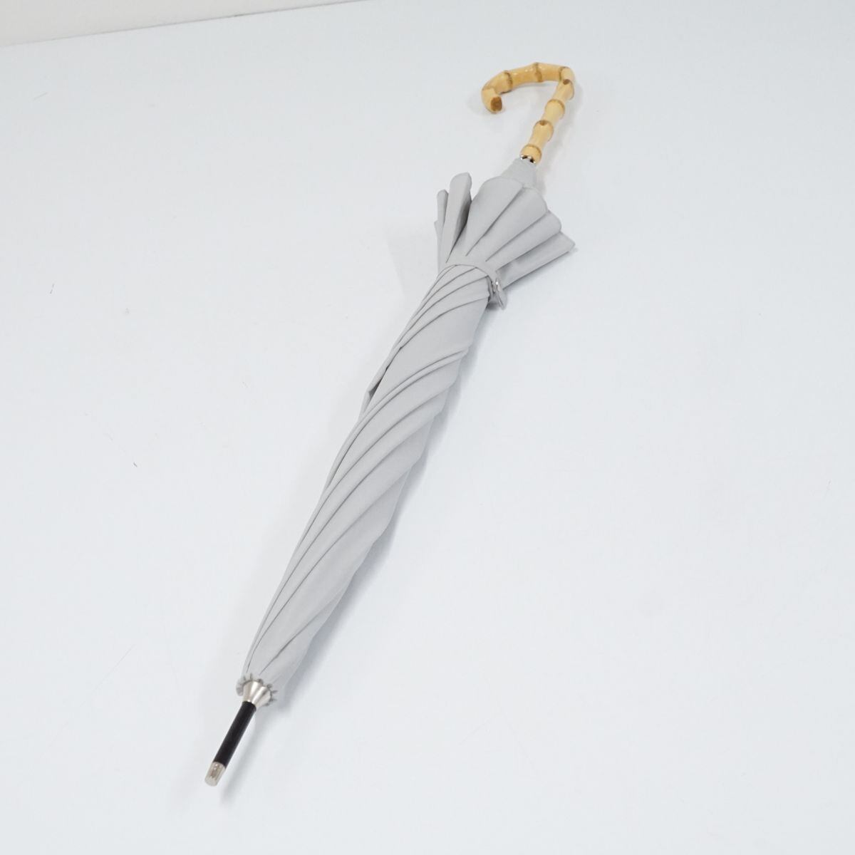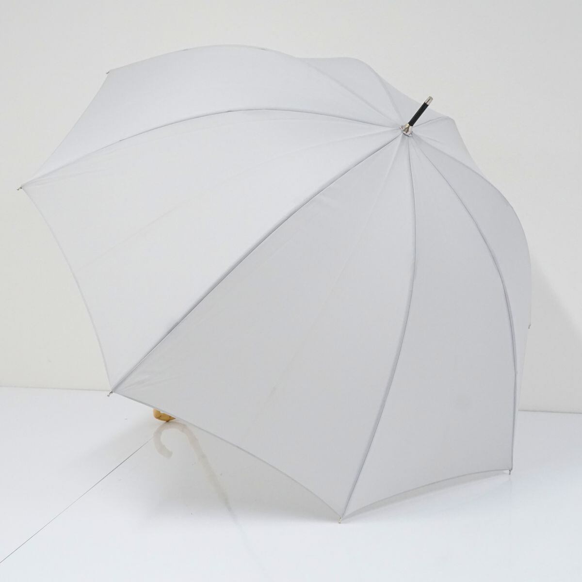 傘 SHIPS シップス USED美品 シンプル グレー 無地 寒竹手元 58cm KR A0027