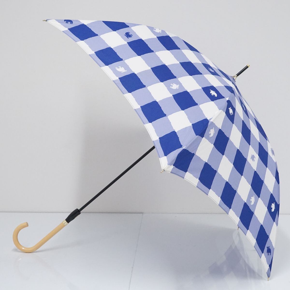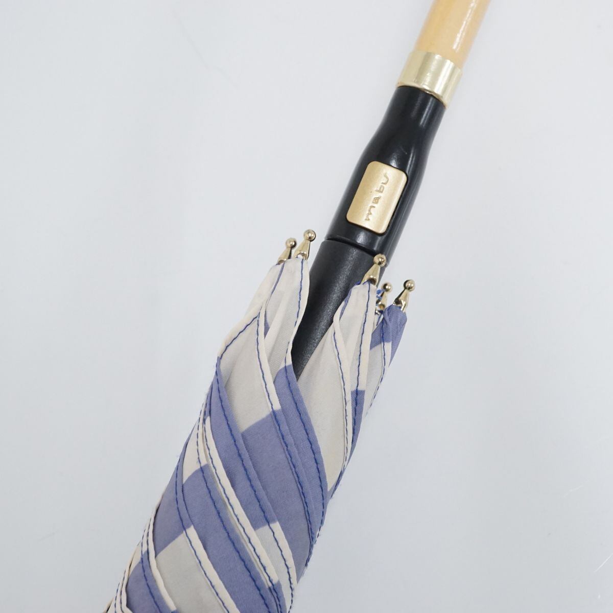 傘 moz×mabu マブ×モズ USED美品 スリムアンブレラ コラボモデル チェック 軽量 グラスファイバー ジャンプ 58cm A1690