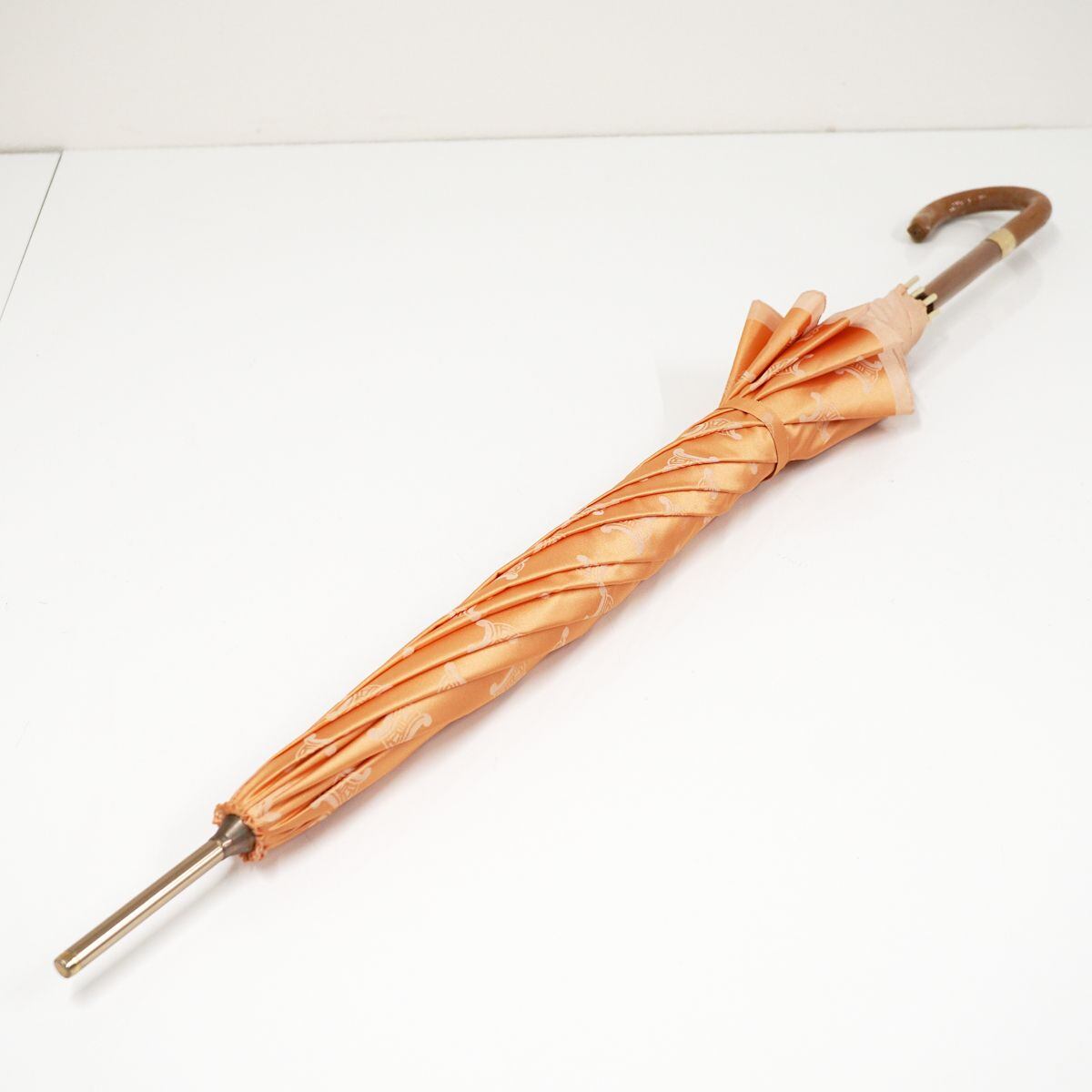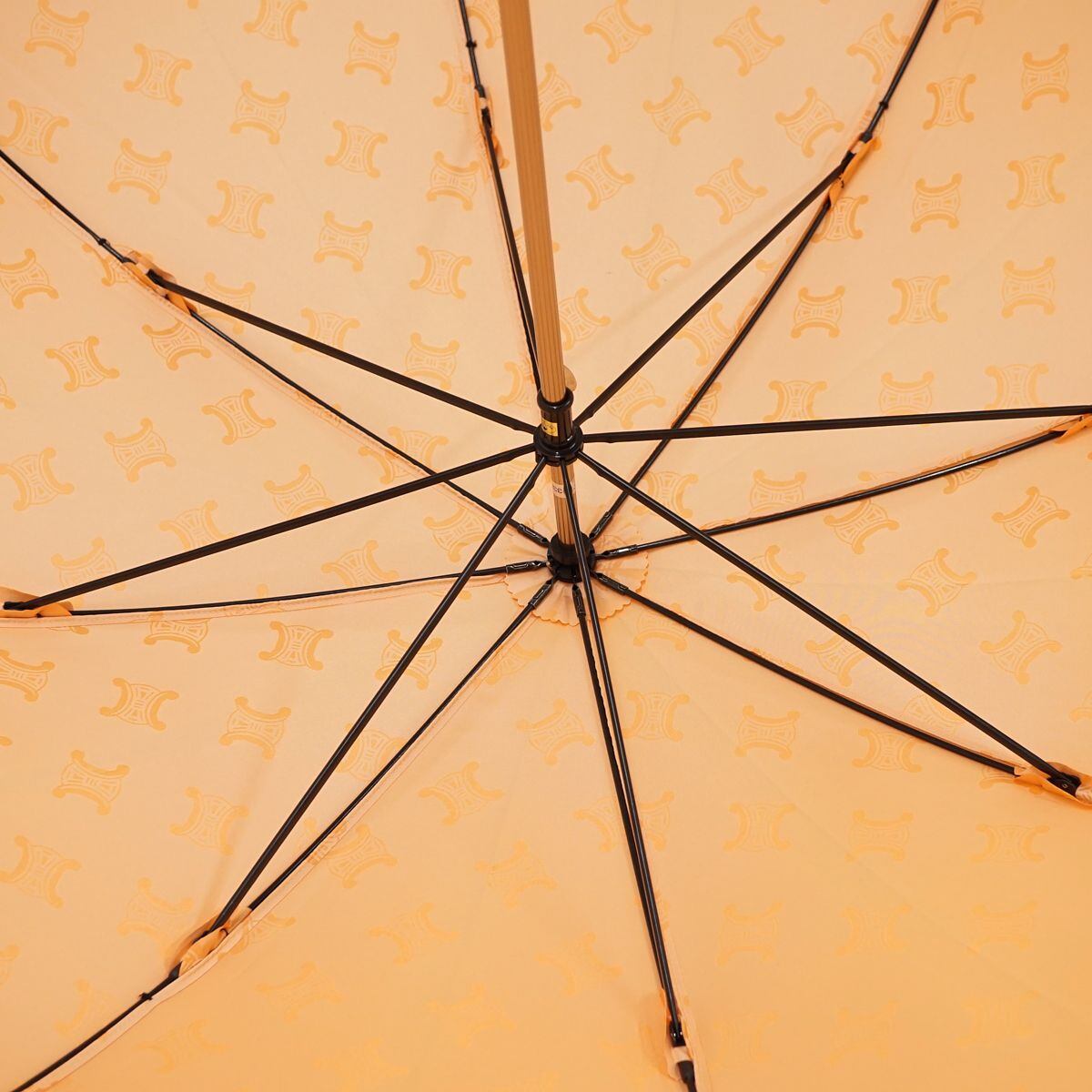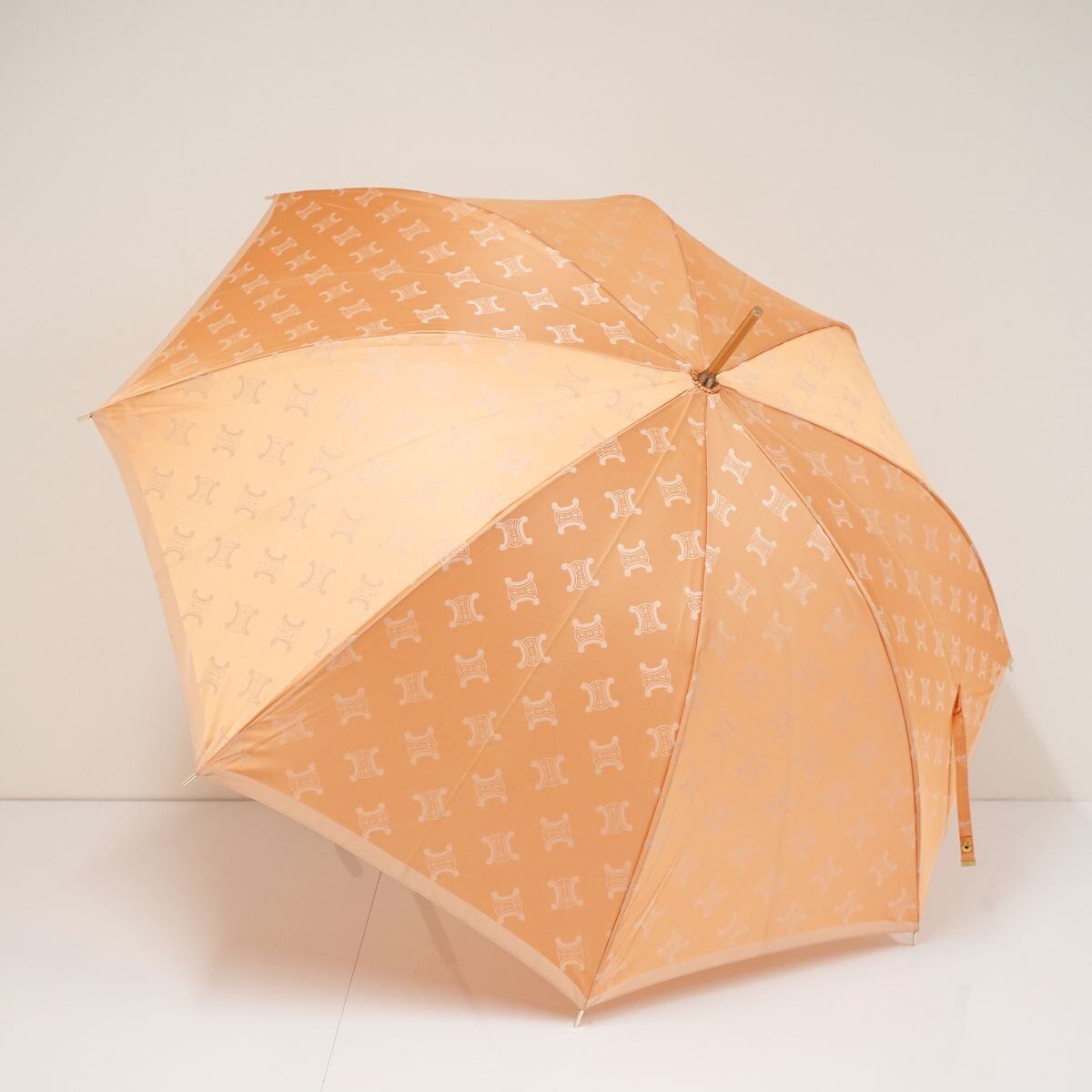 高級傘 CELINE セリーヌ USED美品 マカダム オレンジ グラス骨 ブランド 希少 60cm S S0079