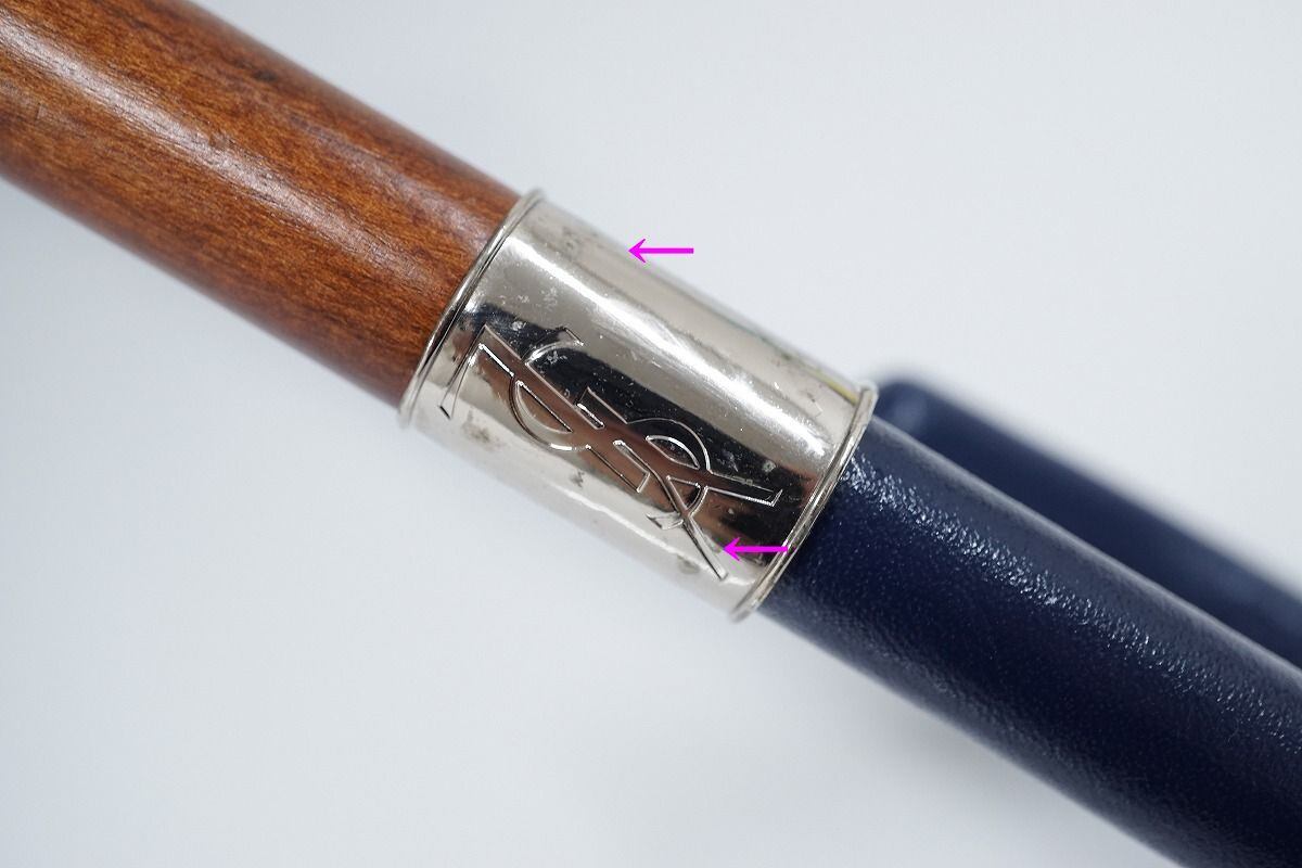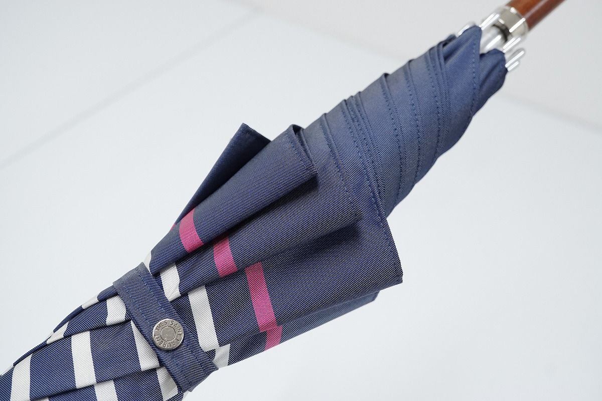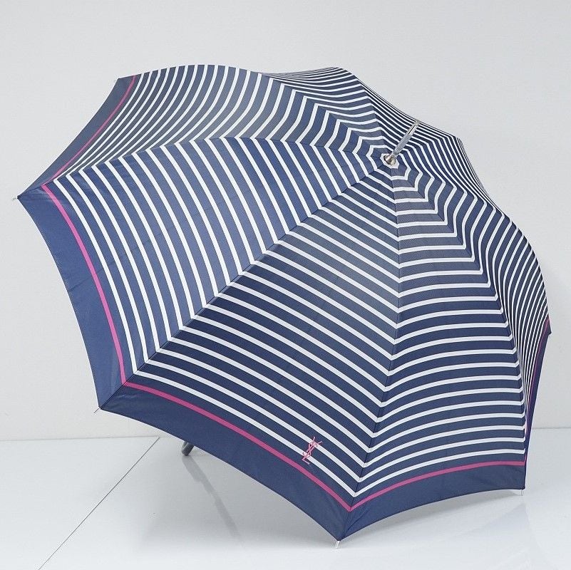 傘 YSL イヴ・サンローラン 高級傘 USED美品 ボーダー ロゴ刺繍 グラス骨 軽量 C S0069