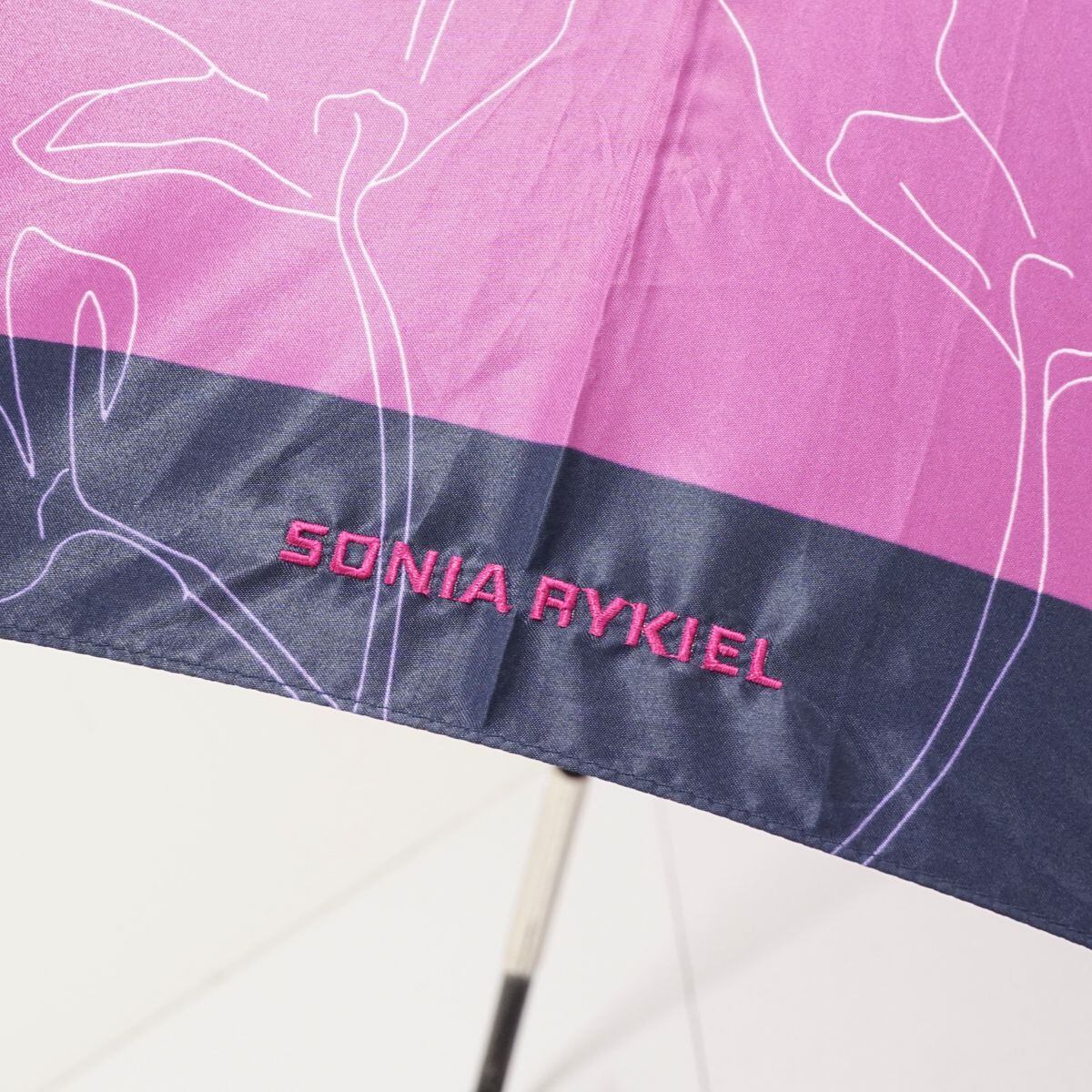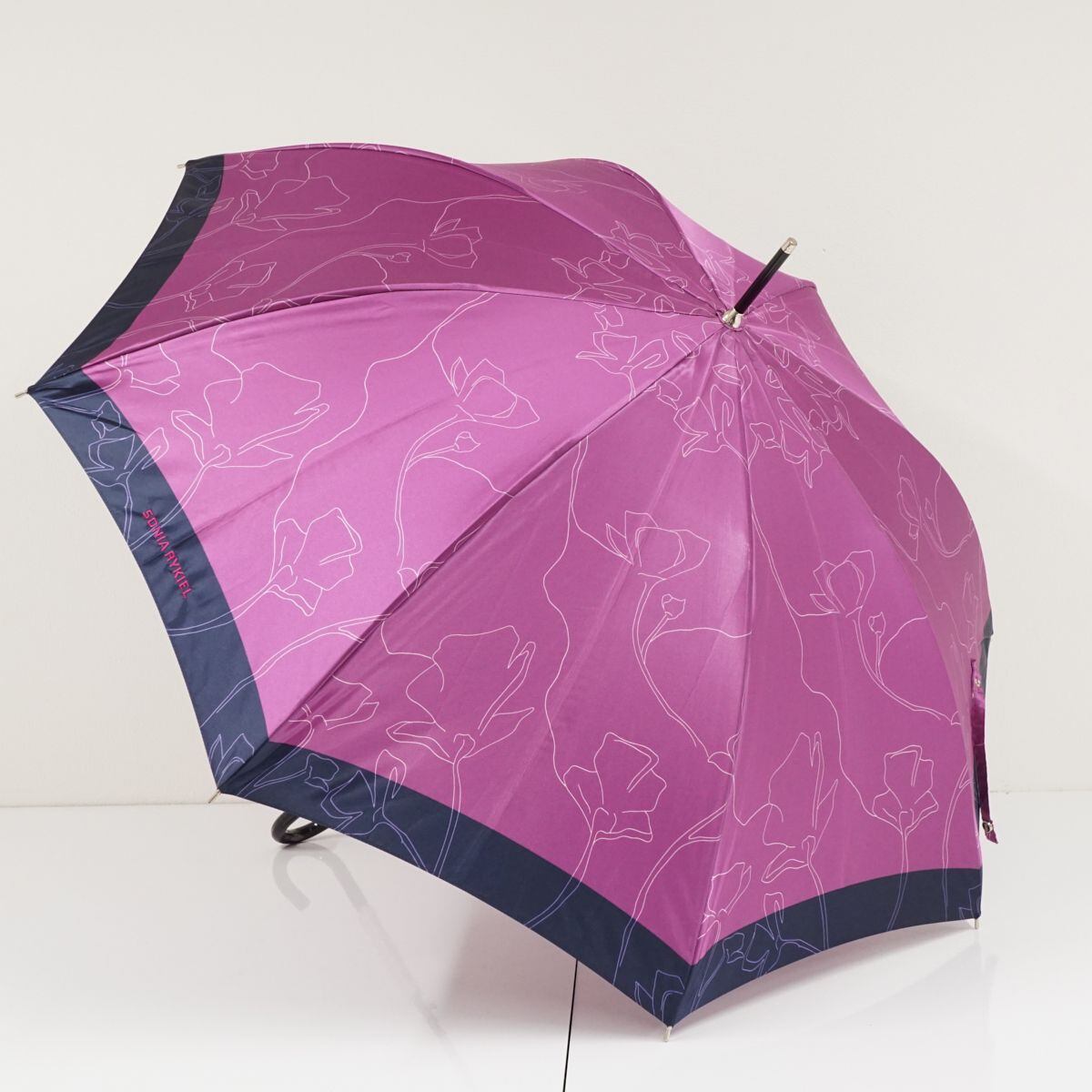 傘 SONIA RYKIEL ソニアリキエル USED美品 耐風 フラワー ラインアート パープル ジャンプ 60cm KR A0133
