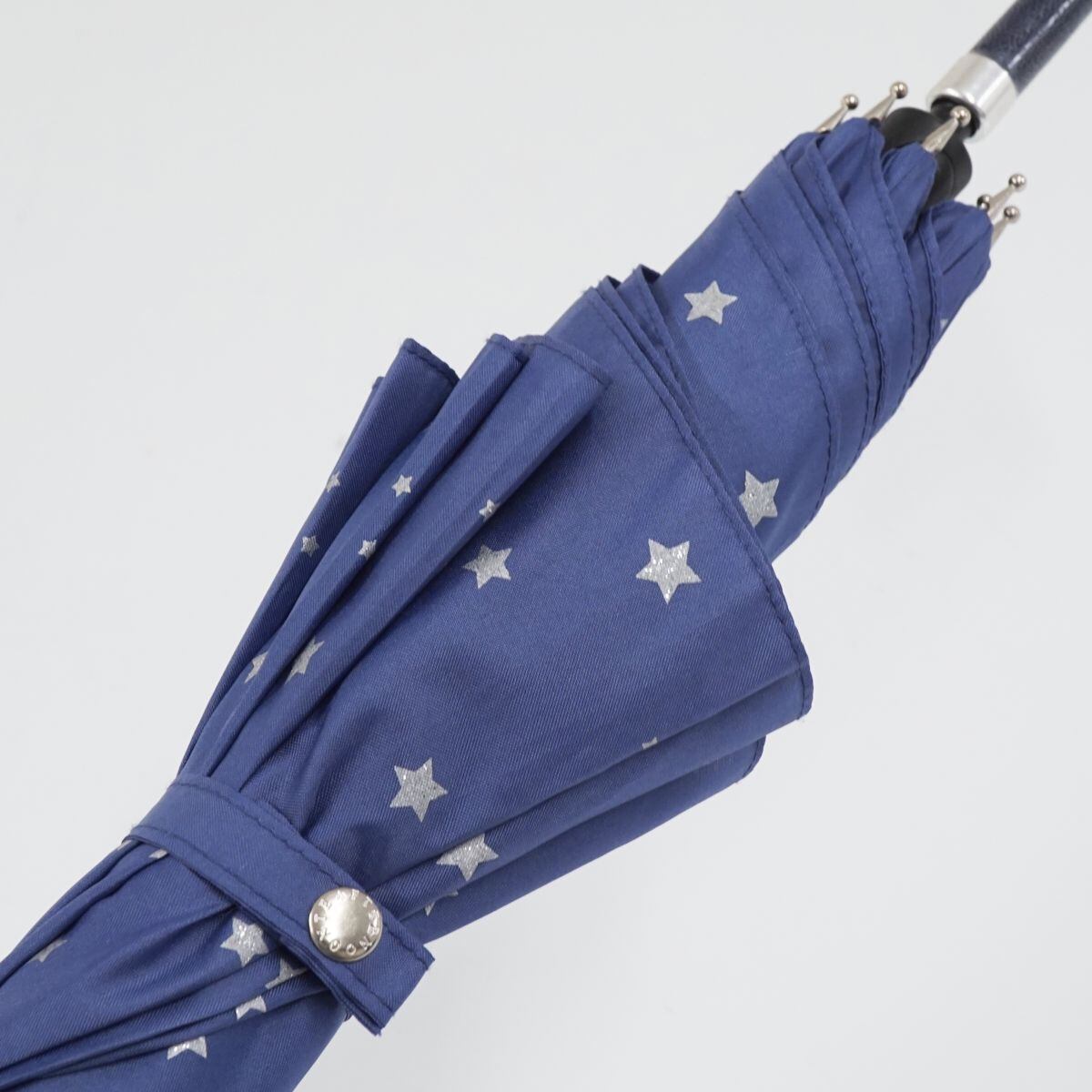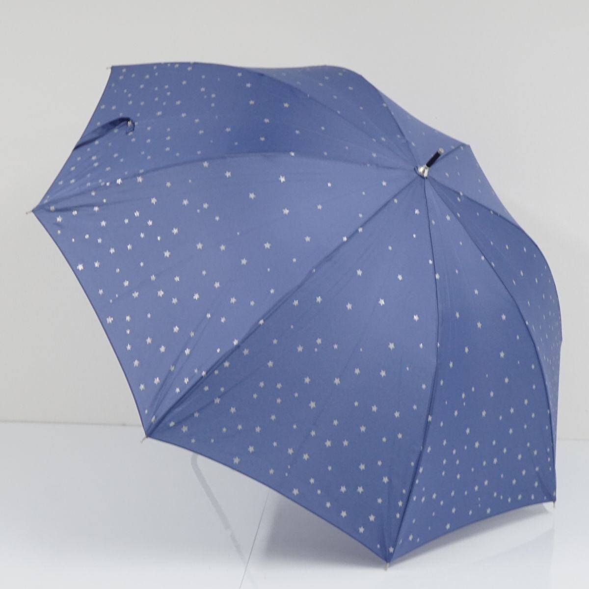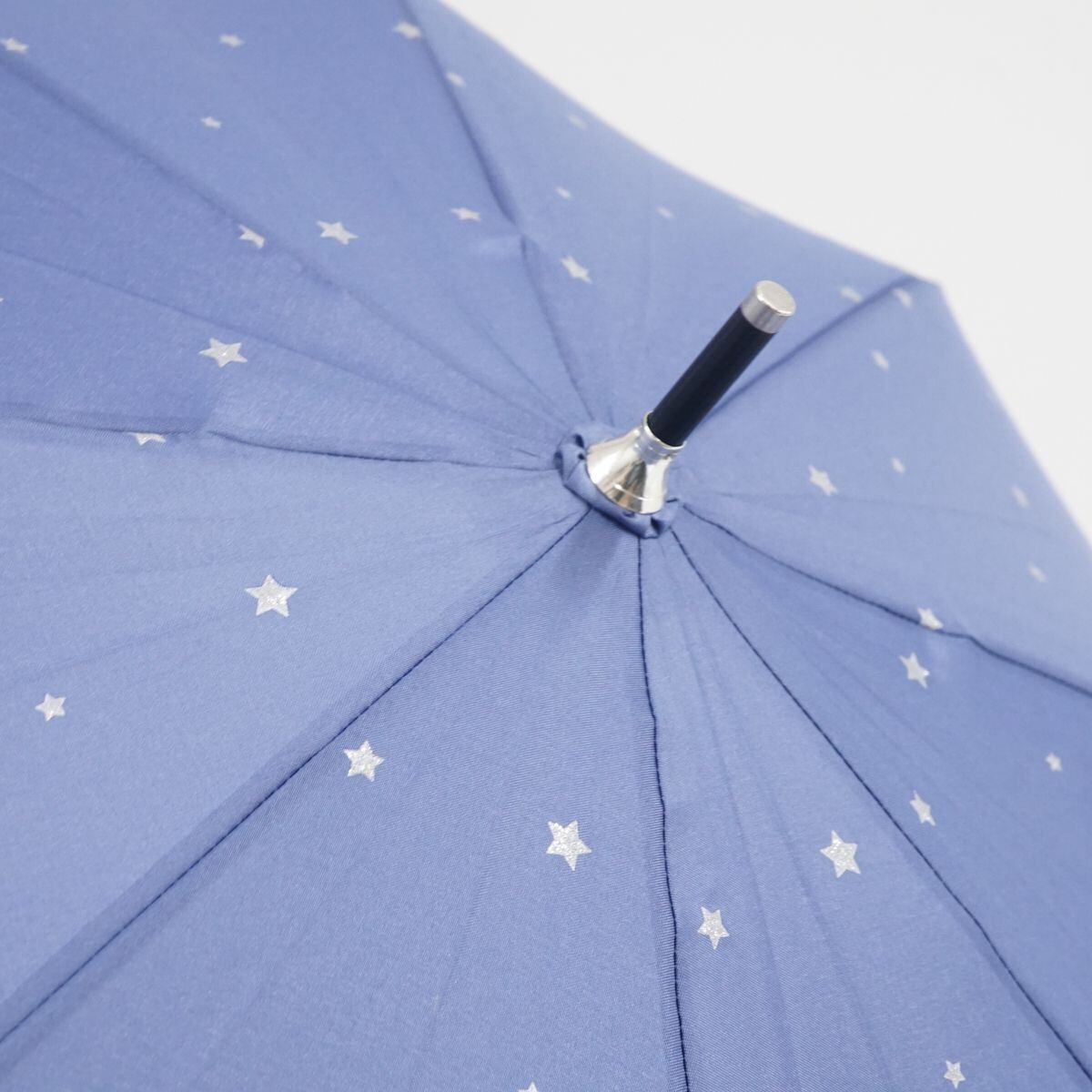 ブルー系の生地にシルバーの星のドットがパンキッシュなデザインの傘です。