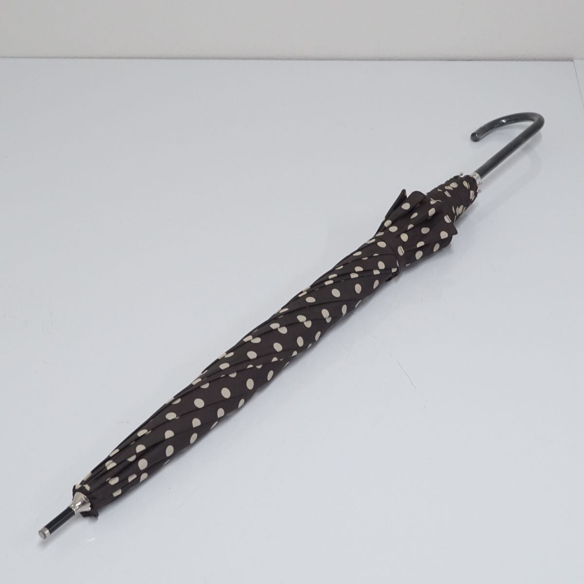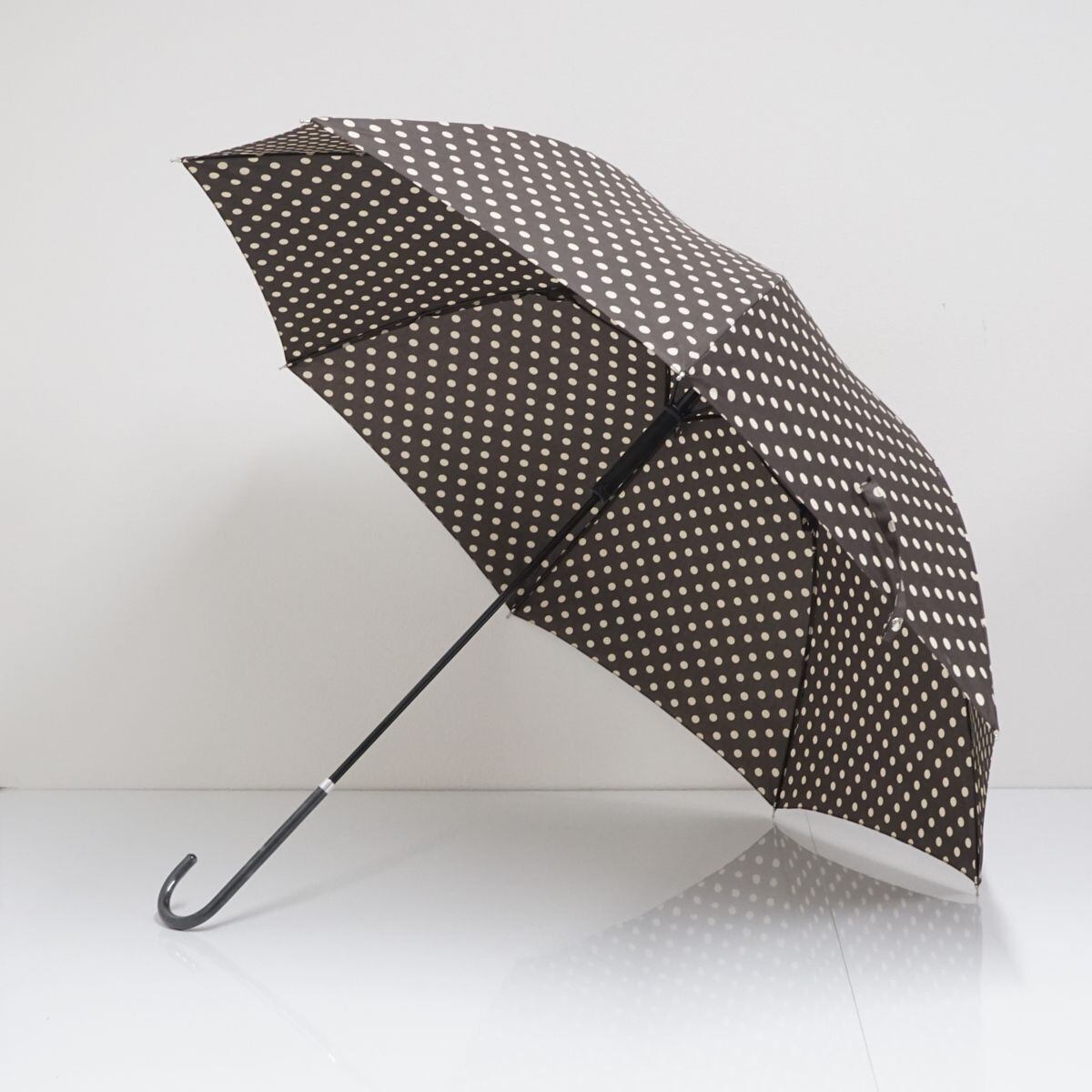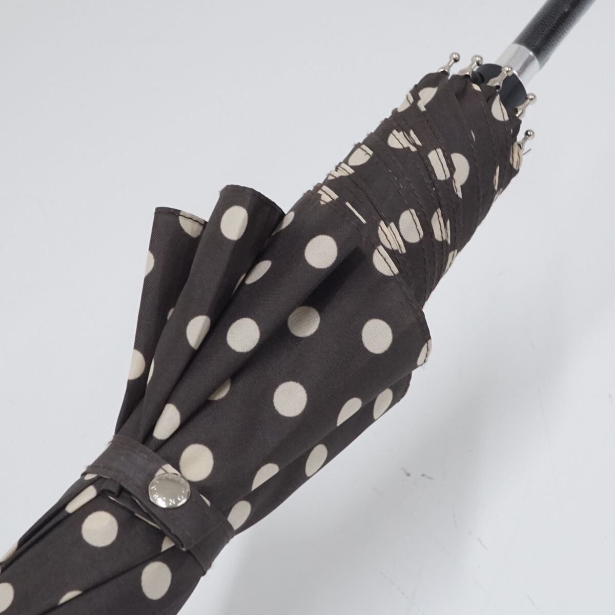 Afternoon tea アフタヌーンティー 傘 USED美品 ドット レザー手元 ジャンプ 55cm T BT8679