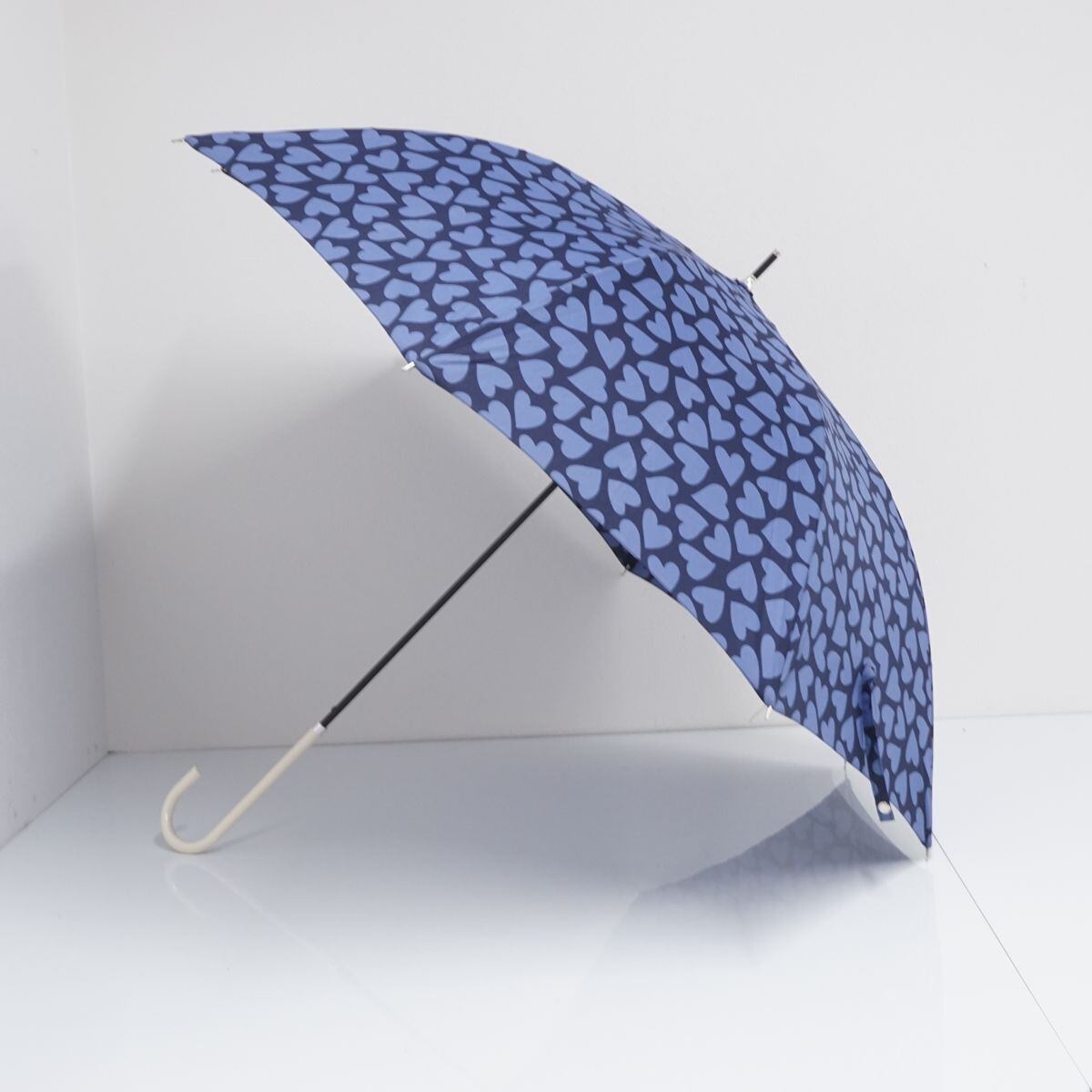 ネイビーを基調にハート柄が全面にプリントされたラブリーなデザインです。