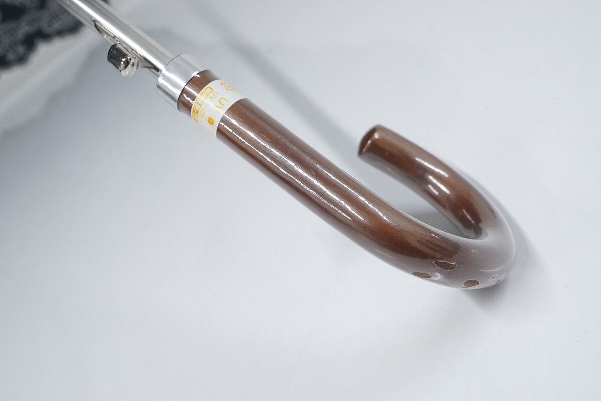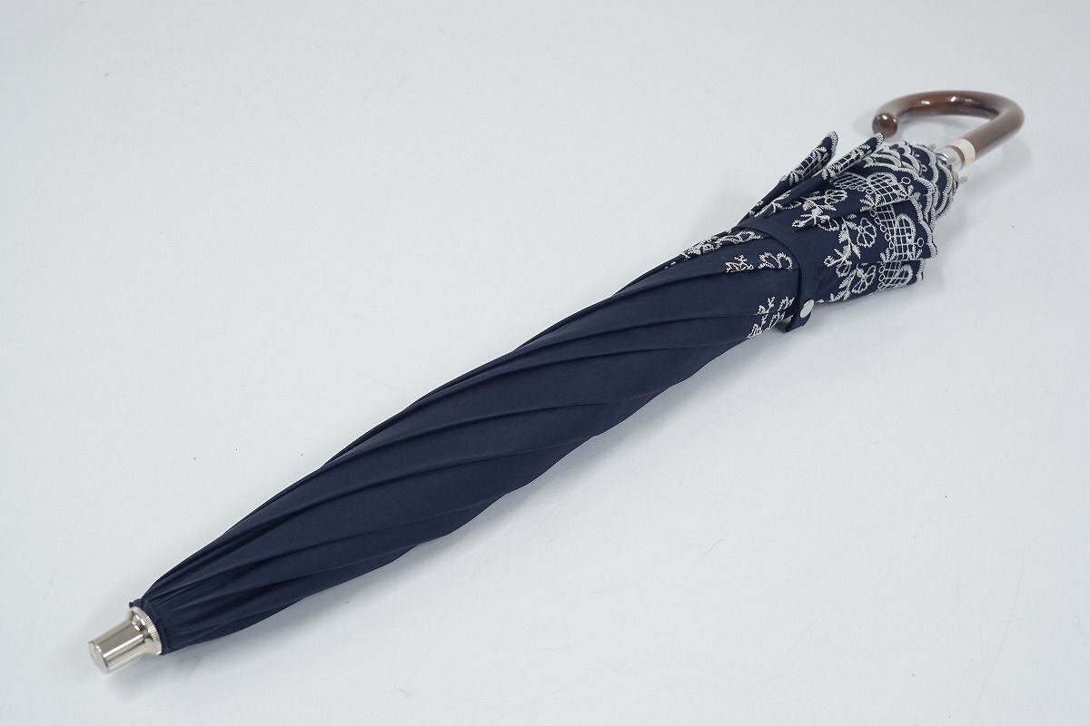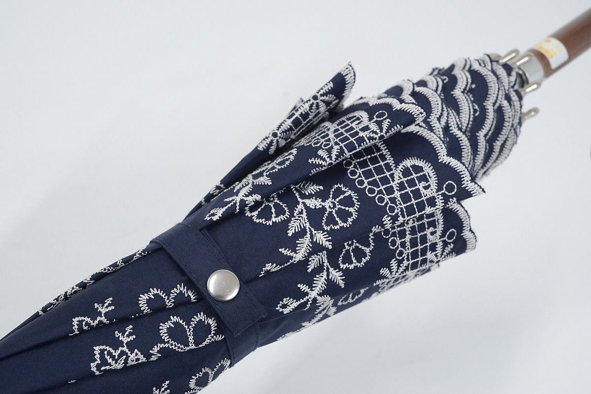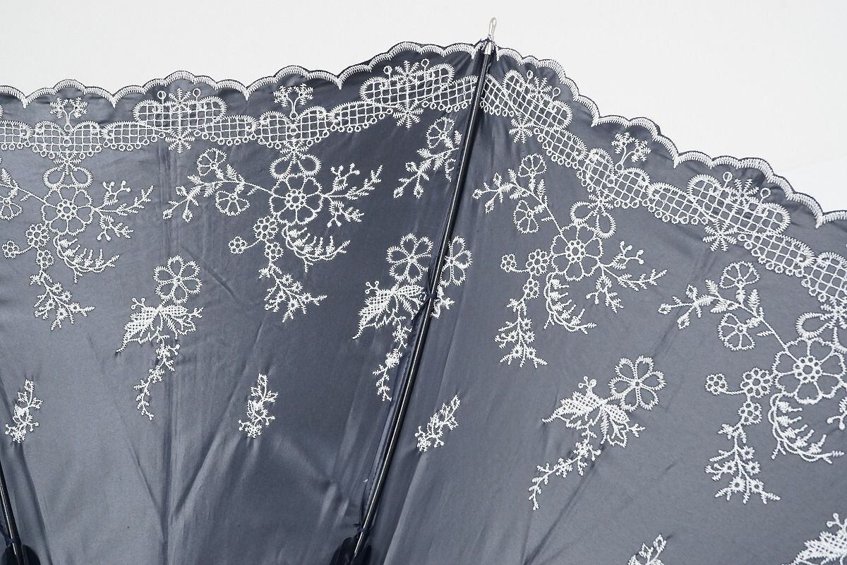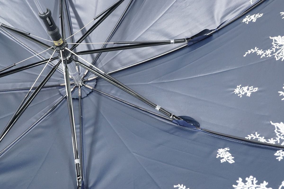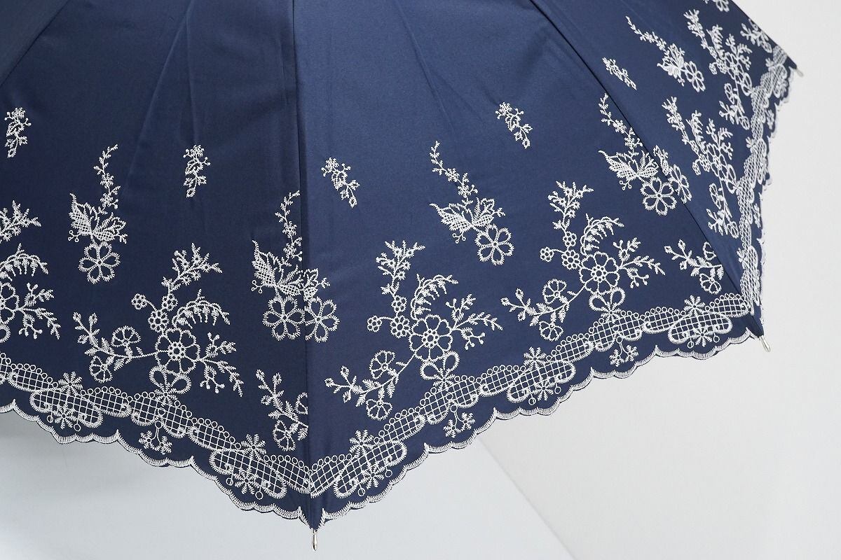 オーロラ 晴雨兼用日傘 USED美品 ネイビー 花刺繍 UV 遮光 ジャンプ式 50cm C A9527