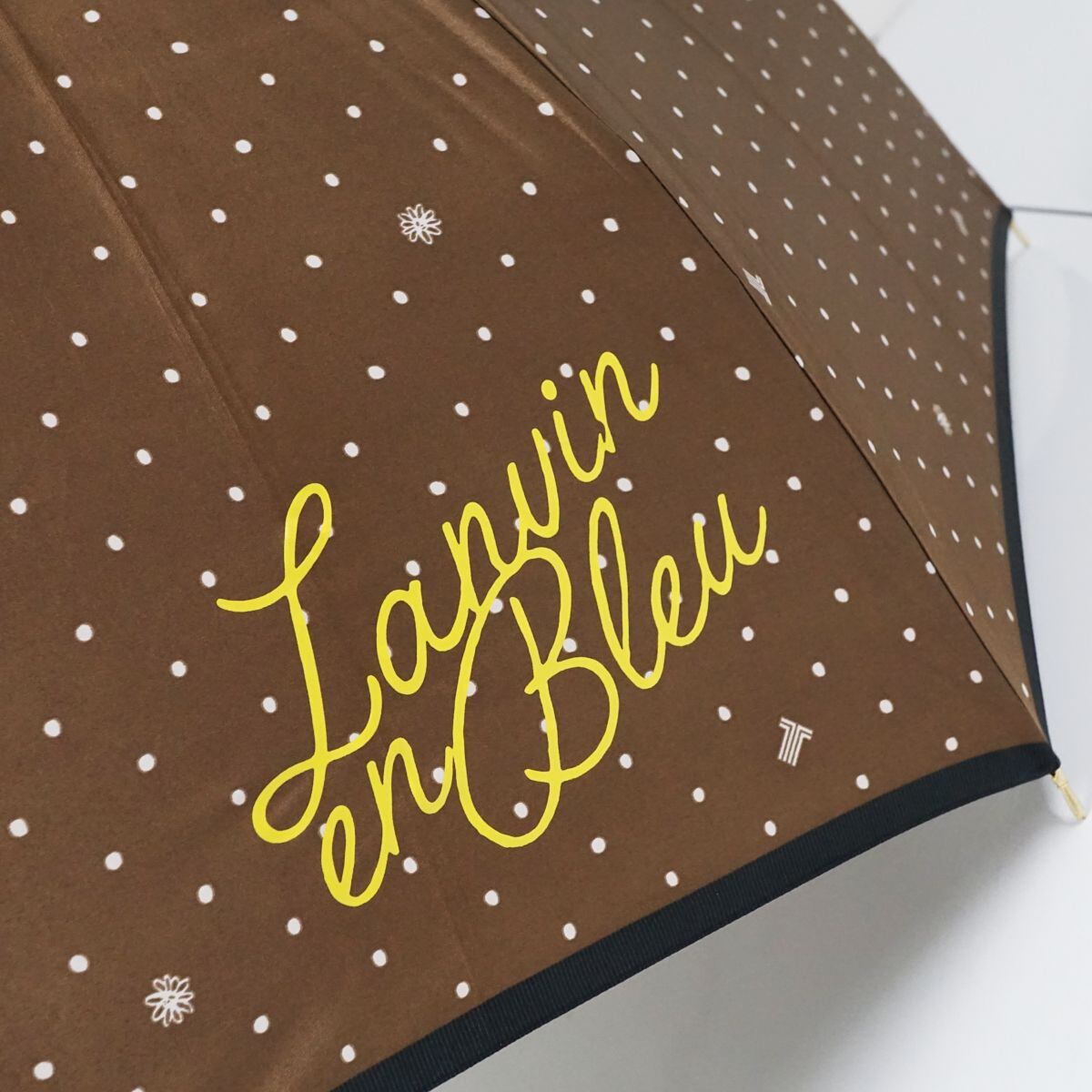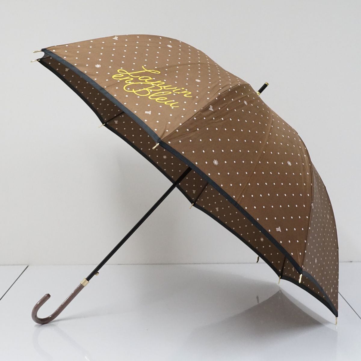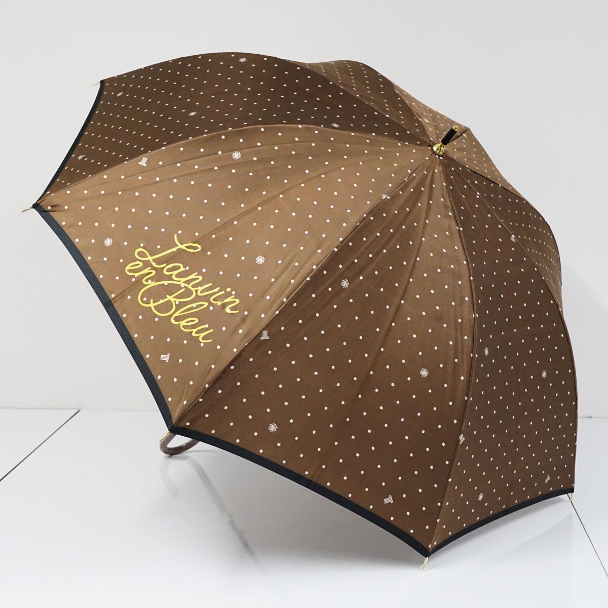 傘 LANVIN en Bleu ランバンオンブルー USED美品 ドット&ロゴ ブラウン 茶 ジャンプ 耐風 60cm KR A9648