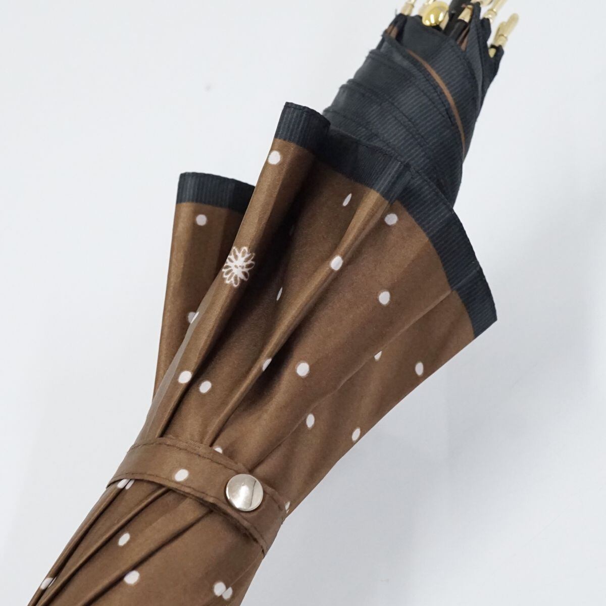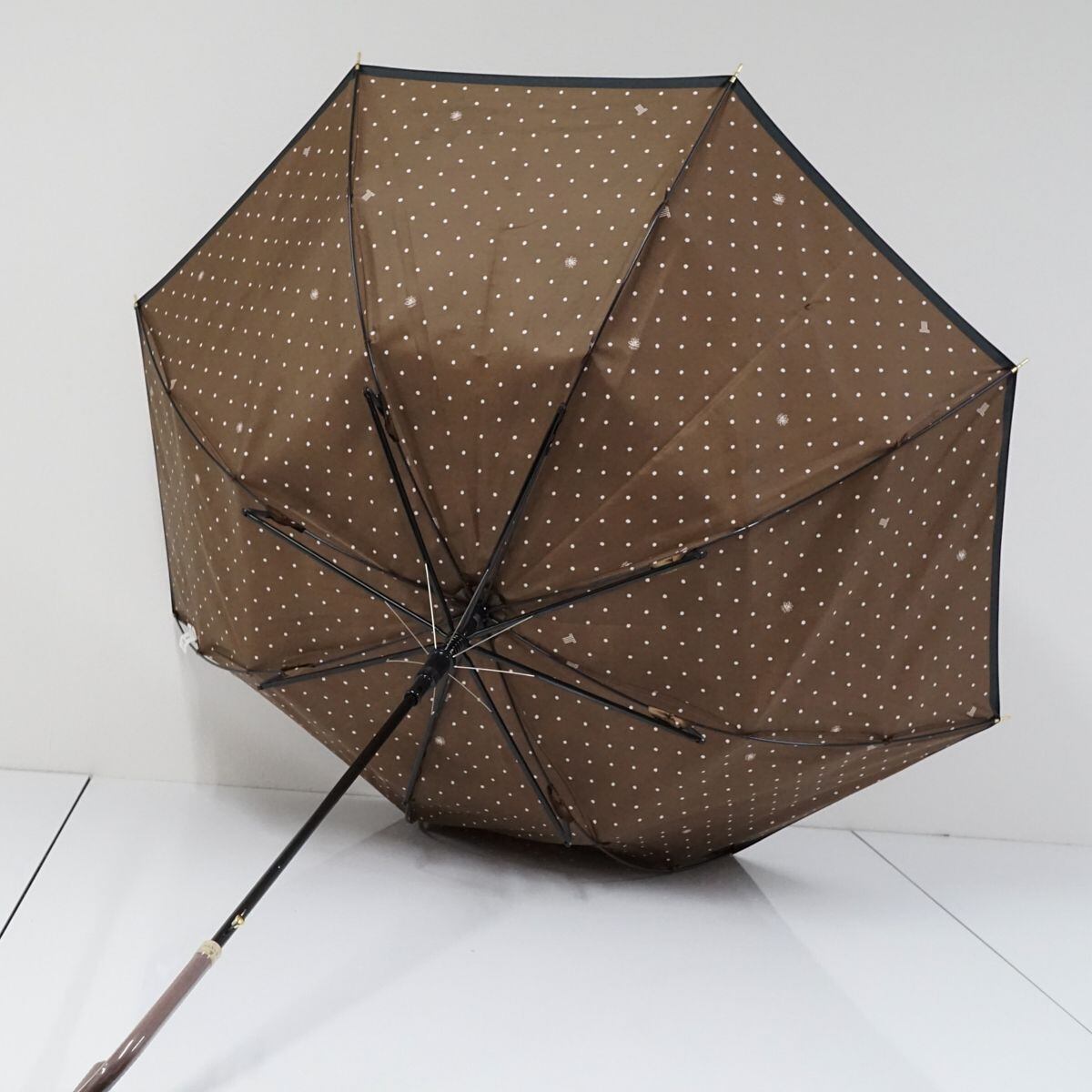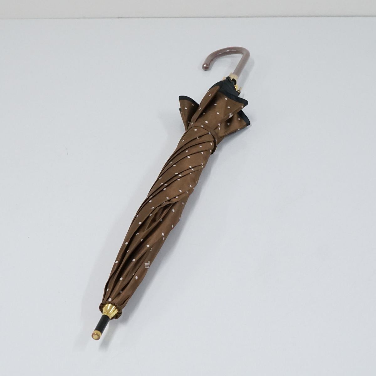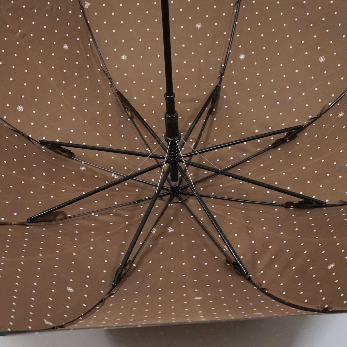 傘 LANVIN en Bleu ランバンオンブルー USED美品 ドット&ロゴ ブラウン 茶 ジャンプ 耐風 60cm KR A9648