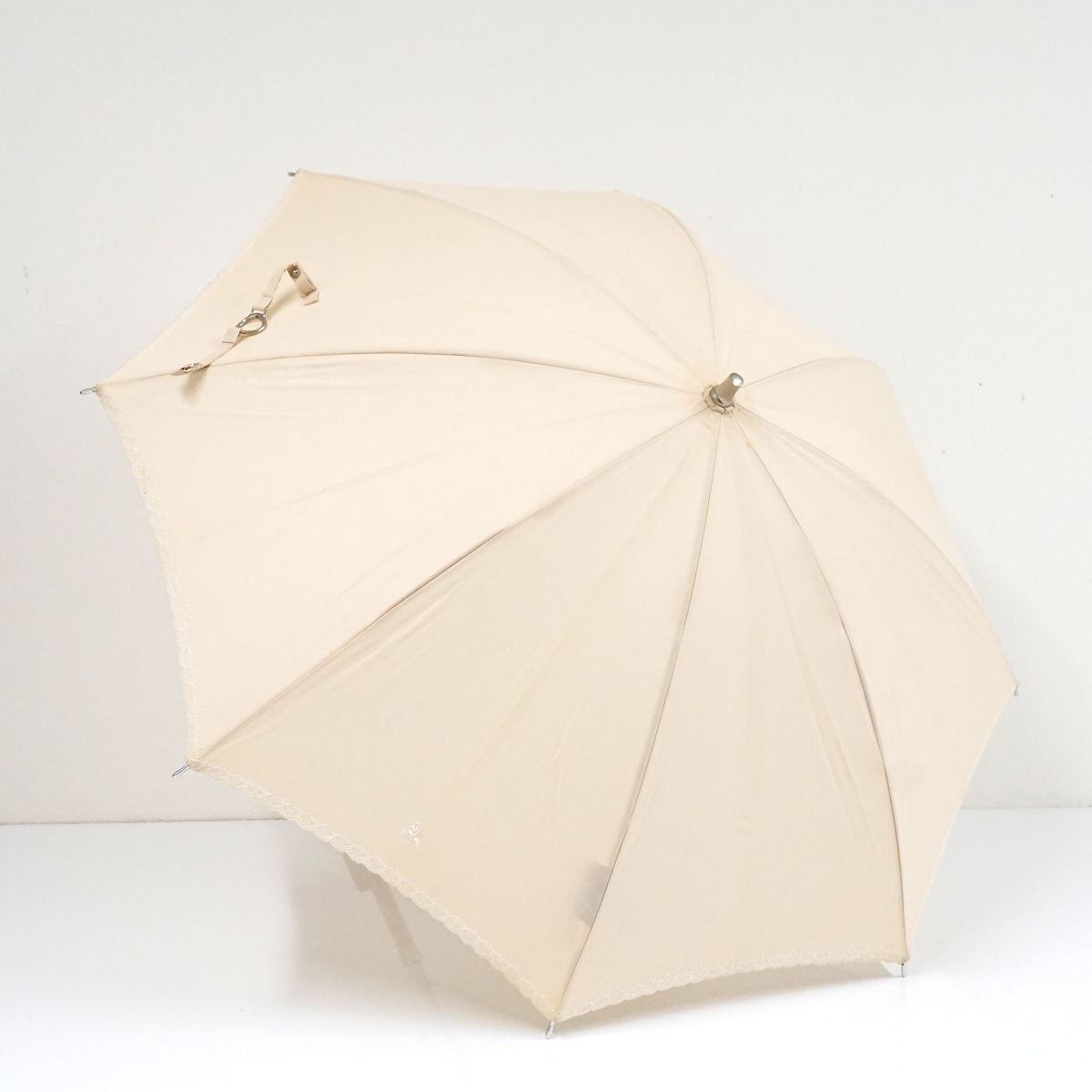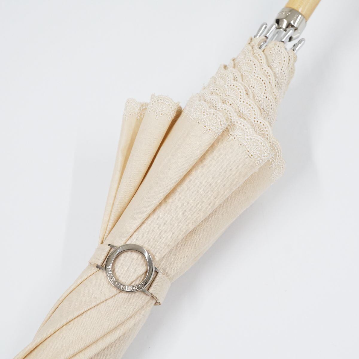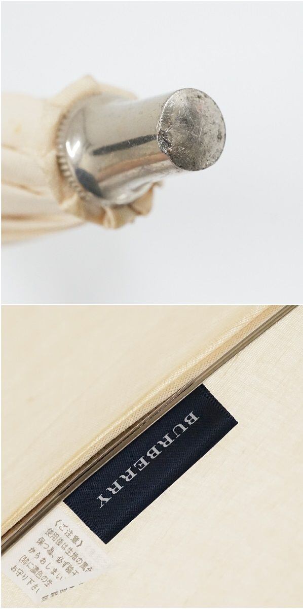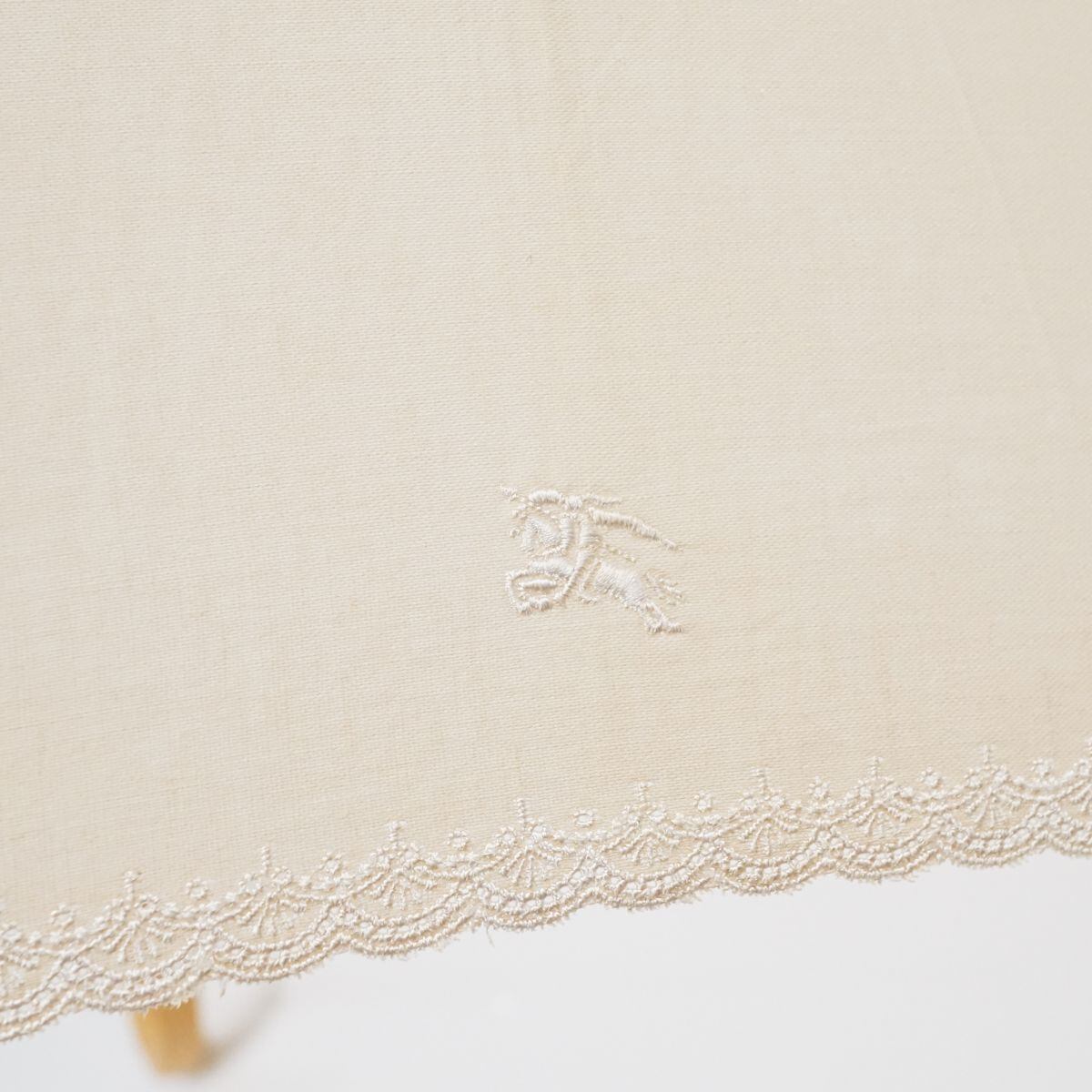 日傘 BURBERRY バーバリー USED品 クリーム色 スカラップ刺繍 ホースマーク ナチュラル UV 希少 47cm S S9843