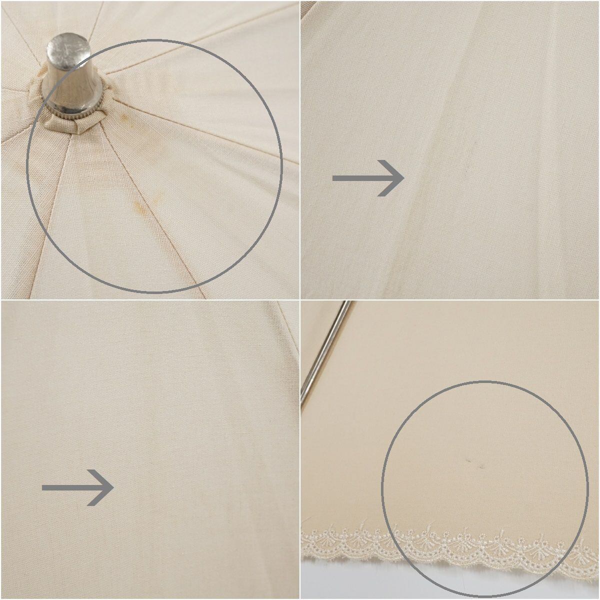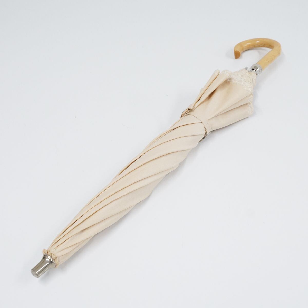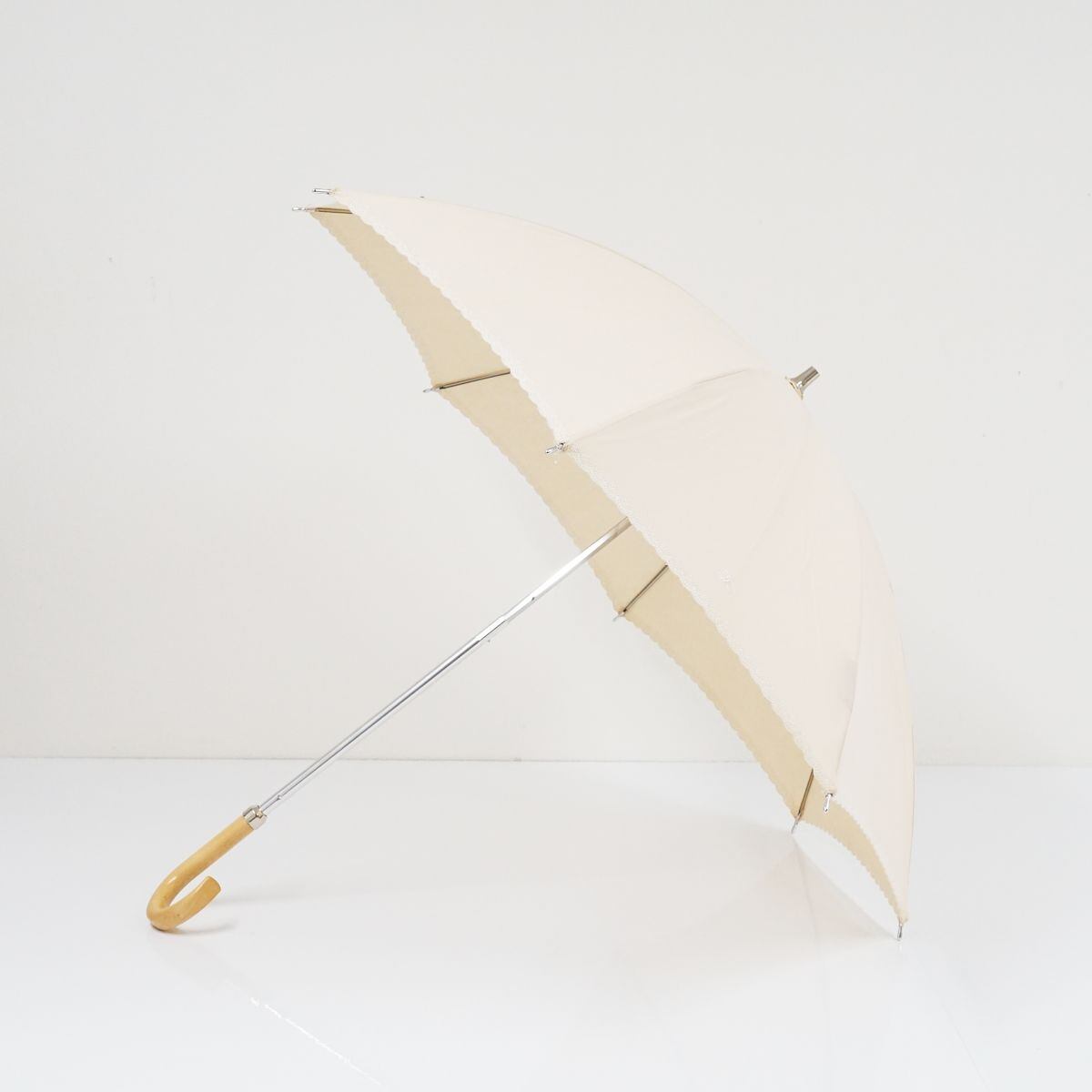 日傘 BURBERRY バーバリー USED品 クリーム色 スカラップ刺繍 ホースマーク ナチュラル UV 希少 47cm S S9843