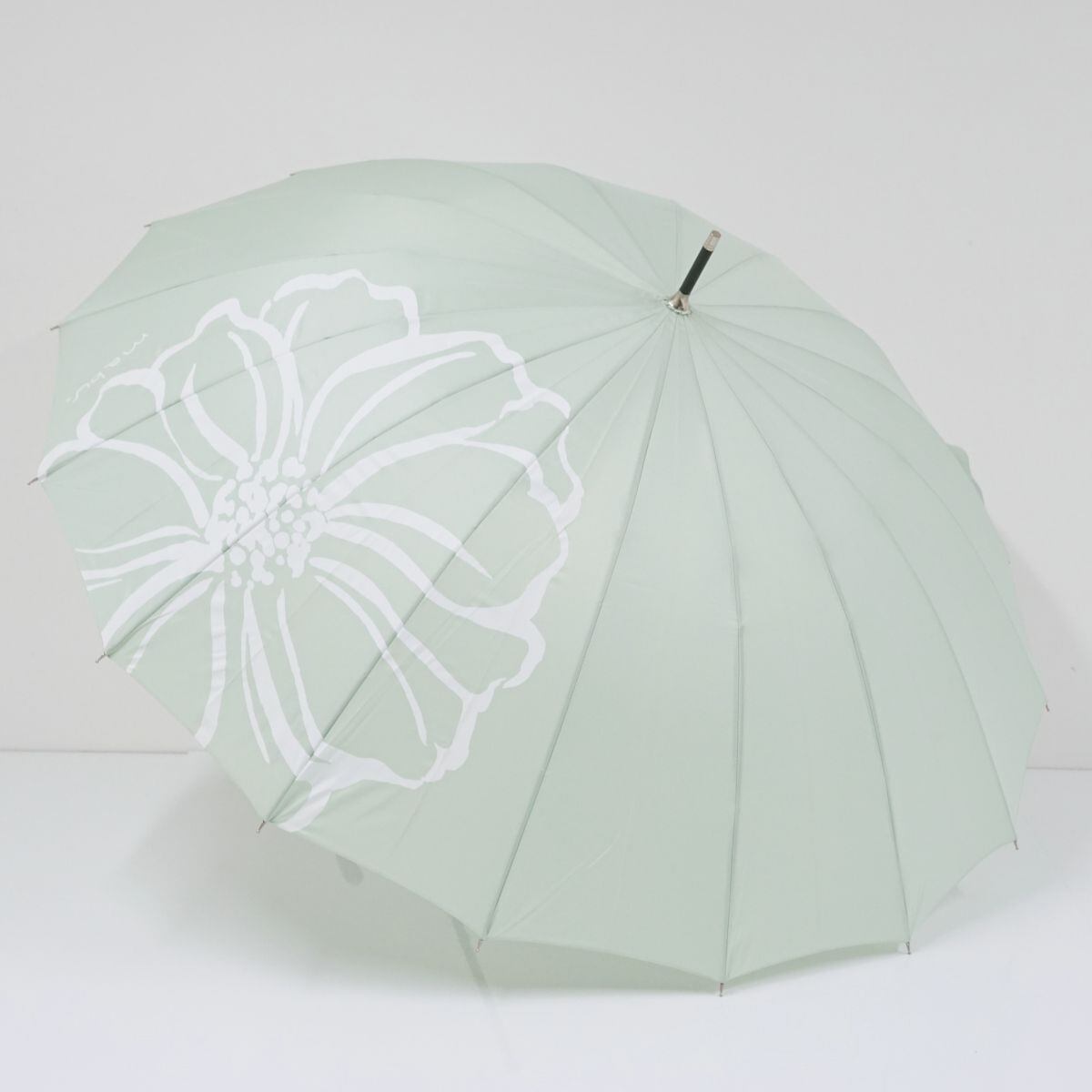 傘 mabu マブ USED美品 ブロッサム 16本骨 J-PET100% リサイクル生地 多間 ジャンプ ライトグリーン 58cm T A9957
