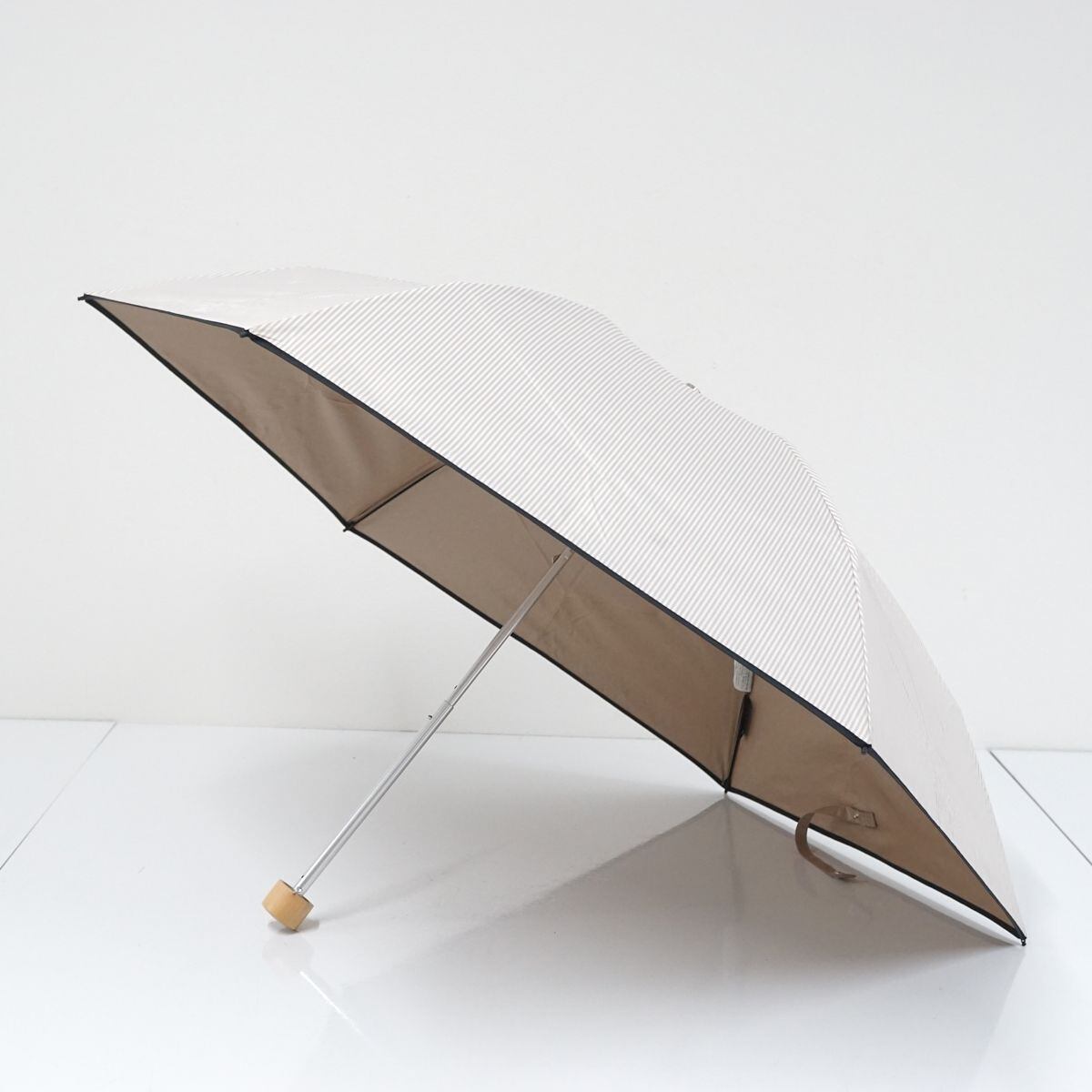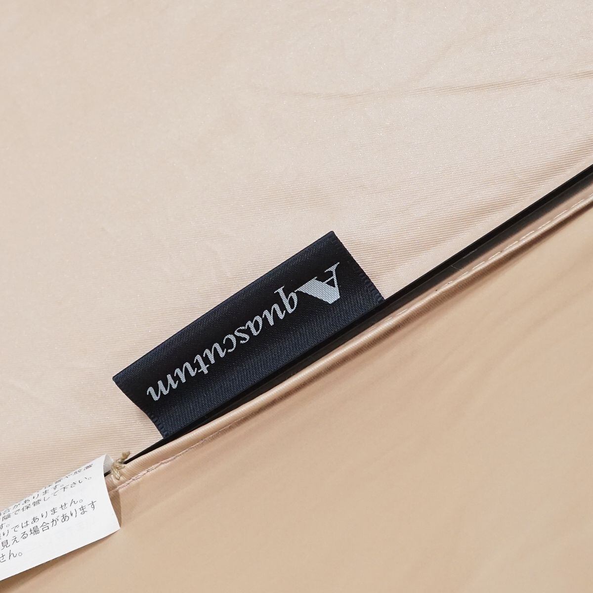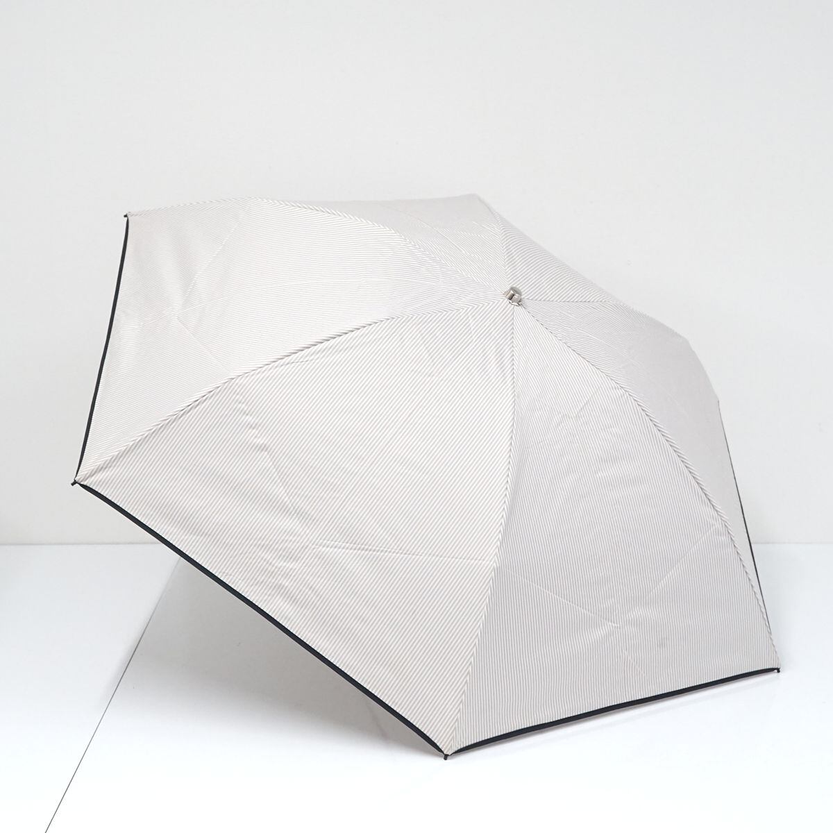 折りたたみ日傘 Aquascutum アクアスキュータム USED美品 晴雨兼用 ライトベージュ ストライプ パイピング シンプル 軽量 UV 50cm S FA8258