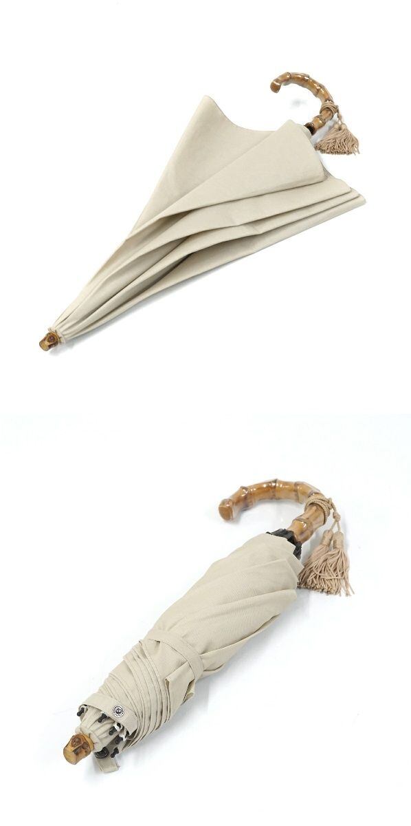 高級折りたたみ日傘 WAKAO ワカオ USED美品 晴雨兼用 コットンピッケ バンブーハンドル タッセル付 ベージュ 日本製 47cm FS8270