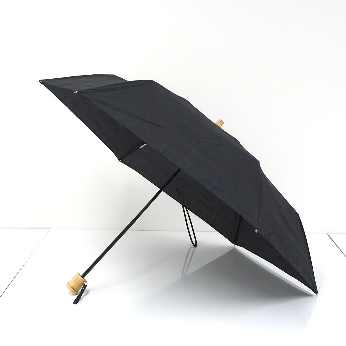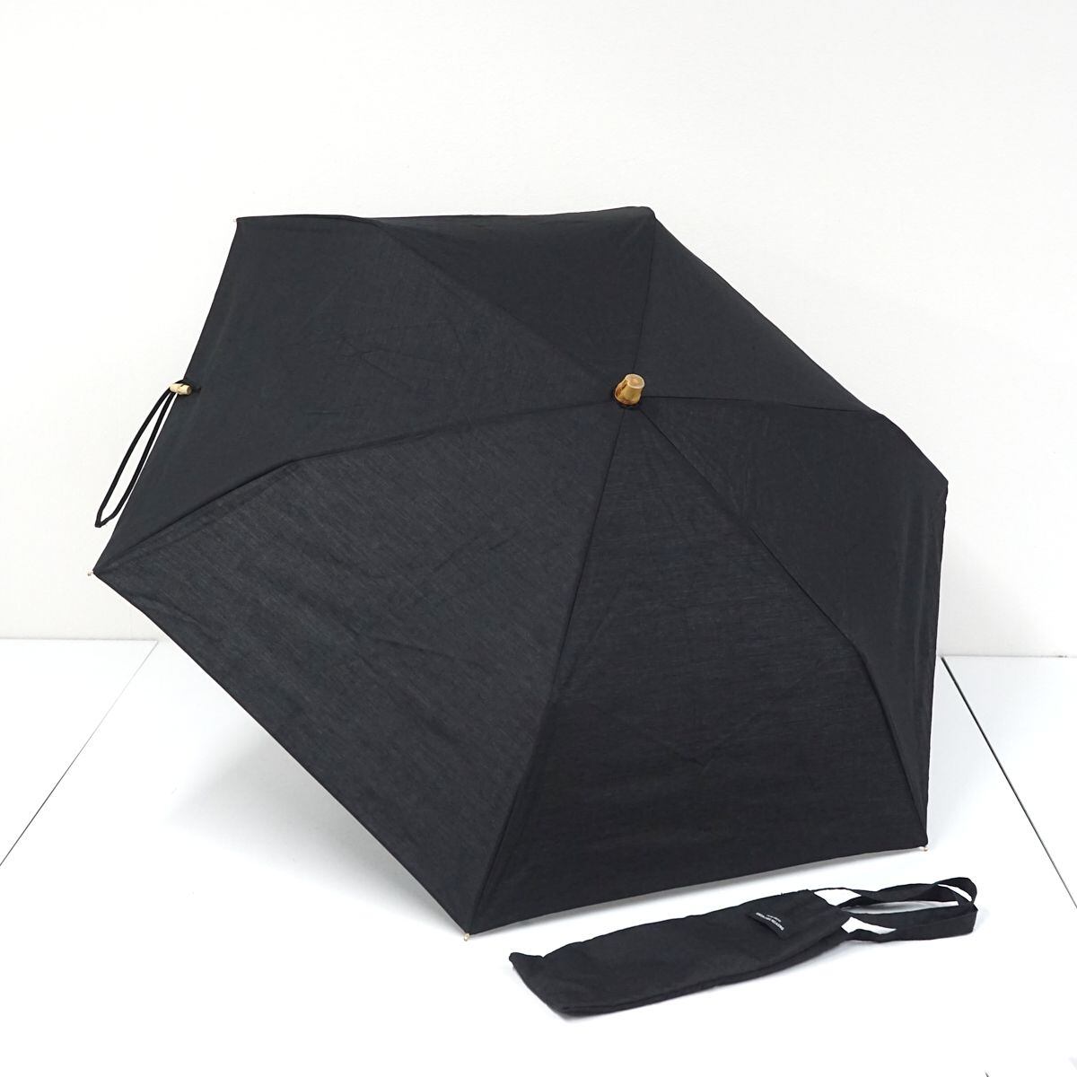 折りたたみ日傘 UNITED ARROWS green label relaxing ユナイテッドアローズ USED美品 ブラック 無地 バンブー手元 収納袋付 50cm FA8271