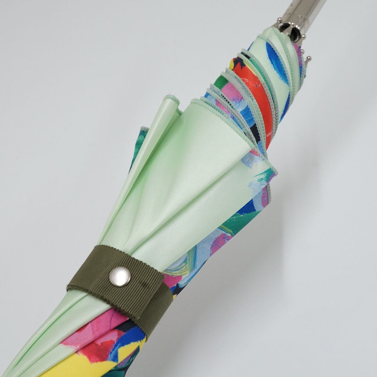 「ワンクロースシームレス」と呼ばれる、縫い目を外周のみにした一枚生地で作られたアート傘です。