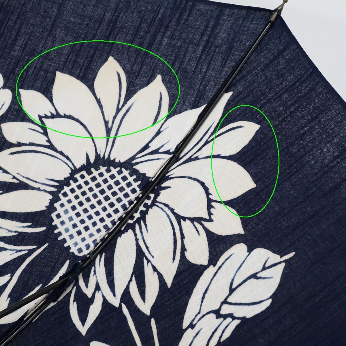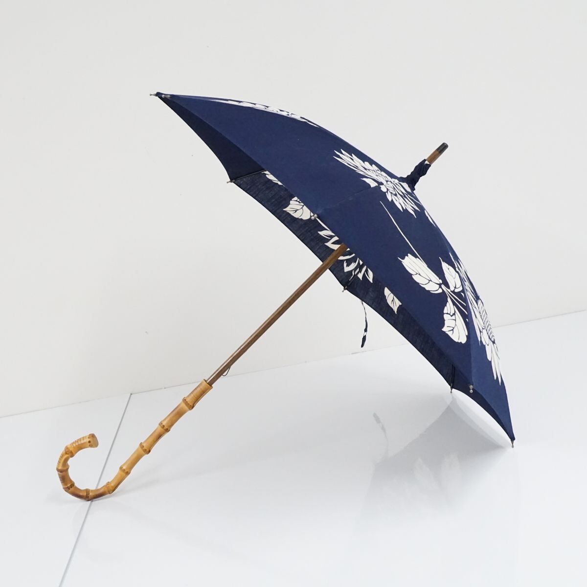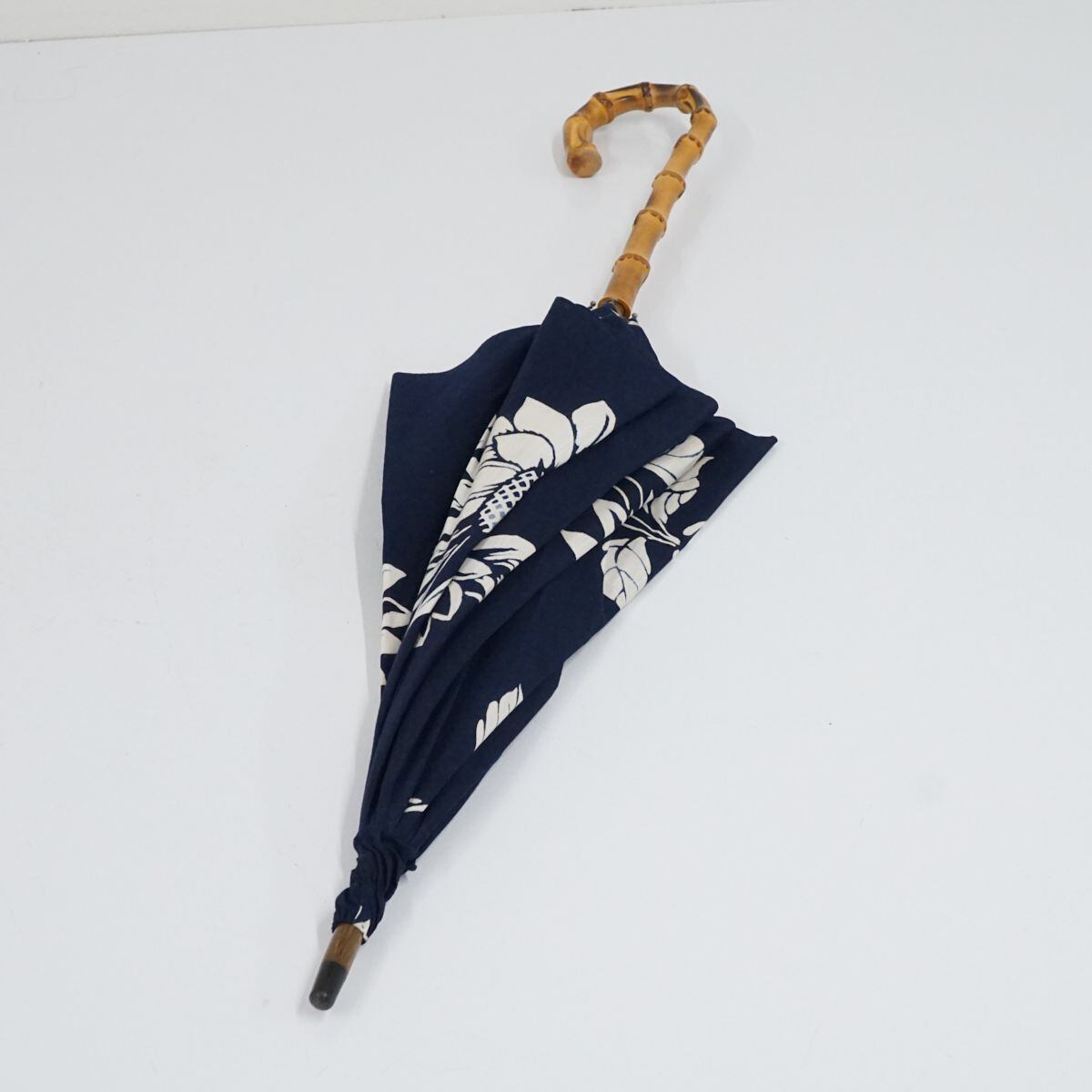 日傘 WAKAO ワカオ USED品 ネイビー ひまわり 花 ブルー バンブー 40cm KR S9729