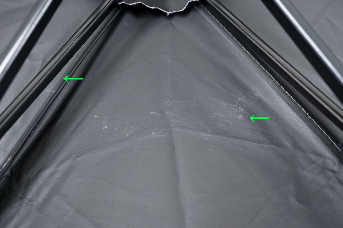 ※生地内外に薄汚れ、タタミシワ、白汚れがややあります。(ヒドイモノではございませんが、一部画像にてご確認下さい。)
