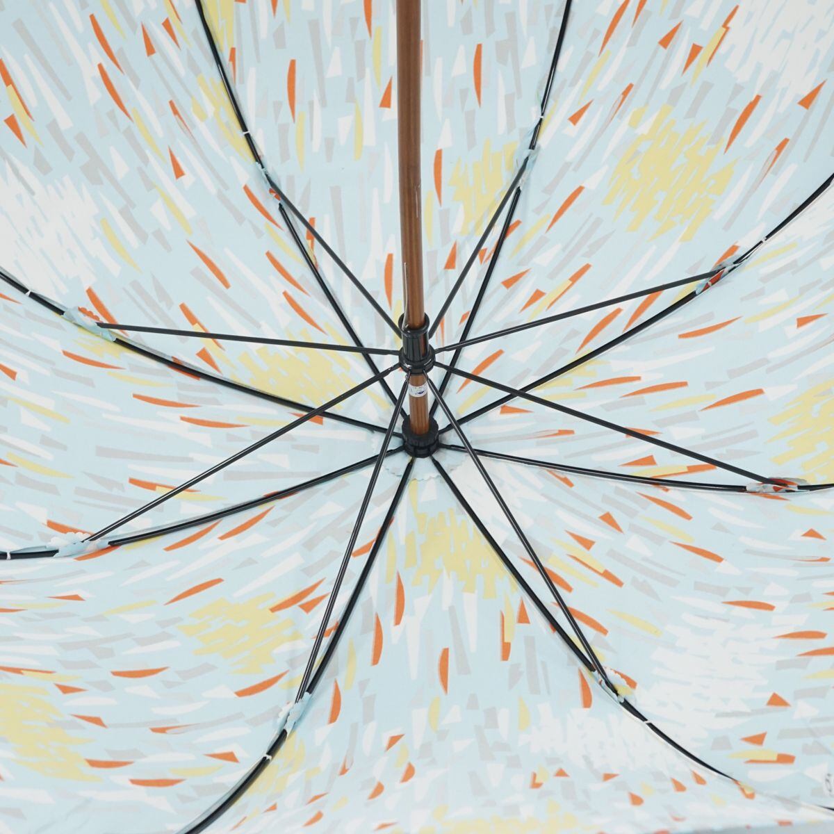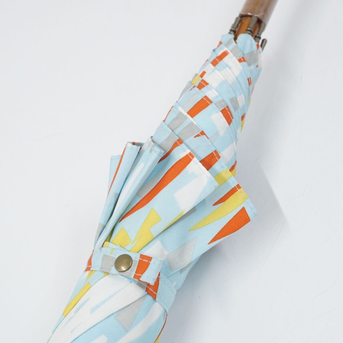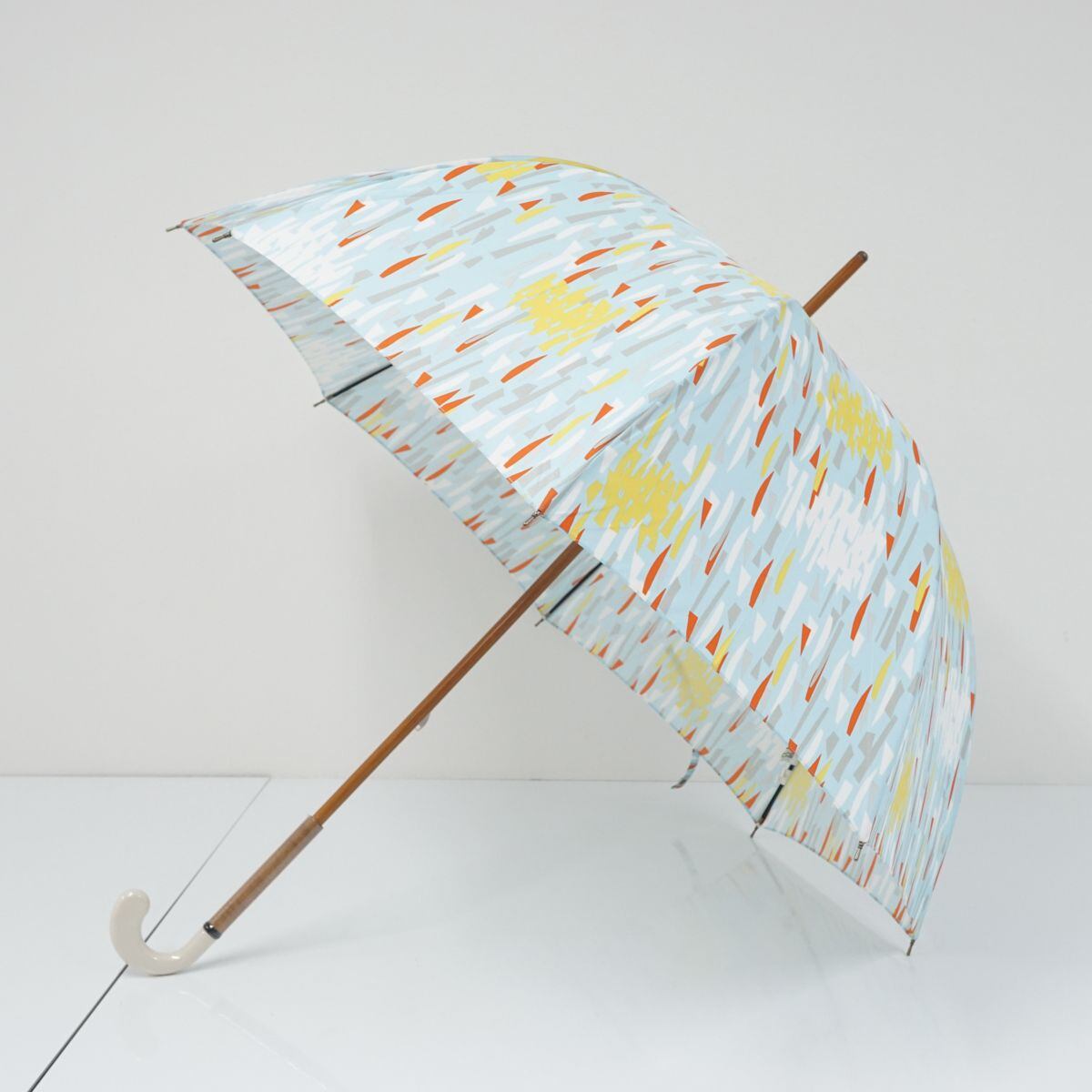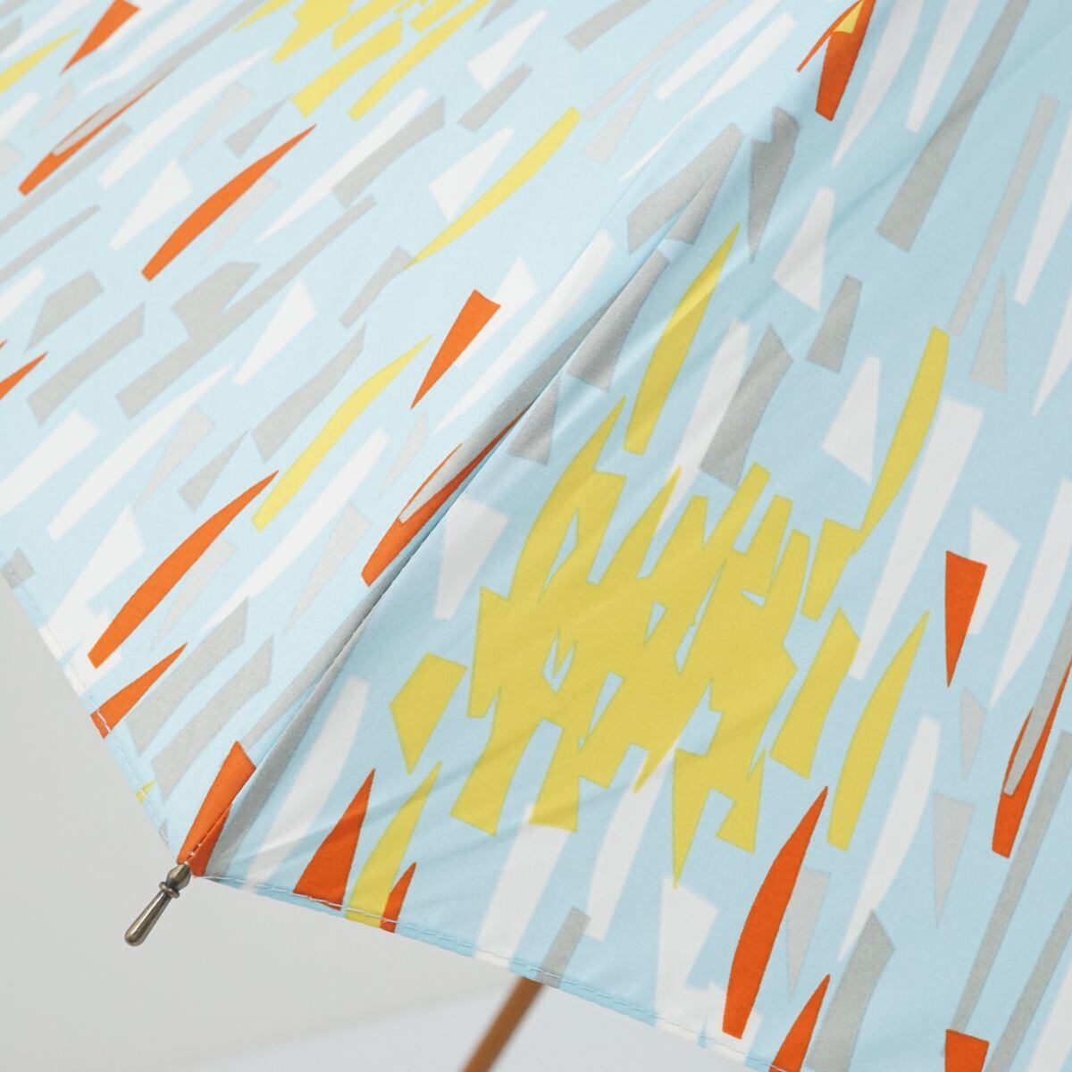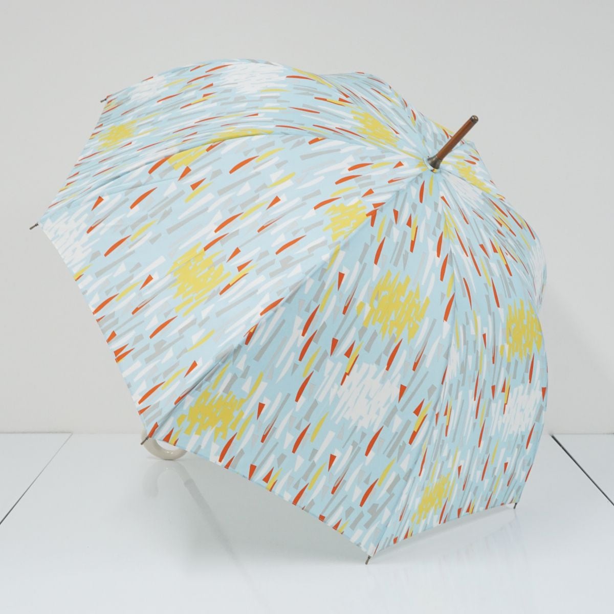 ライトブルーをベースにしたテキスタイルデザインが素敵なアンブレラです。