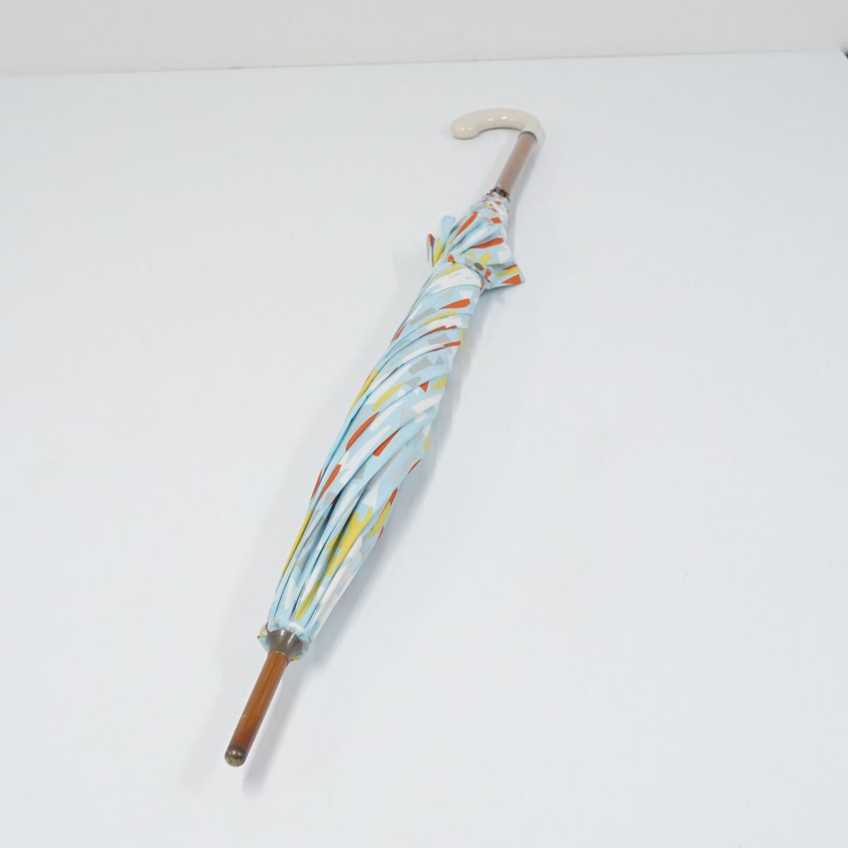 傘 cocca コッカ USED美品 テキスタイル ブルー バードケージ 深張り 58cm KR S9737